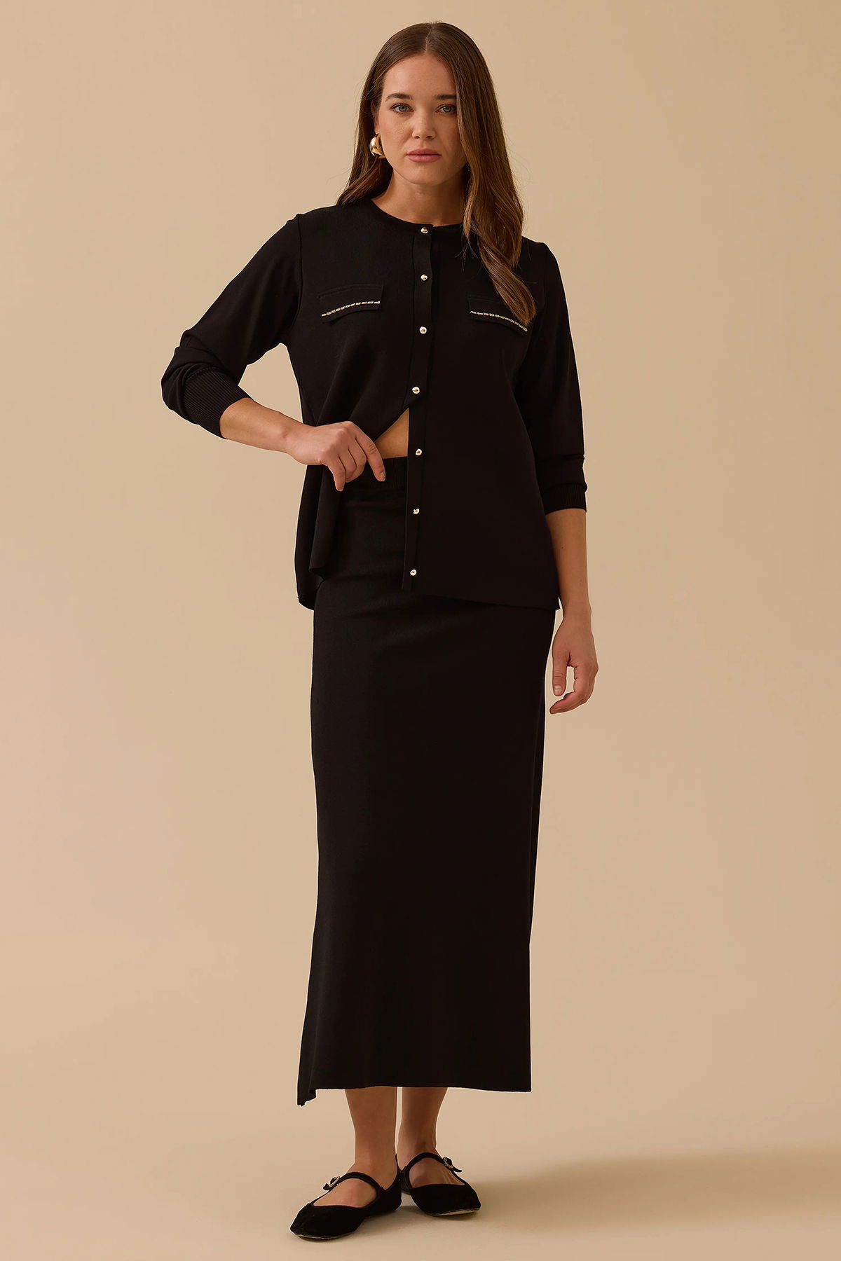 Seçil Kadın Düz Kesim Triko Etek 1013 Siyah