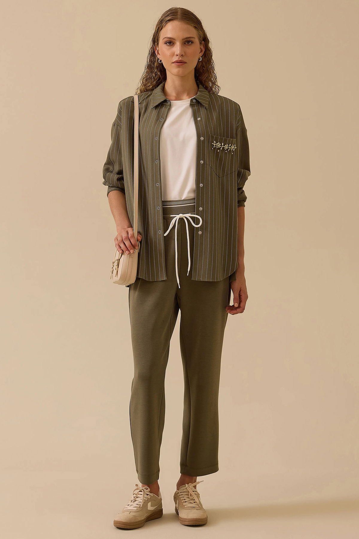 Detay: Düz örme kumaşıyla sade ve modern bir görünüm sunan bu straight kesim pantolon, tam boy tasarımıyla klasik şıklığı yansıtır. Lastikli beli ve bağlamalı kapama detayı sayesinde konforlu ve ayarlanabilir bir kullanım sağlar. Cepli yapısıyla günlük pratikliği artıran model, hem evde hem dışarıda rahatlıkla tercih edilebilecek fonksiyonel bir parçadır. Rahatlığı ve sadeliği bir arada sunan bu pantolon, günlük stilinize uyum sağlar;