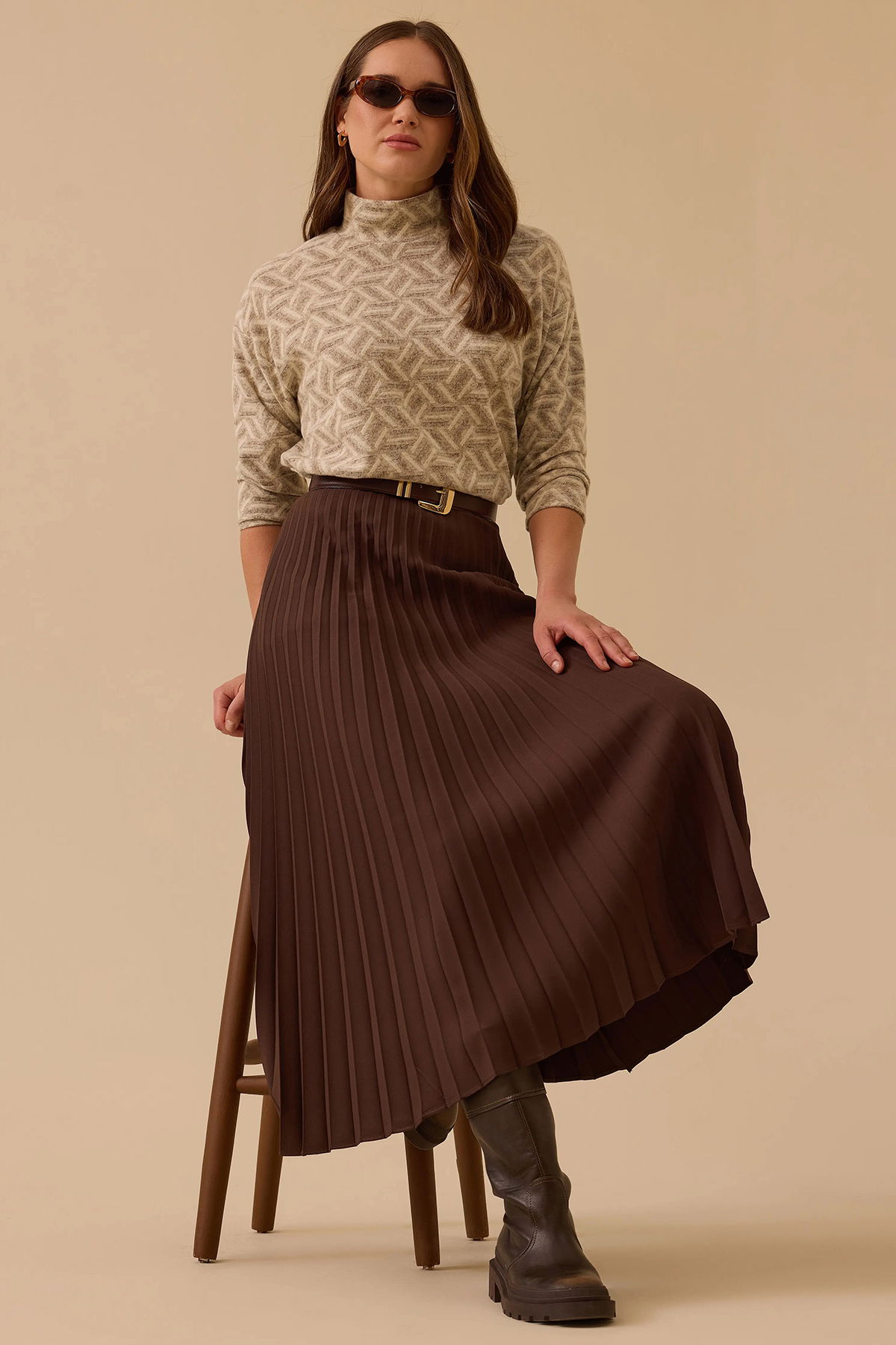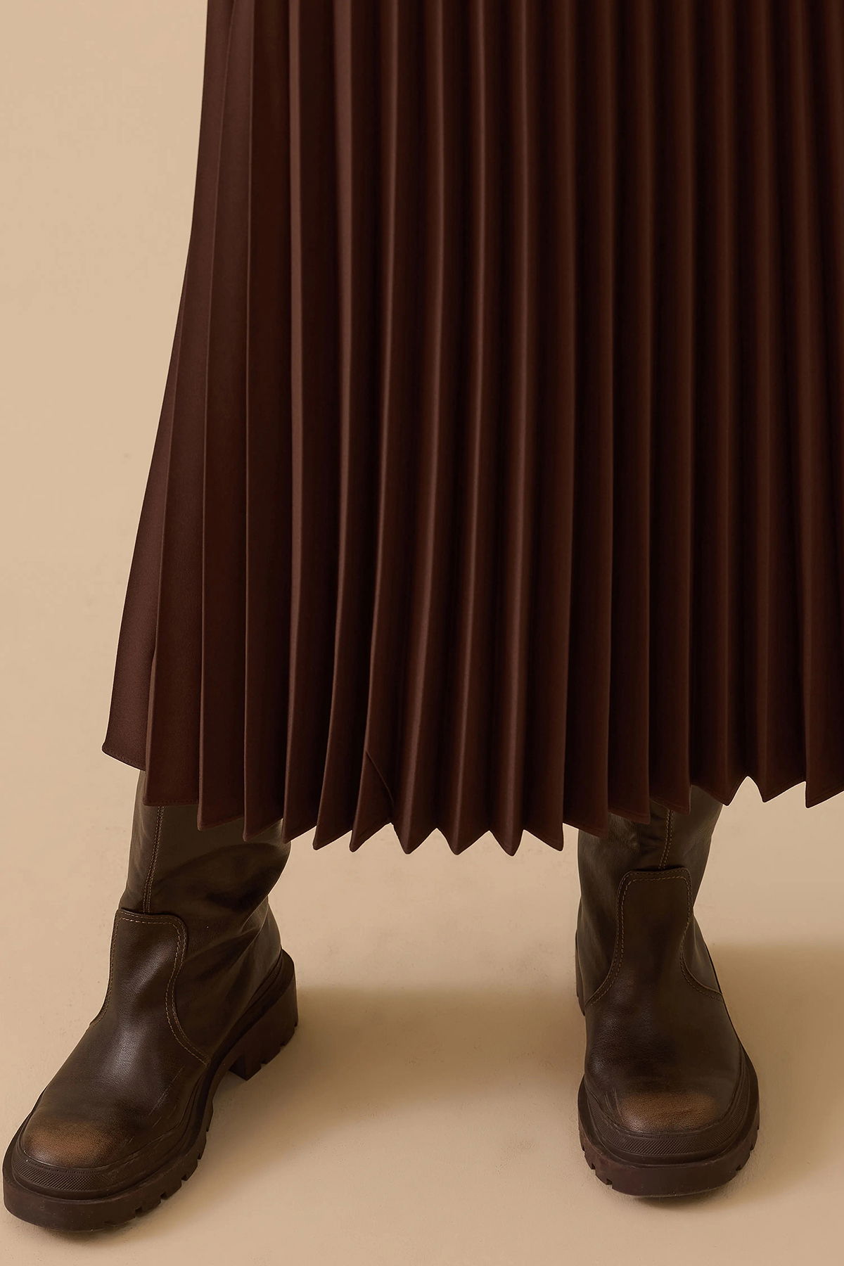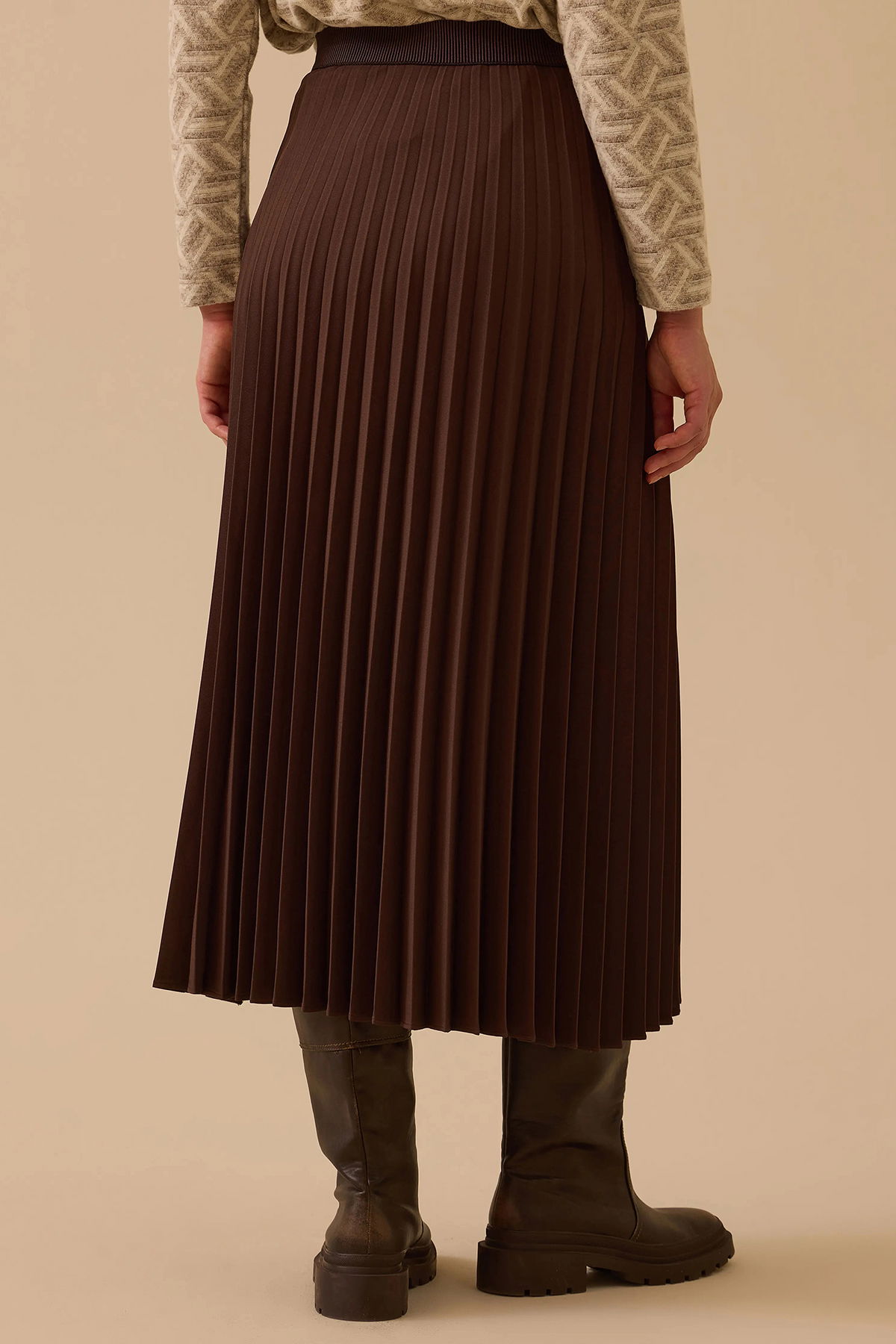 Seçil Kadın Esnek Bel Pliseli Basic Etek 1019 Kahverengi