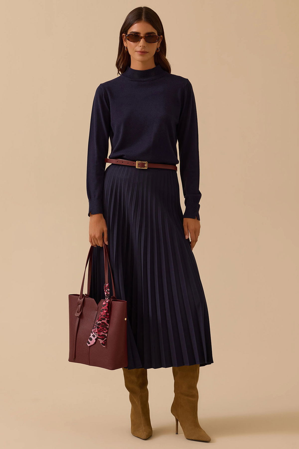 Seçil Kadın Esnek Bel Pliseli Basic Etek 1019 Lacivert