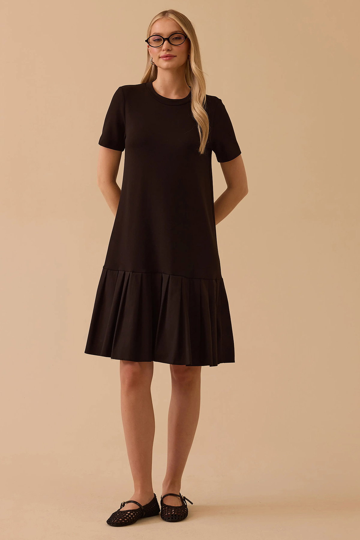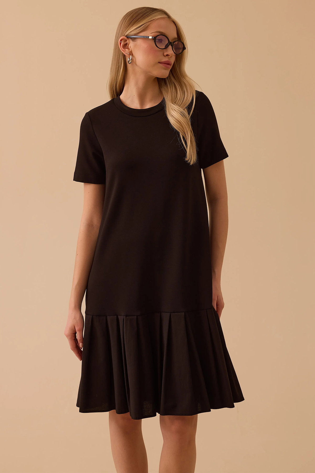 Detay: Düşük kollu, yuvarlak yakalı, normal bel formunda, penye kumaştan, iki kumaşlı özelliğe sahip, dokuma yapıda ve kısa kollu bu elbise modern bir tasarıma sahiptir. Normal bel formu rahat bir kullanım sağlarken yuvarlak yaka detayı sade bir şıklık kazandırır. Kısa düşük kollar ise günlük kombinlerde hafif ve konforlu bir görünüm sunar;