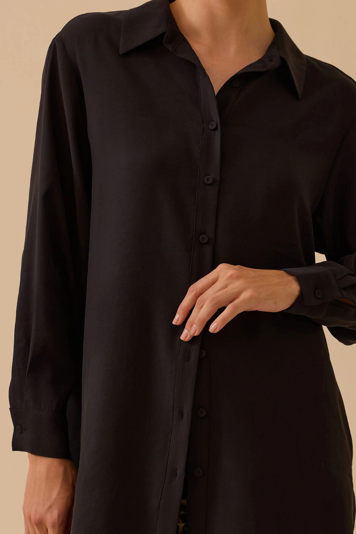 Detay: Bu tunik modeli, regular kesimi ve normal bel yapısıyla günlük kullanımda rahatlık sunarken, gömlek yaka ve uzun takma kol detaylarıyla klasik bir şıklık kazandırır. Düz dokuma polyester kumaşı sayesinde hafif ve kolay ütülenebilir bir yapıdadır, basen altı boyu ile modern bir siluet oluşturur. Düğmeli kapama şekli ve aksesuar olarak kullanılan düğmeler, bu tunik modelini hem pratik hem de zarif bir seçenek haline getirir;