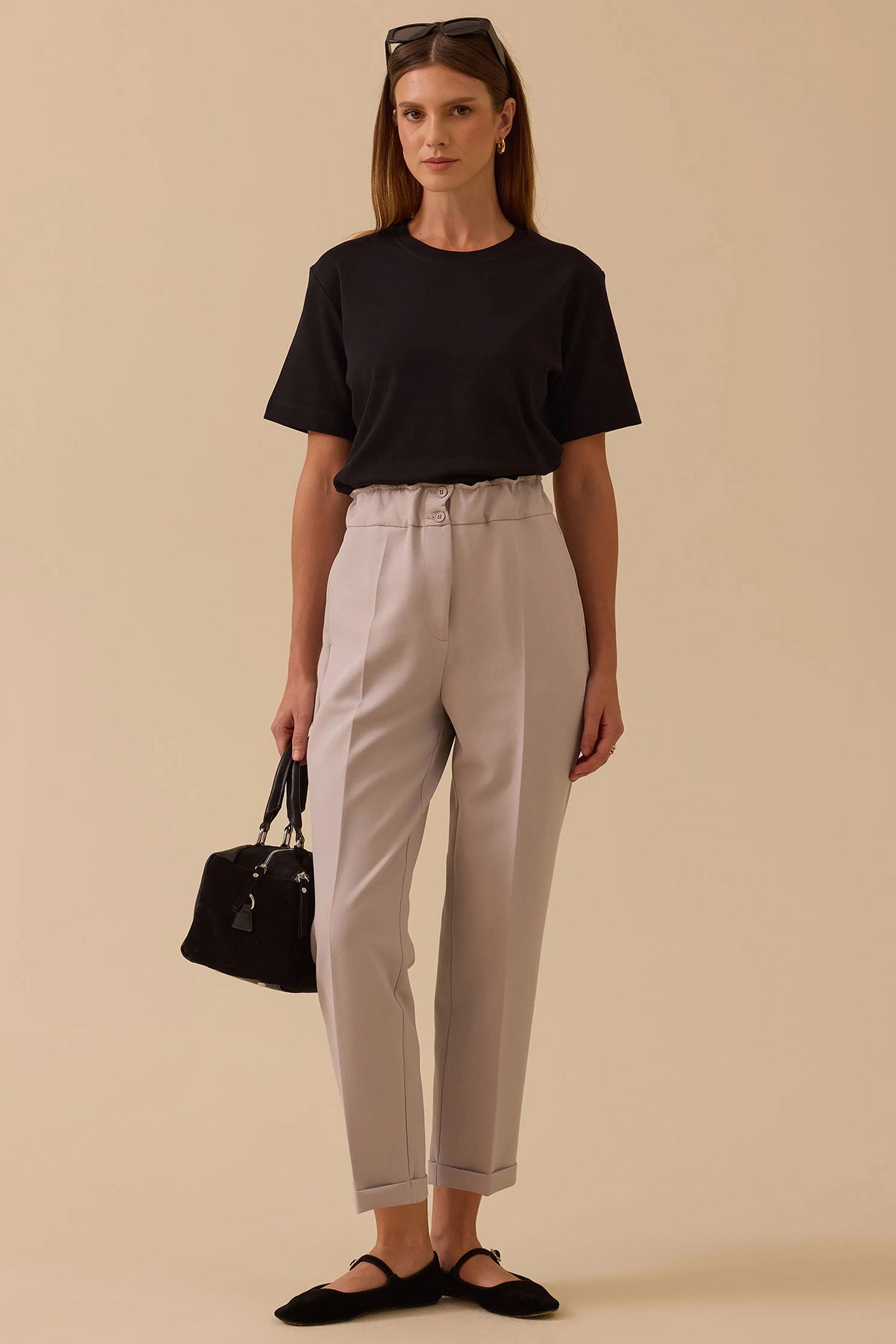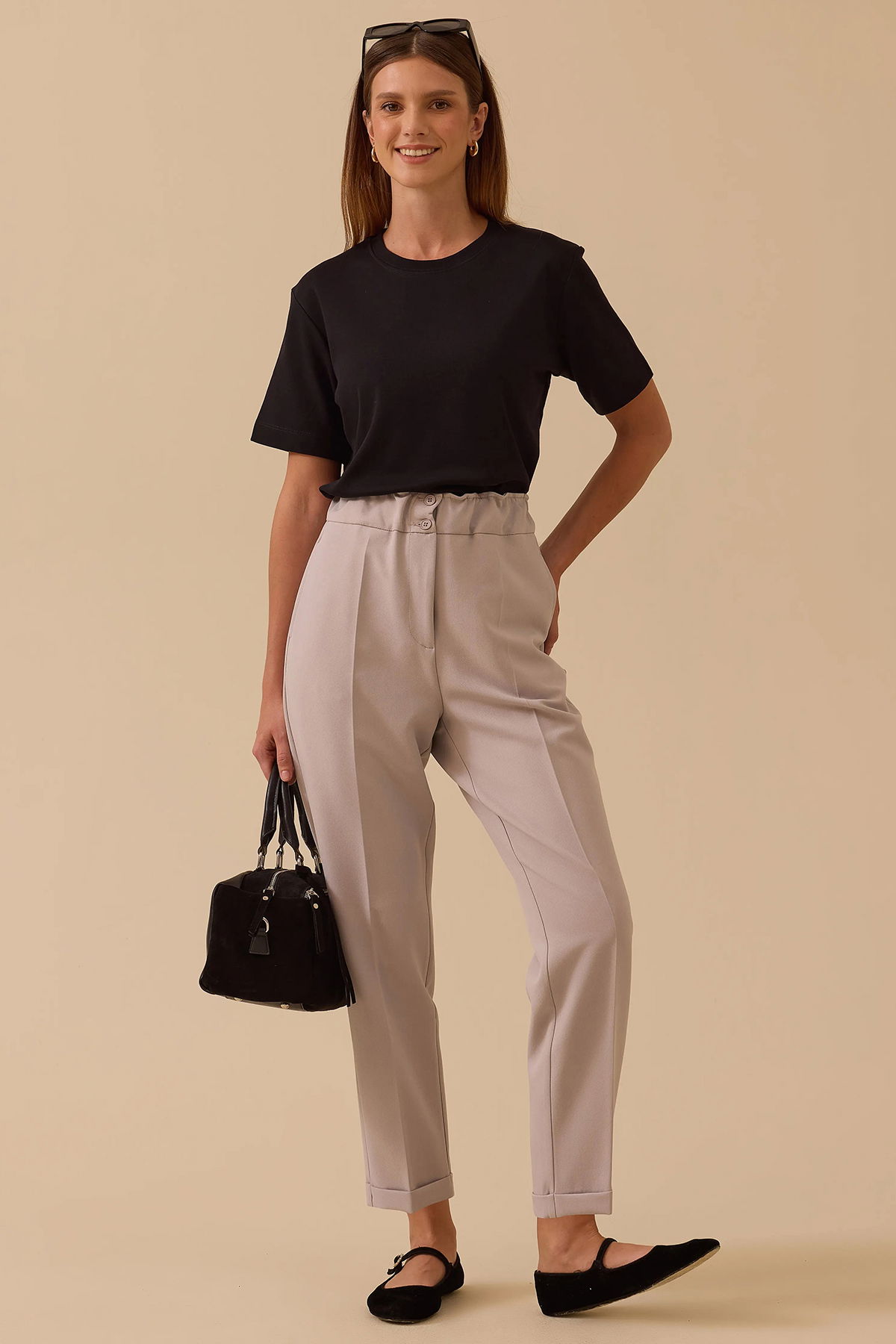 Detay: Yüksek bel ve havuç kesimiyle klasik tarzı modern bir çizgide sunan Lena kalıp pantolon, bilek boyuyla zarif bir görünüm sağlar. Düz dokuma manşet kumaşı ve fermuarlı kapama detayıyla hem şık hem de konforlu bir kullanım sunar. Düğme aksesuarlarıyla tamamlanan tasarımı, günlük ve ofis stiline uyumlu bir alternatif oluşturur;