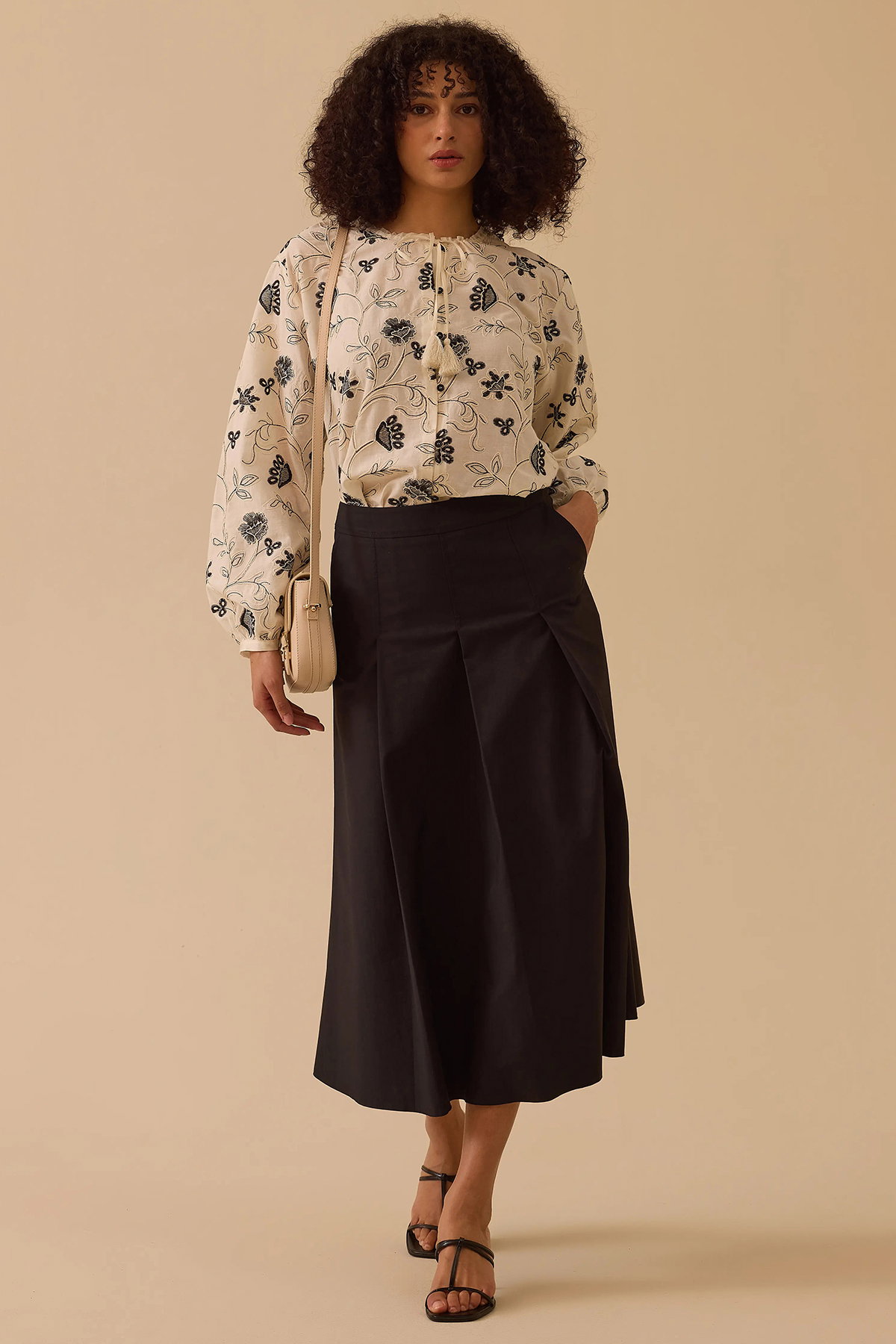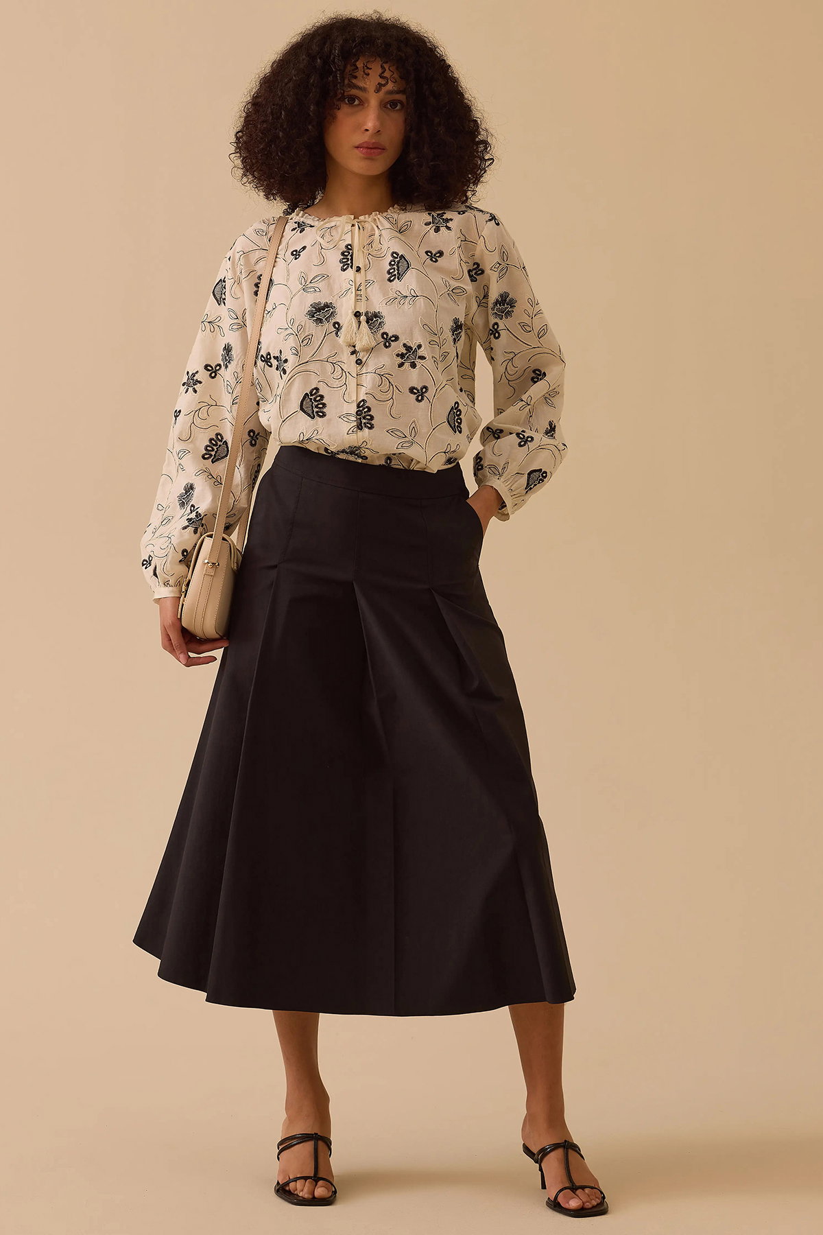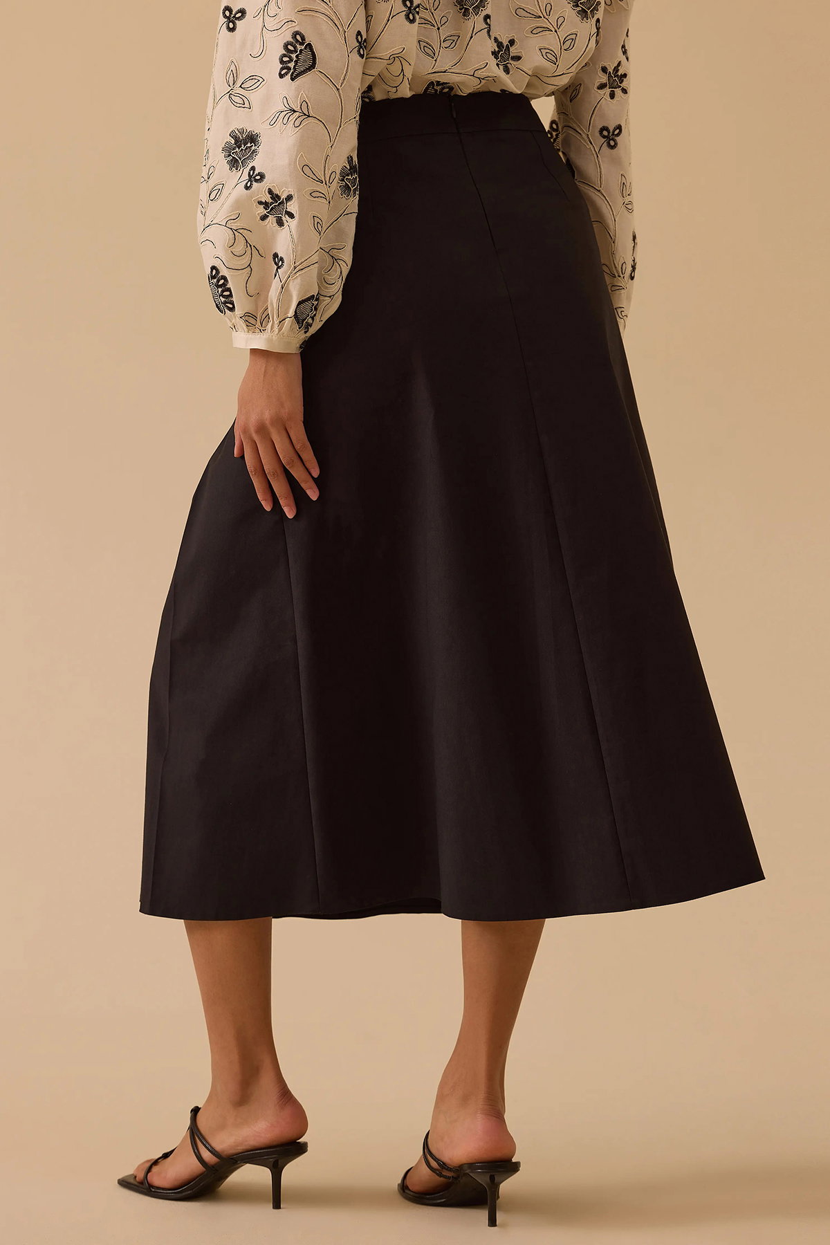 Detay: A kesim, midi boy, düz pamuklu kumaştan, bele oturan formda ve dokuma yapıya sahip bu etek zarif bir tasarıma sahiptir. Bele oturan yapısı feminen bir duruş kazandırırken A kesim formu hareket özgürlüğü sağlar. Midi boy uzunluğu ise günlük kombinlerde şık ve dengeli bir görünüm sunar;