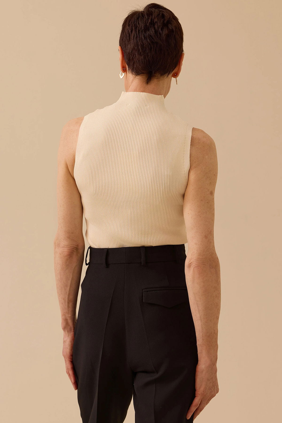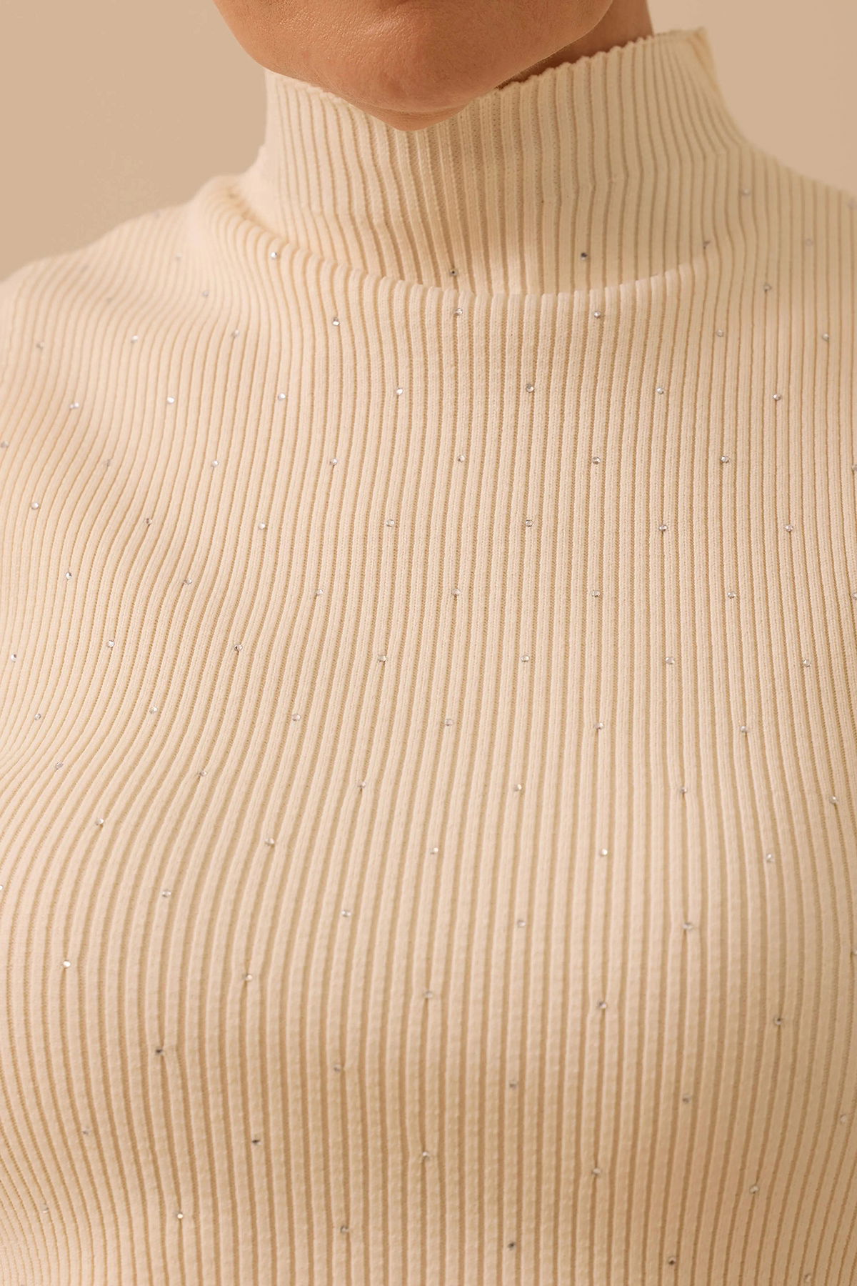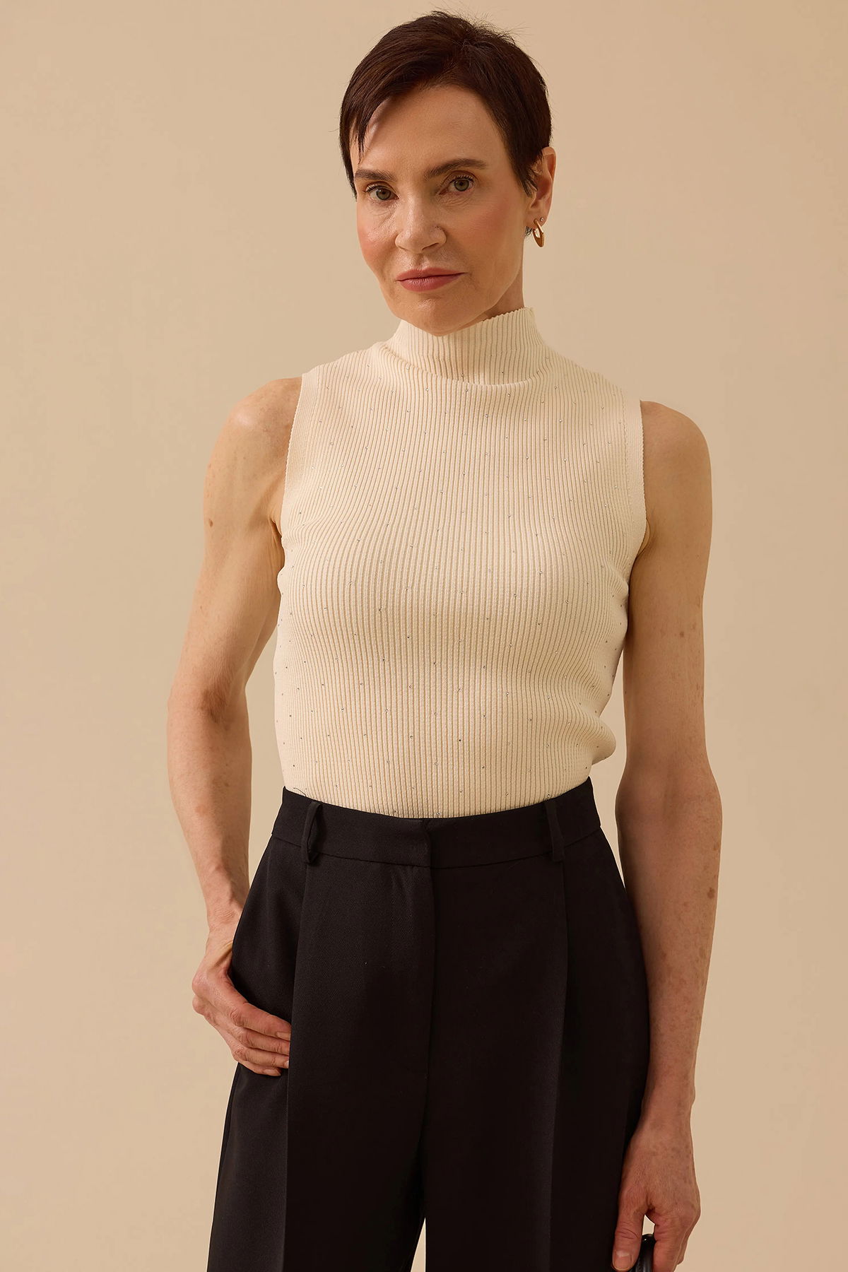Detay: Düz örme kumaştan üretilmiş, dar form kesime sahip bu kolsuz bluz, sade ve modern bir görünüm sunar. Bel hizasında biten tasarımı ve dik yaka detayıyla şıklığı ön plana çıkarırken, normal bel yapısı sayesinde rahat bir kullanım sağlar. Günlük kombinlerden ofis stiline kadar zarif bir tamamlayıcı olarak öne çıkar;