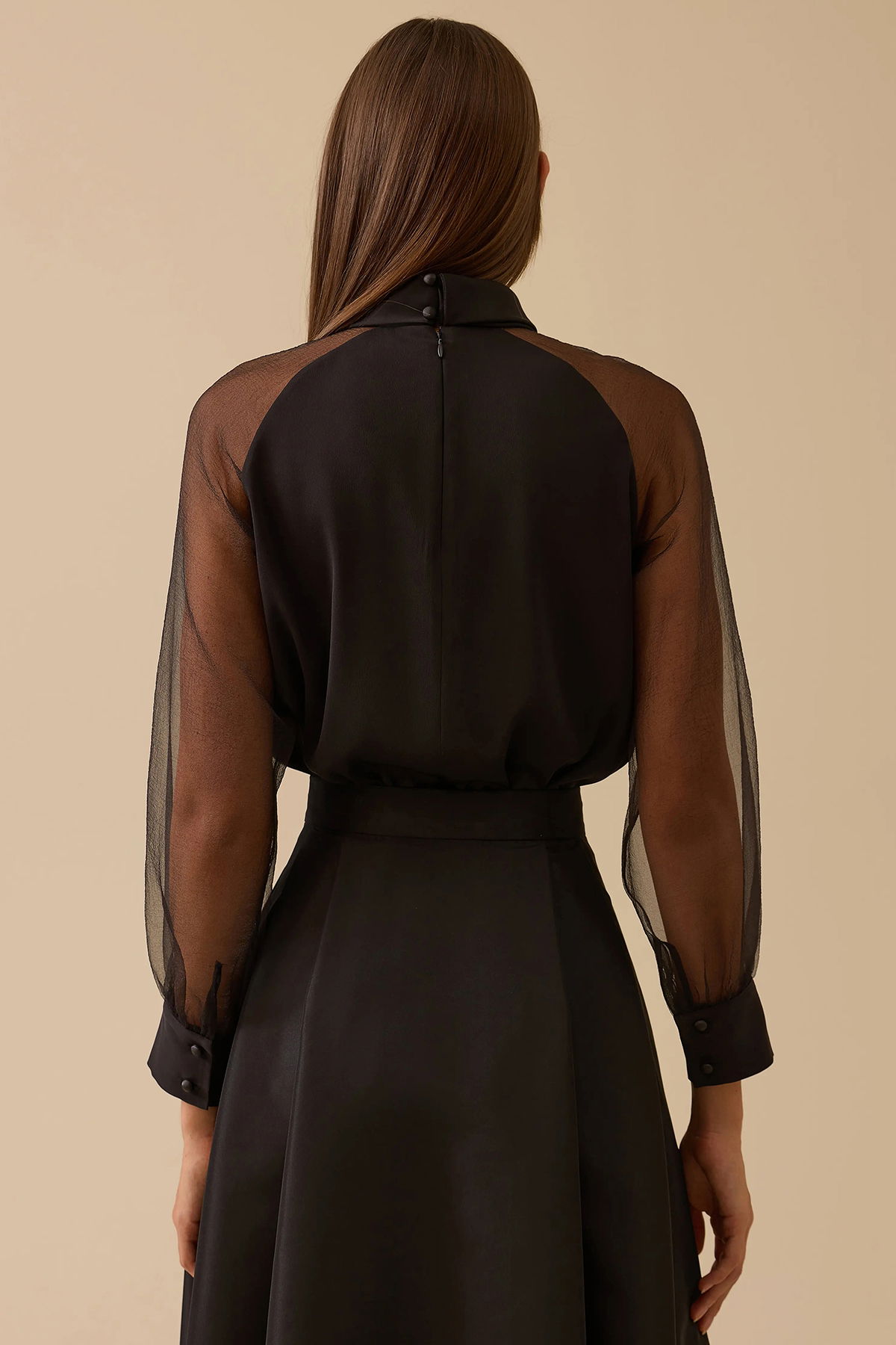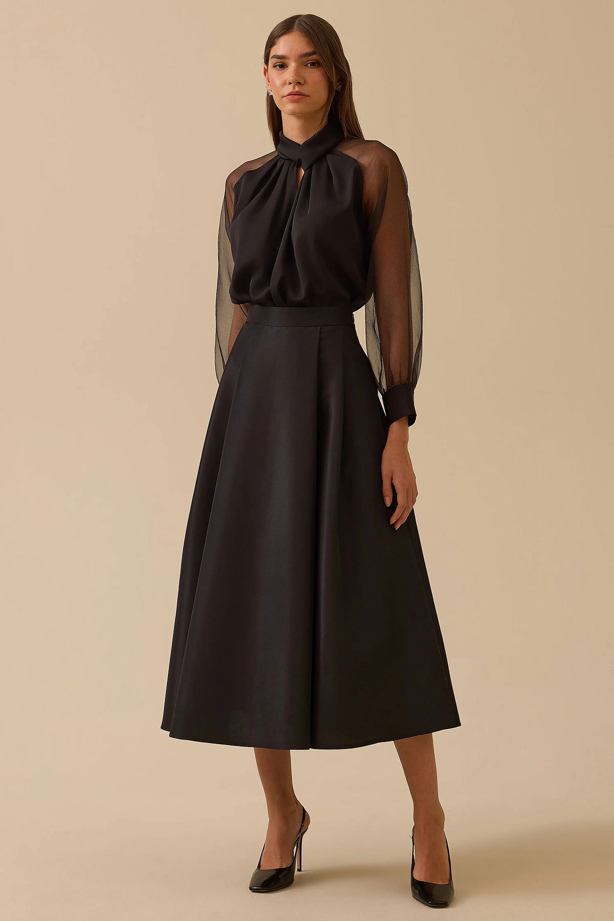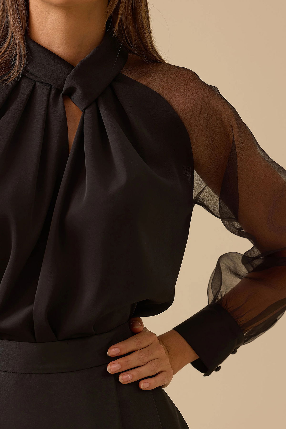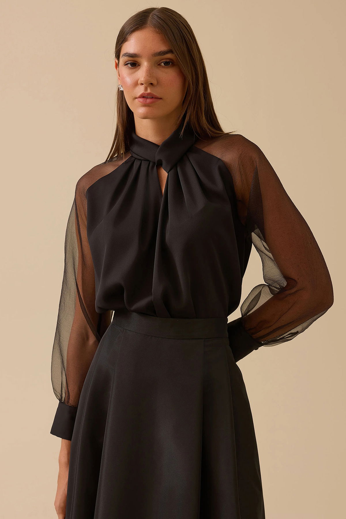 Detay: Sıfır yaka ve uzun reglan kol detaylarıyla zarif bir duruş sunan fermuarlı bluz, klasik kesimiyle şık tarzı sade bir şıklıkla buluşturuyor. Bel hizasında biten iki kumaşlı dokuma saten yapısı, hem parlak hem de sofistike bir görünüm sağlar. Günlük stilinizi özel bir dokunuşla tamamlayan bu bluz, modern şehir modasının güçlü parçalarından biridir;