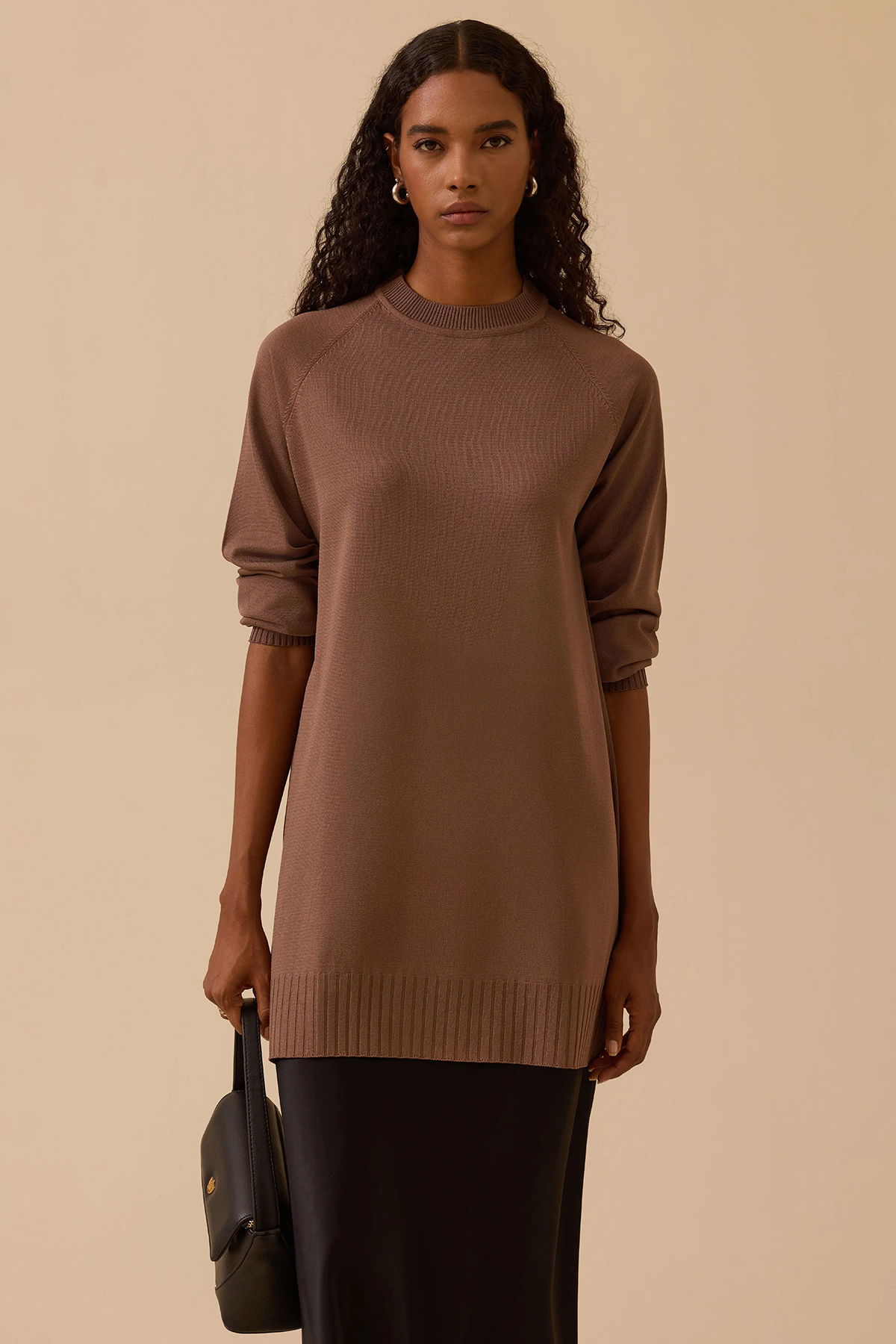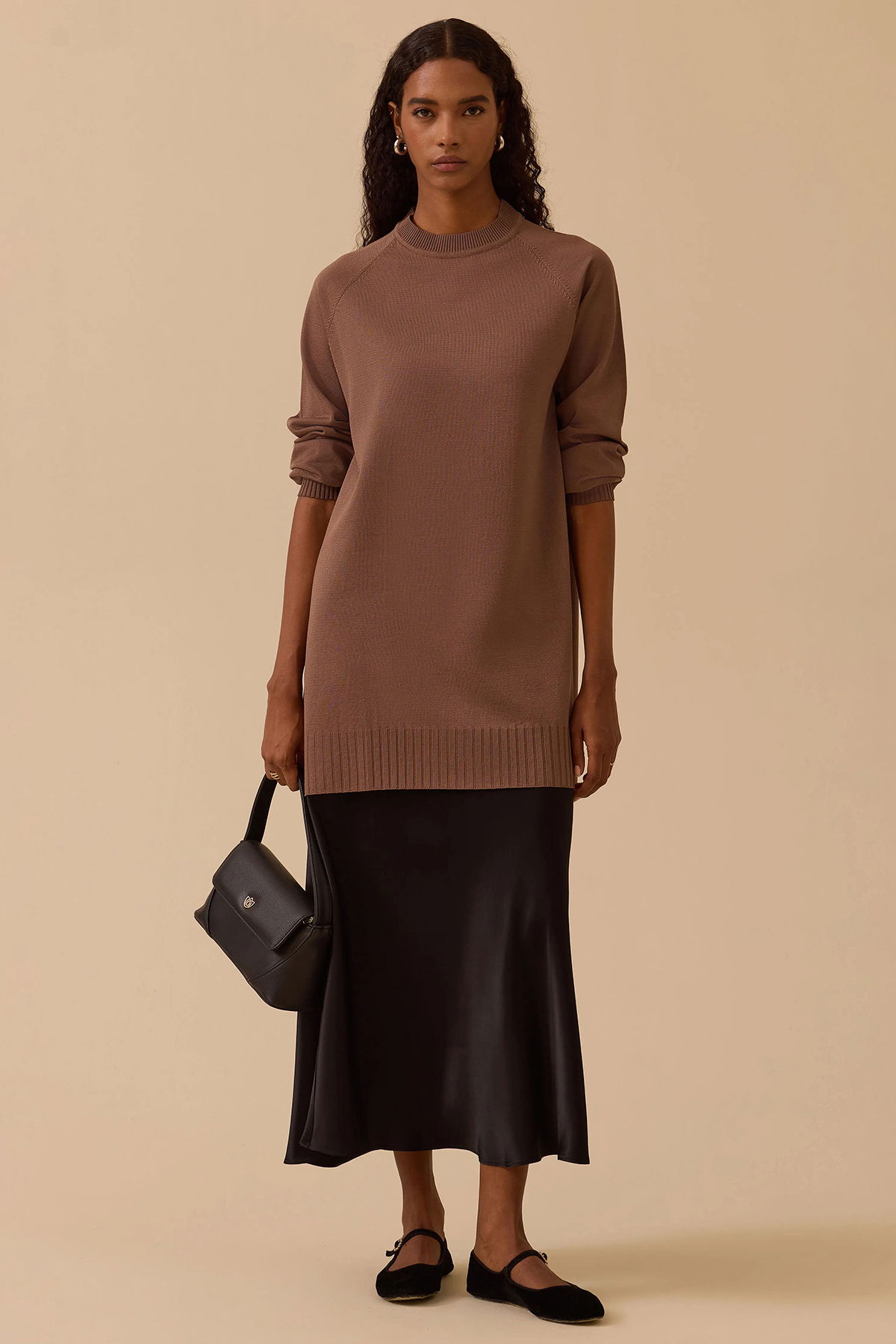 Seçil Kadın Uzun Kollu Basic Triko Tunik 1005 Kahverengi