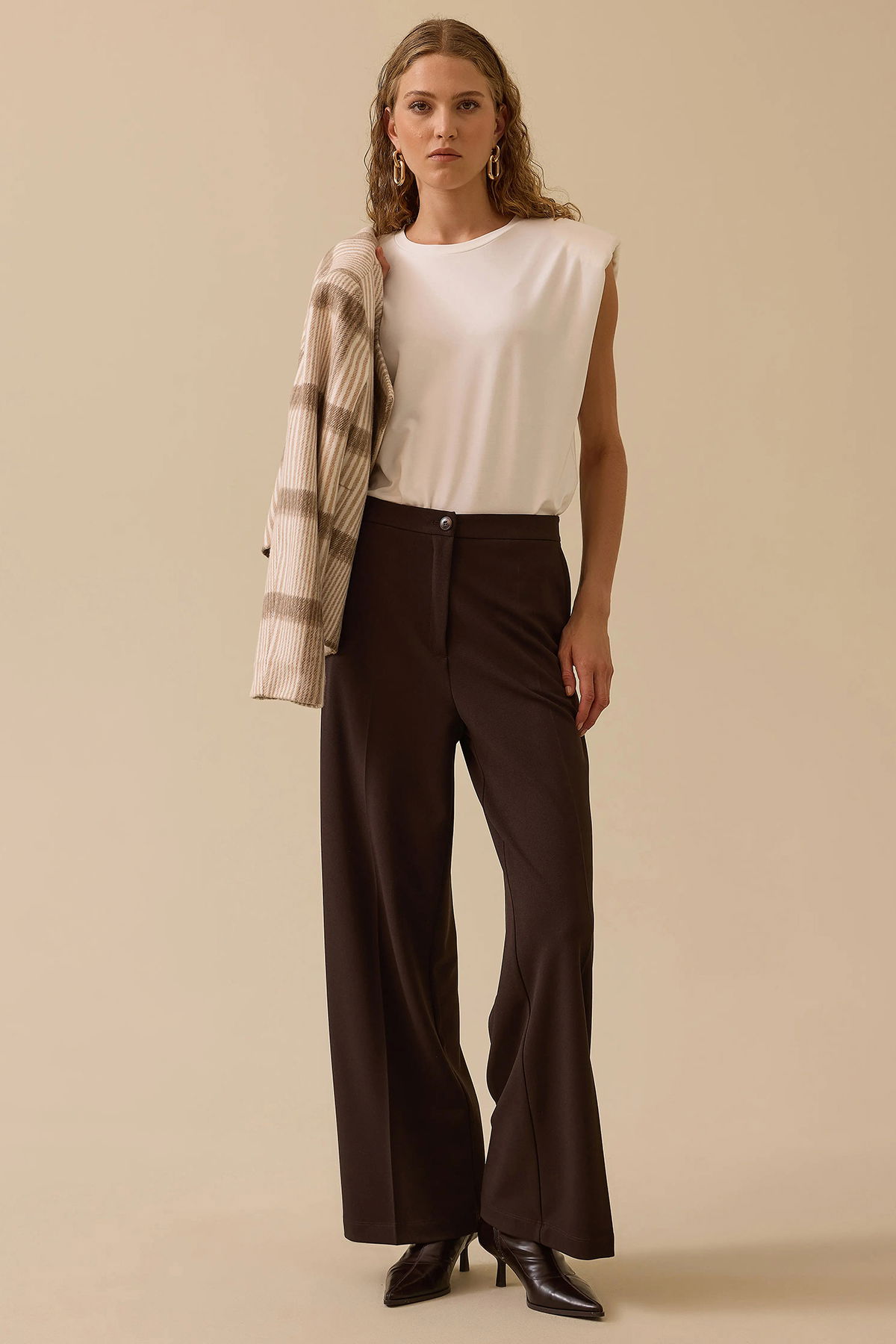 Detay: Klasik kesim ve klasik tarzıyla öne çıkan bu tam boy pantolon, normal bel yüksekliğiyle konforu ve şıklığı bir arada sunar. Düz dokuma kumaş yapısı ve düğmeli kapama şekli sayesinde hem resmi hem günlük kullanıma uygundur. Düğme detaylı aksesuarlarıyla sade ama zarif bir görünüm yakalamak isteyenler için ideal bir seçenektir;