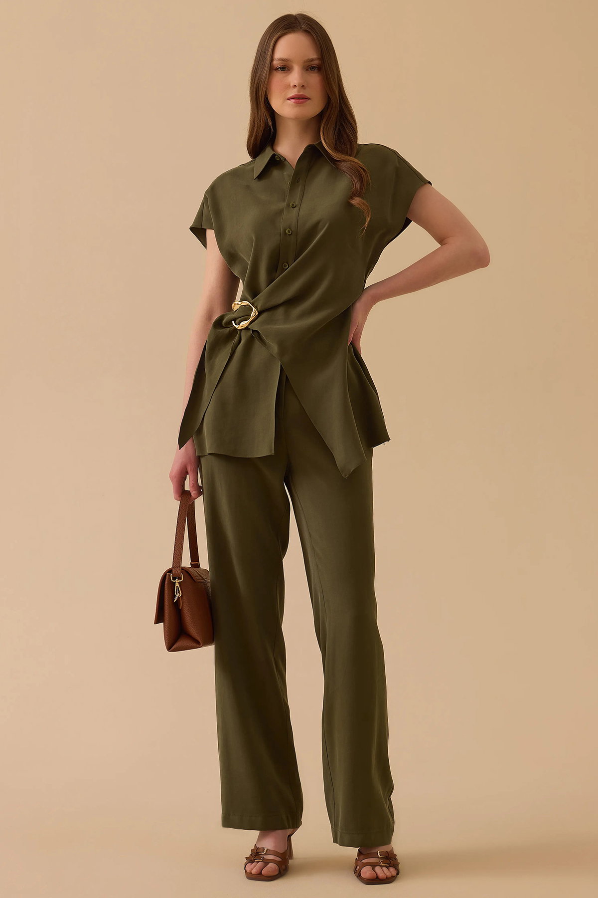 Detay: Modal kumaştan üretilen, astarsız, yüksek bel ve geniş paça tasarımıyla öne çıkan bu pantolon günlük kullanım için modern ve rahat bir seçenek sunar. Wide leg kesimi ve tam boy formu şık bir siluet oluştururken, düz dokuma kumaş özelliği sade bir görünüm sağlar. Fermuarlı kapama pratiklik kazandırırken cepli detayı fonksiyonel bir kullanım imkânı verir. Günlük kombinlerde hem zarif hem de konforlu bir tercih olarak dikkat çeker;