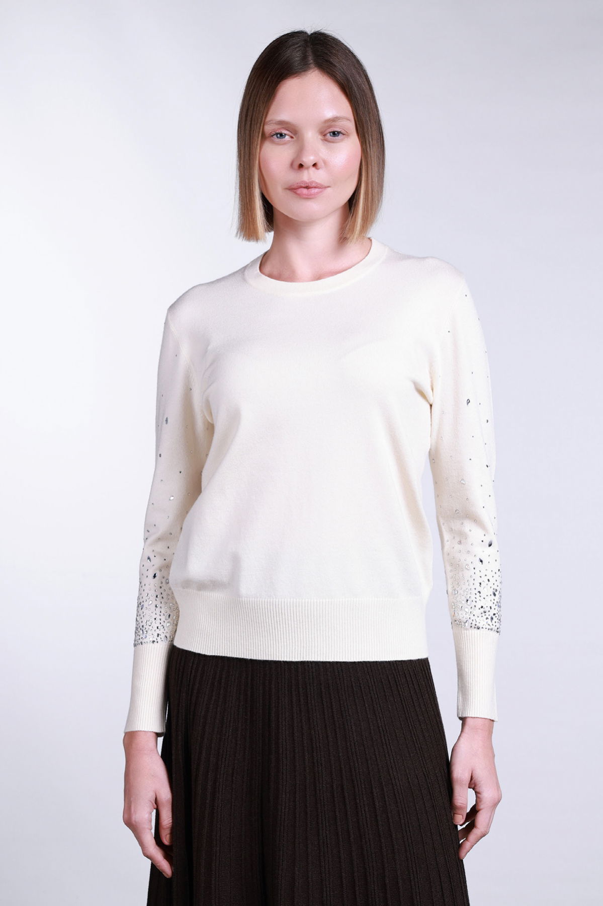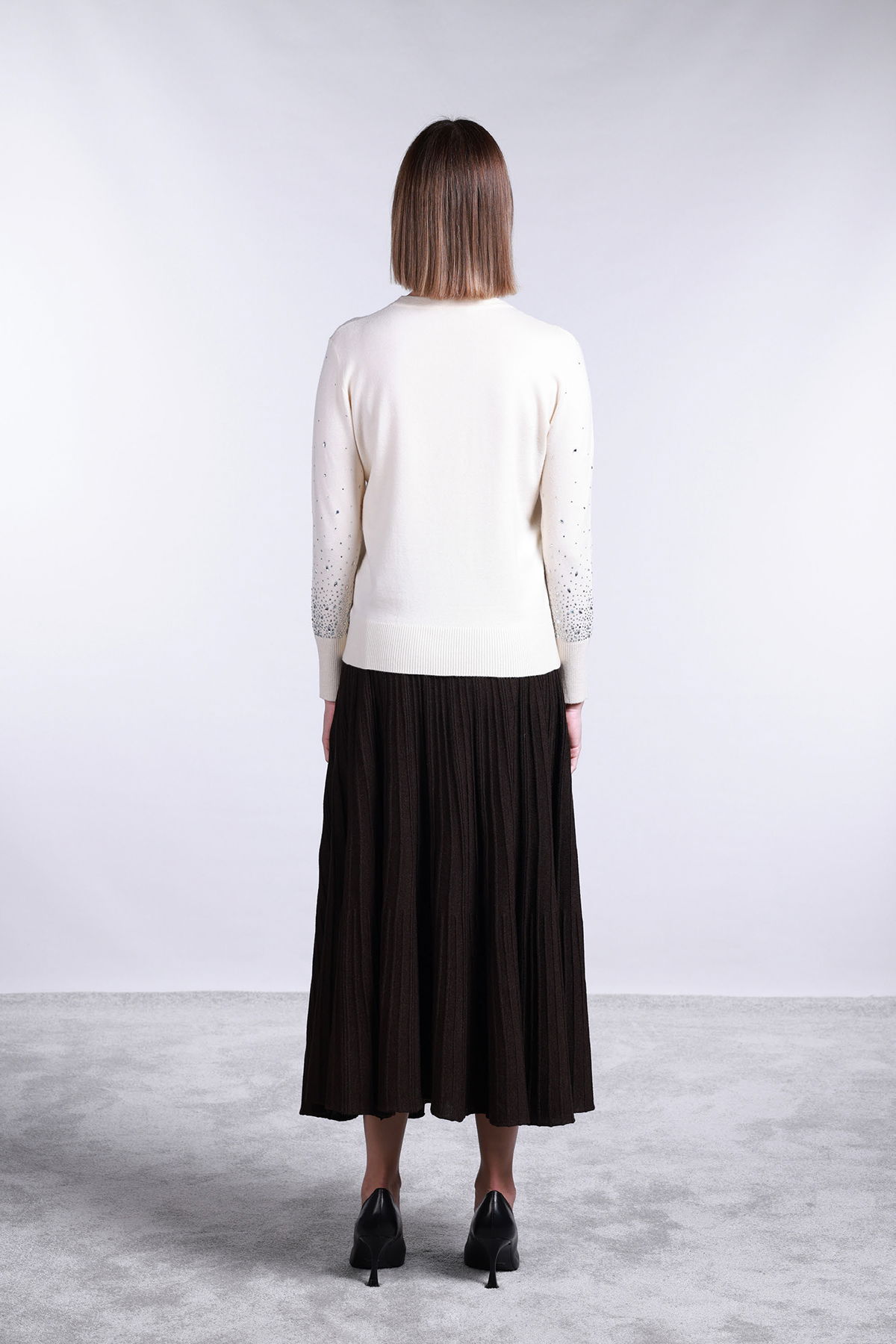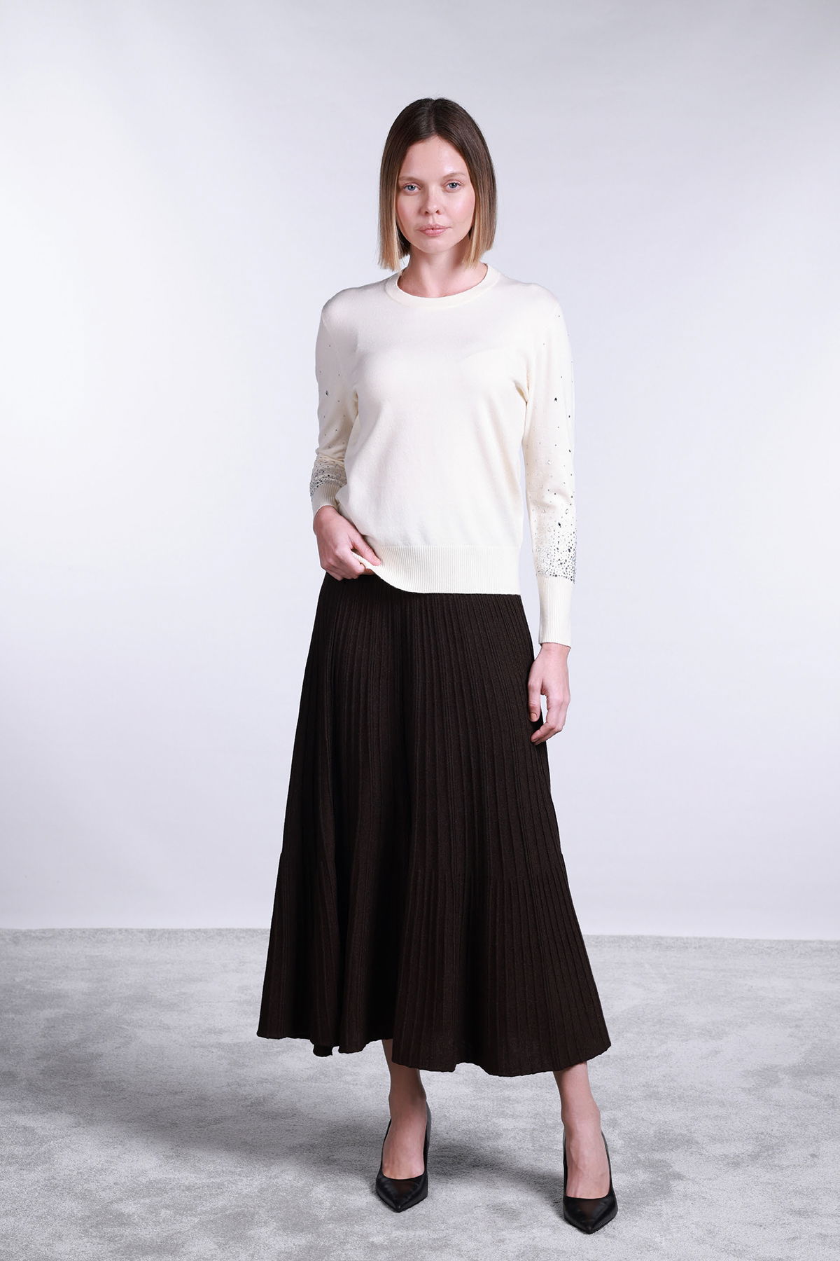 Detay: Bu model, bisiklet yaka tasarımıyla sade bir şıklık sunarken uzun kollarındaki taş süslemelerle göz alıcı bir detay kazanır. Düz örgü dokusu sayesinde hem zarif hem de konforlu bir kullanım sağlar. Taş detaylı düz örgü bisiklet yaka uzun kollu kazak modeli, stiline özen gösterenler için kusursuz bir tercih olarak öne çıkar;