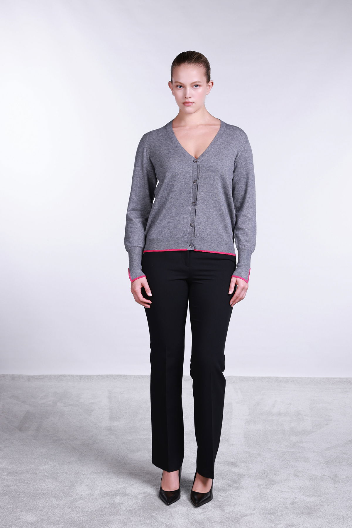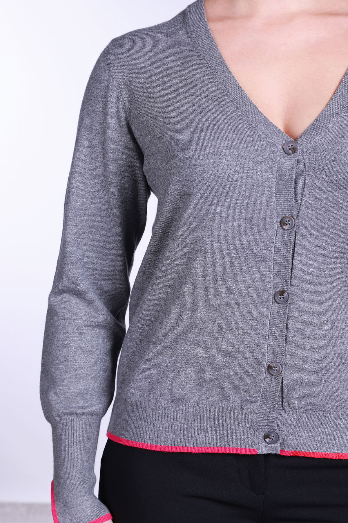 Sempre Kadın V Yaka Kolları Yırtmaçlı Hırka 2708 Gri-Fuşya