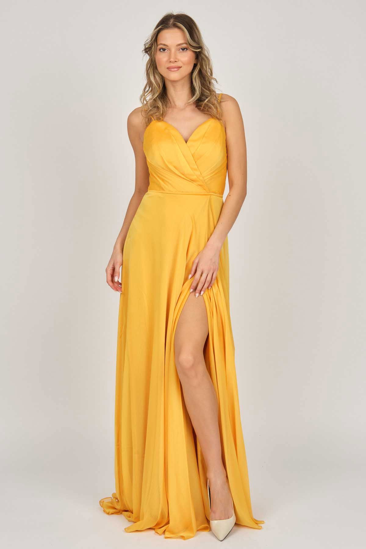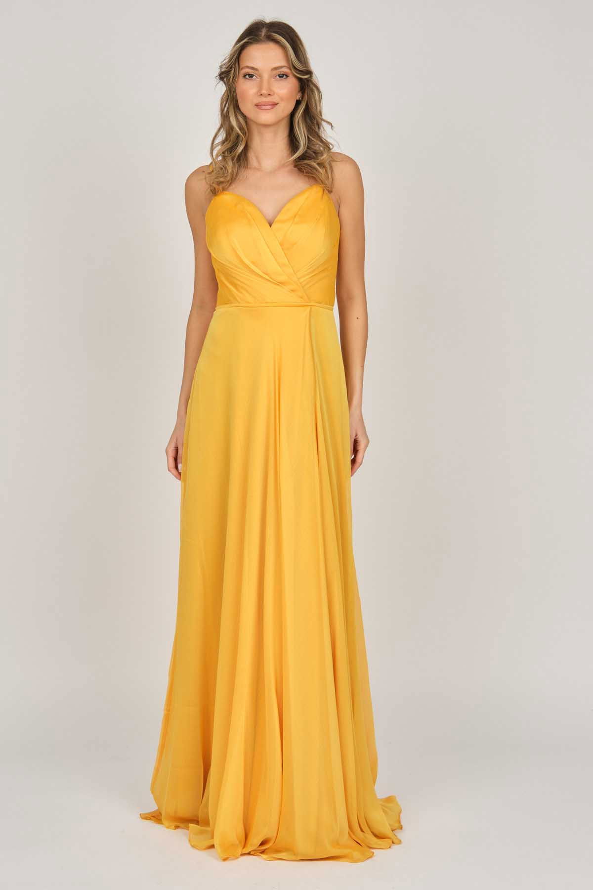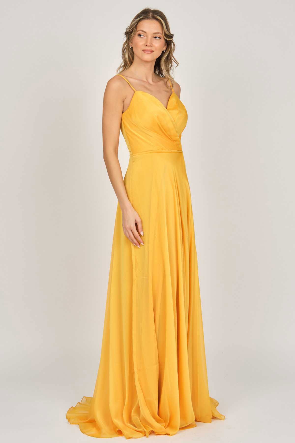 Şeref Vural Kadın Askılı Şifon Abiye Elbise 5437817 Safran