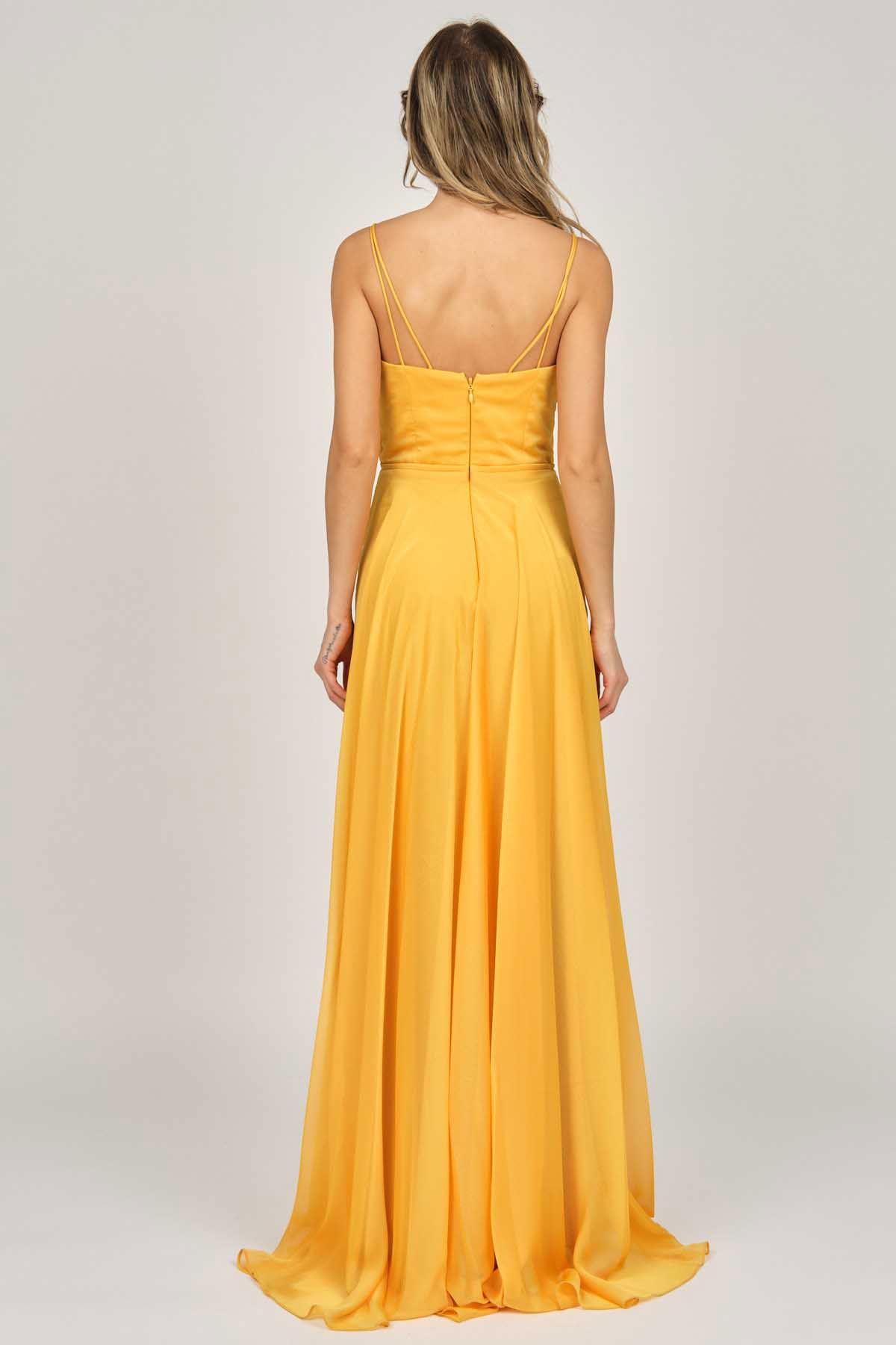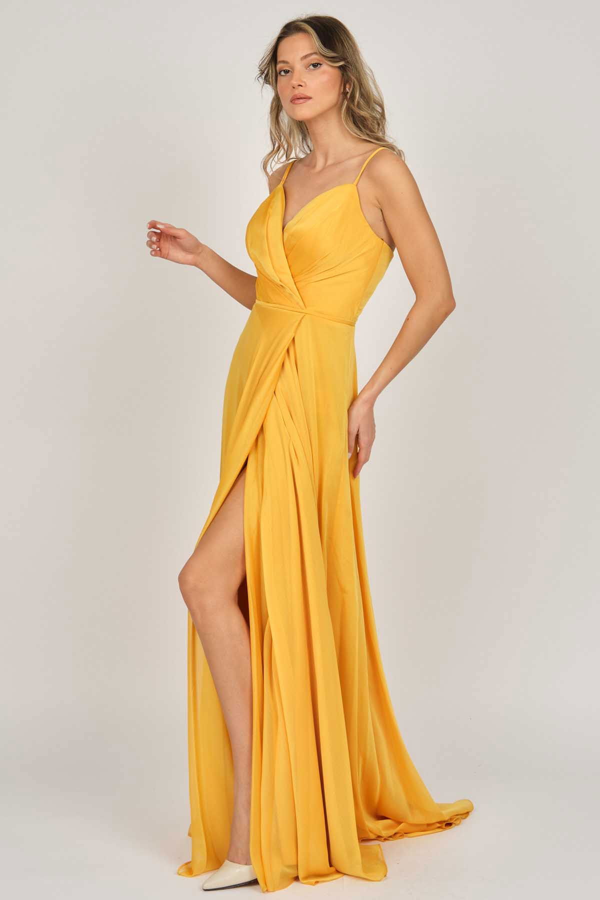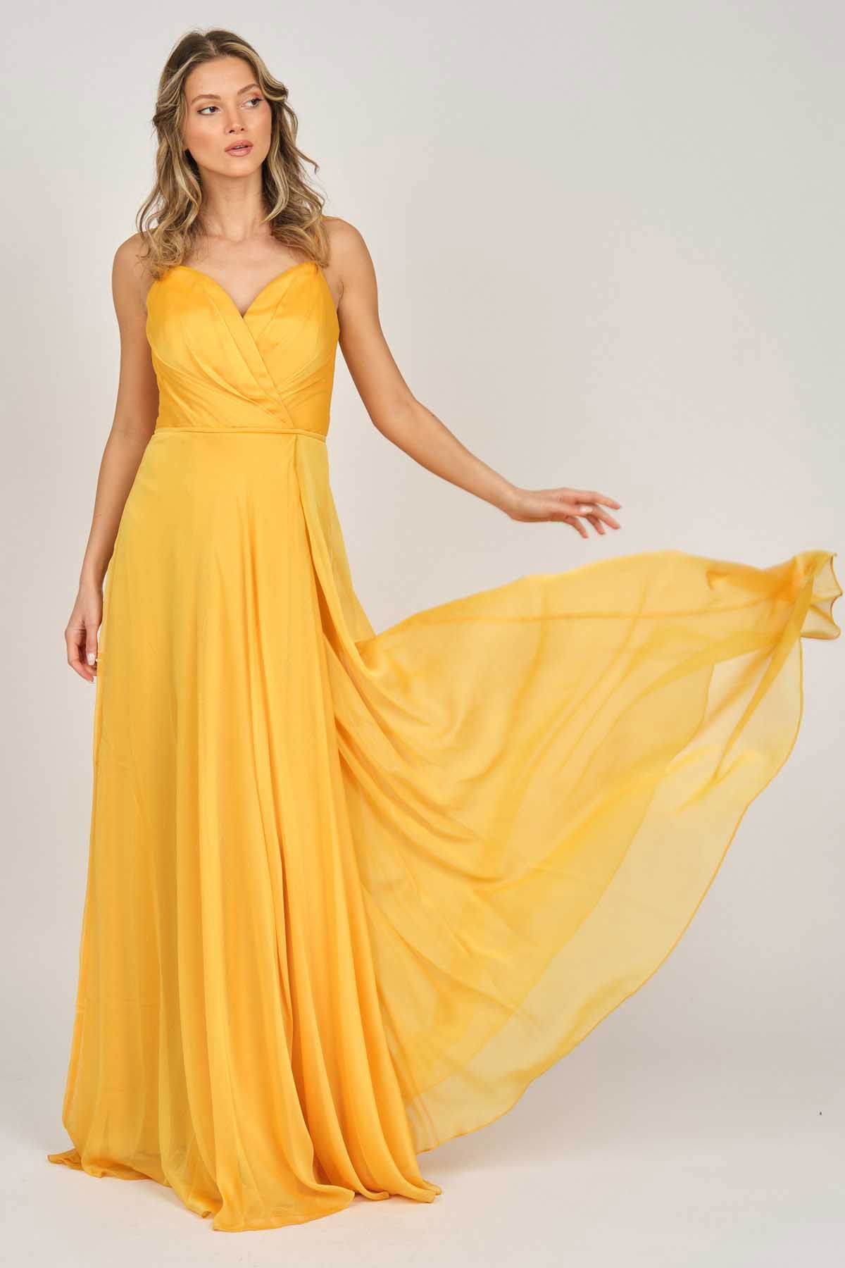 Şeref Vural Kadın Askılı Şifon Abiye Elbise 5437817 Safran