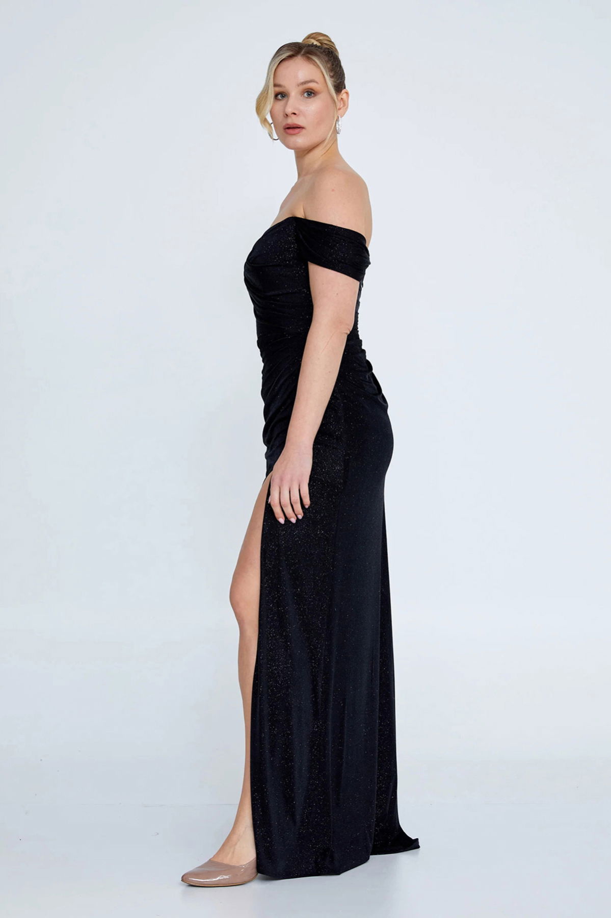 Detay: Simli ve likralı kumaşıyla vücuda zarifçe oturan bu düşük omuz balık form abiye elbise, derin yırtmaç detayıyla cesur ve feminen bir siluet sunar. Astarlı yapısı sayesinde konforlu bir kullanım sağlarken, gece davetlerinde ışıltısıyla tüm dikkatleri üzerine çeker. Hem modern hem iddialı bir stil arayanlar için etkileyici bir tercihtir;
