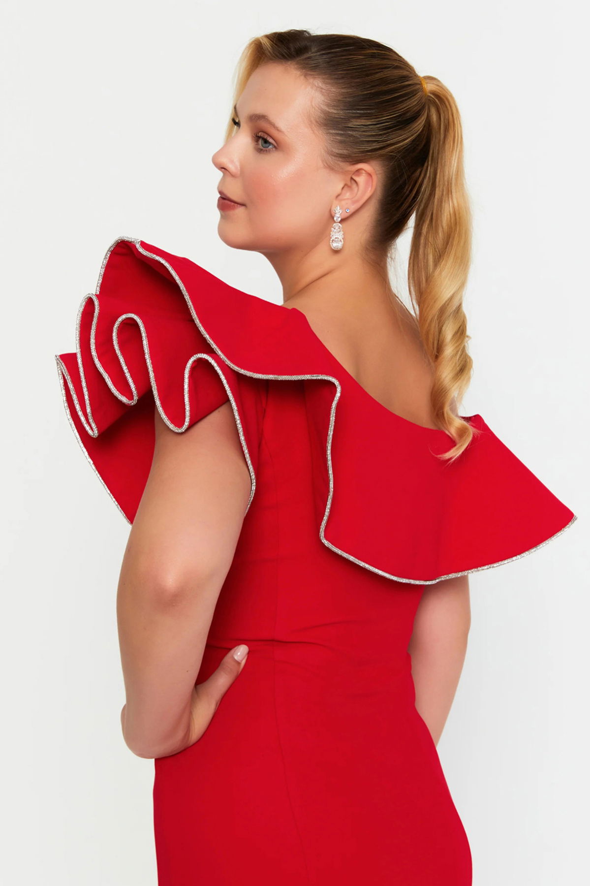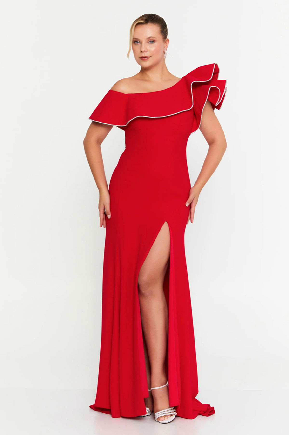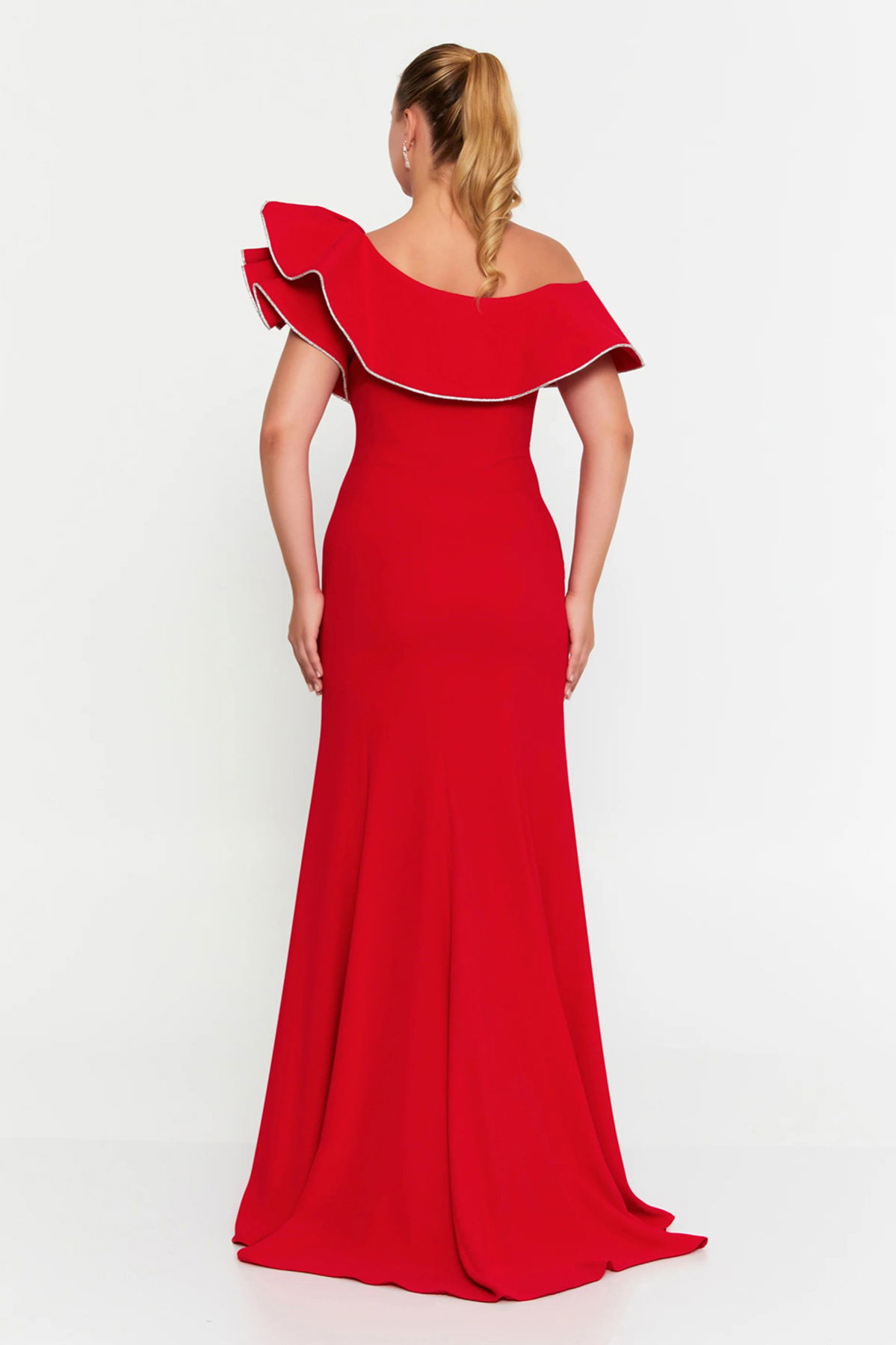 Detay: Tek omuz tasarımı ve omzu volan detaylı yapısıyla öne çıkan bu uzun abiye elbise, krep kumaşı, dar kalıbı ve balık formu sayesinde zarif ve feminen bir siluet sunar. Omuz taş şerit detayı, ön ve arka volanları, derin yırtmaçlı ve kuyruklu tasarımıyla özel davetler, nişan ve gece organizasyonları için göz alıcı bir şıklık sağlar. Astarlı yapısı, yandan fermuarlı kullanımı ve kaliteli işçiligiyle hem konforlu hem de lüks bir abiye elbise arayanlar için ideal bir tercihtir;