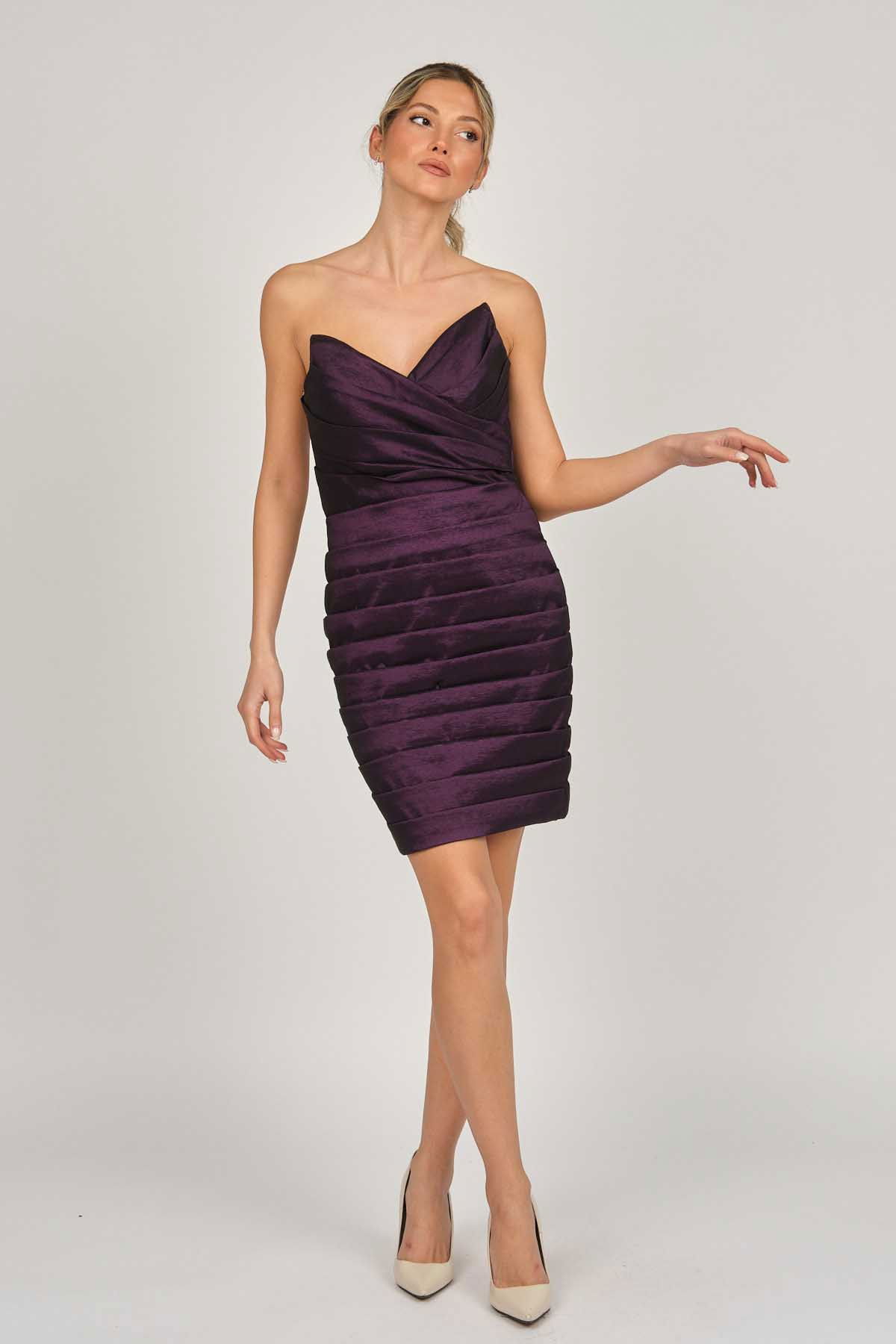 Şeref Vural Kadın Kısa Abiye Elbise 5438015 Mürdüm