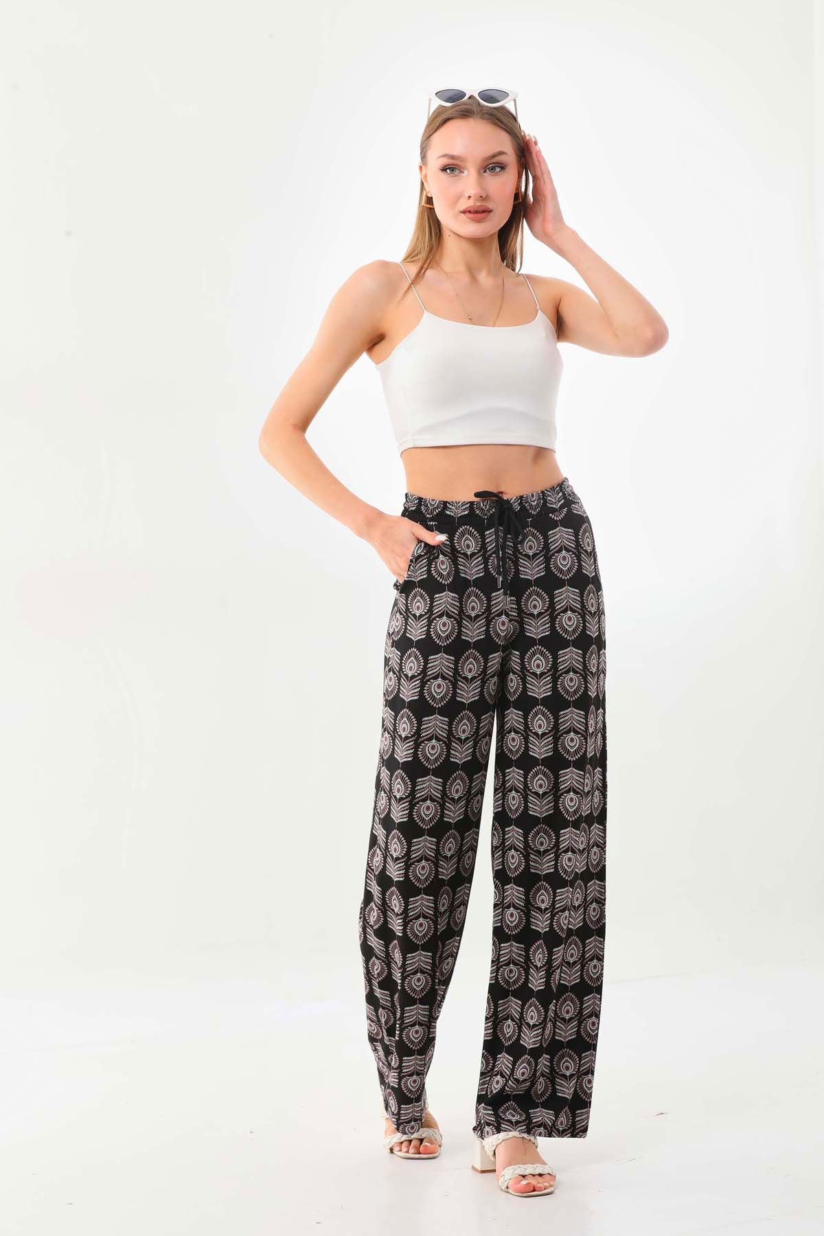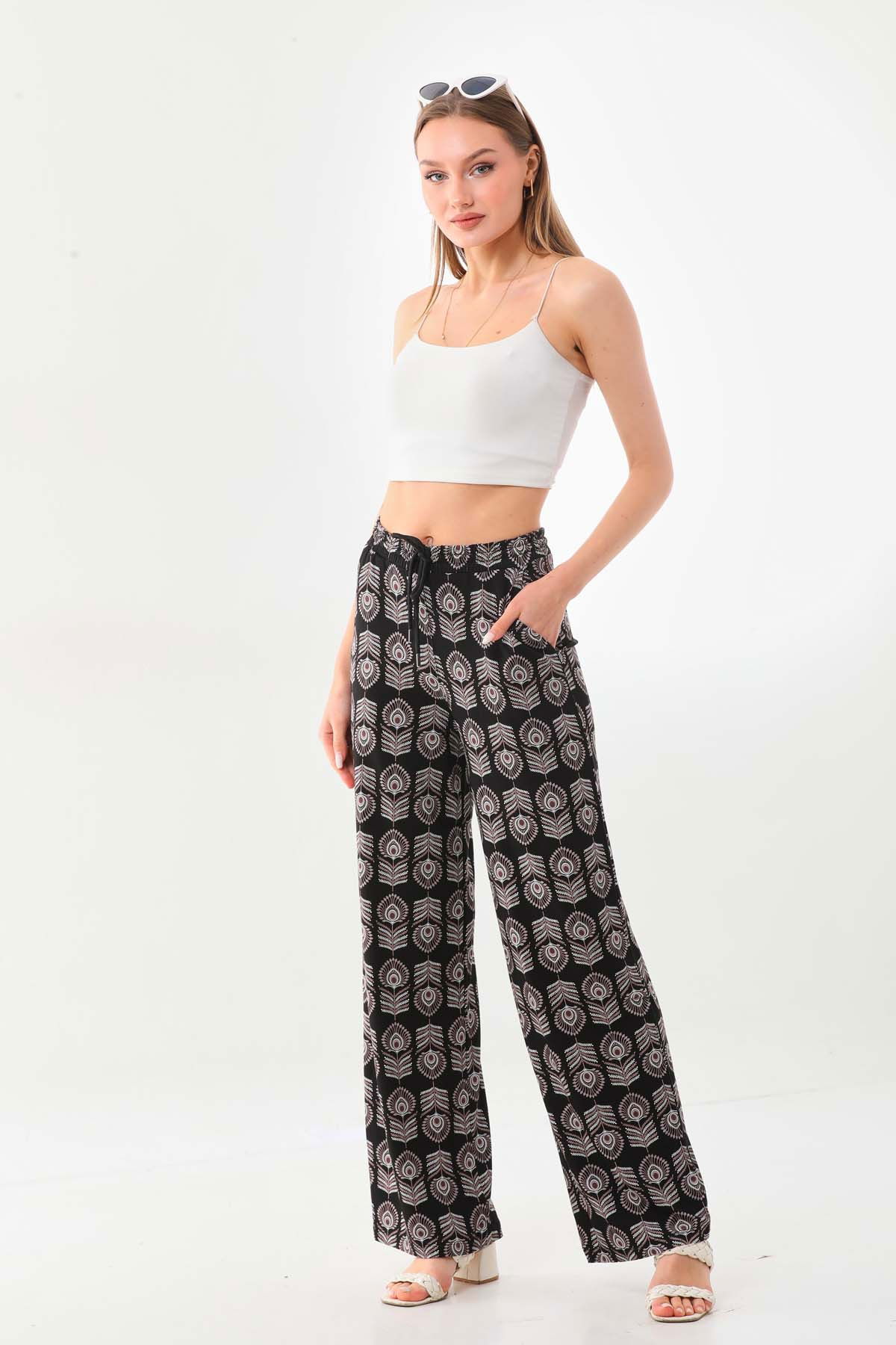 Detay: Belden bağlamalı, lastikli, cepli, rahat form pantolon ;