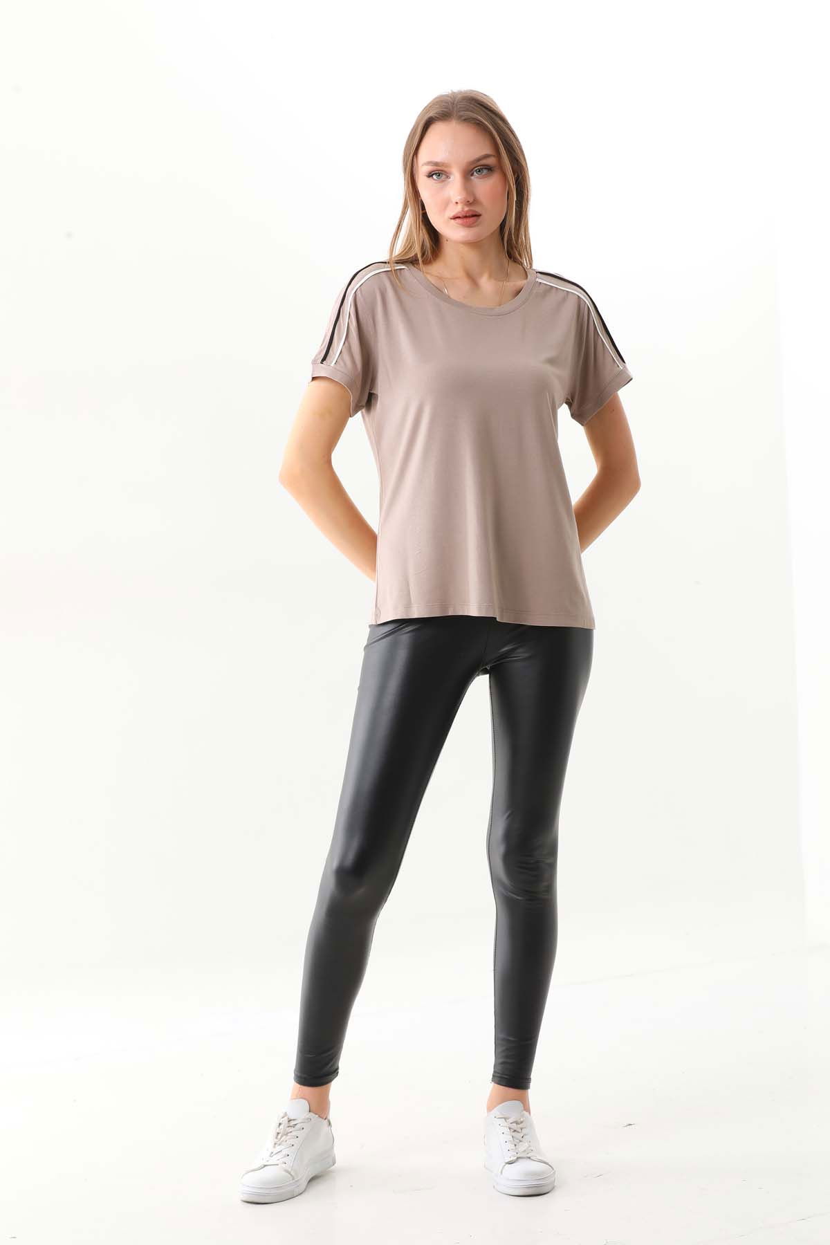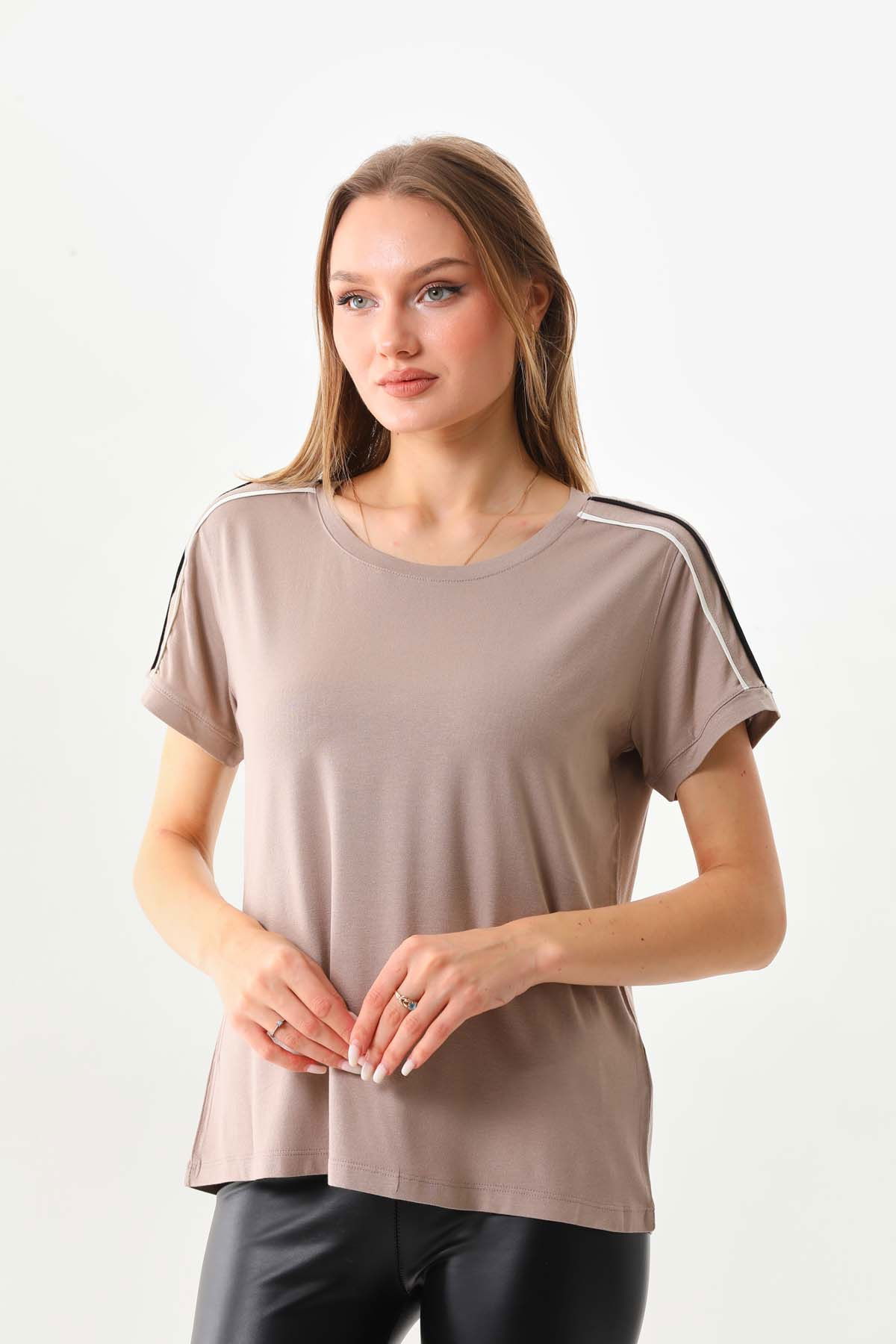 Sistas Kadın Bisiklet Yaka Kısa Kol Bluz 23025 Bej