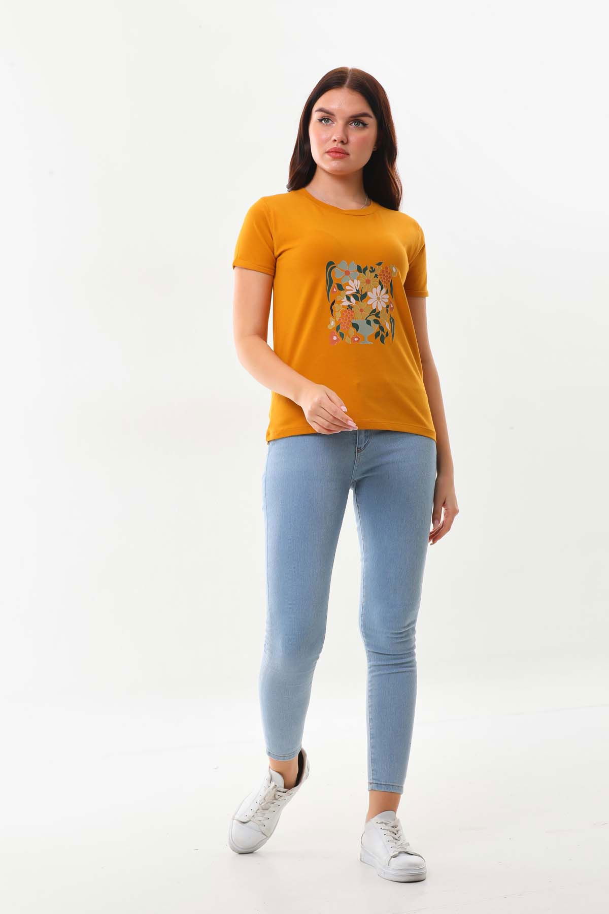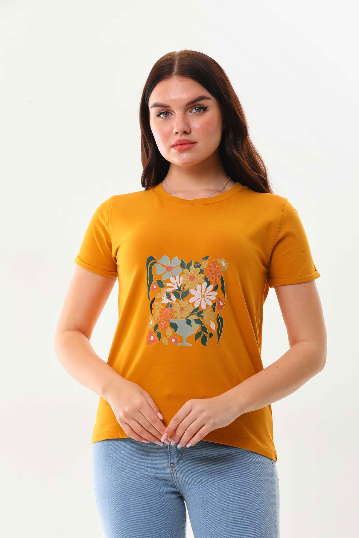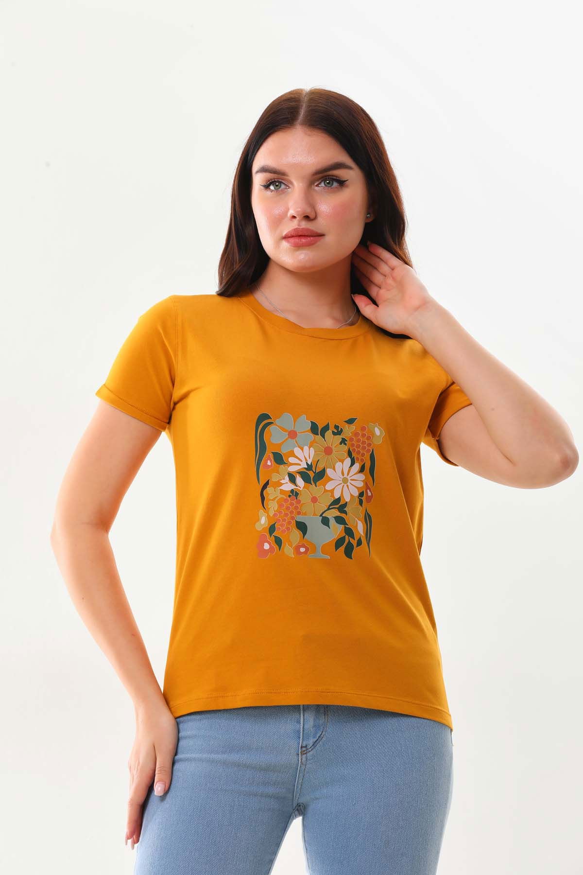 Sistas Kadın Bisiklet Yaka Pamuklu Kısa Kol Bluz 23115 Safran