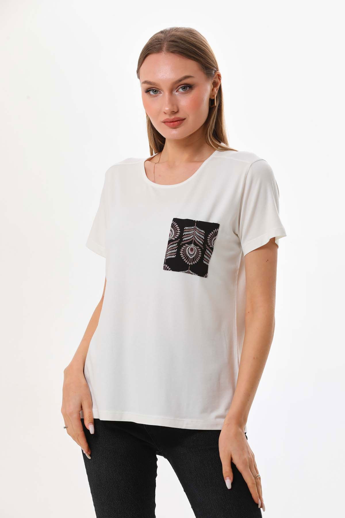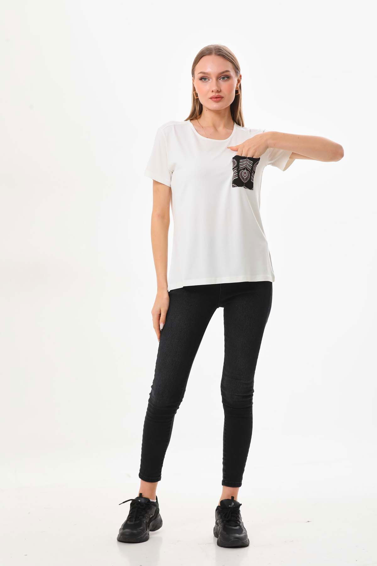 Sistas Kadın Cep Detaylı Kısa Kol Bluz 23179 Ekru