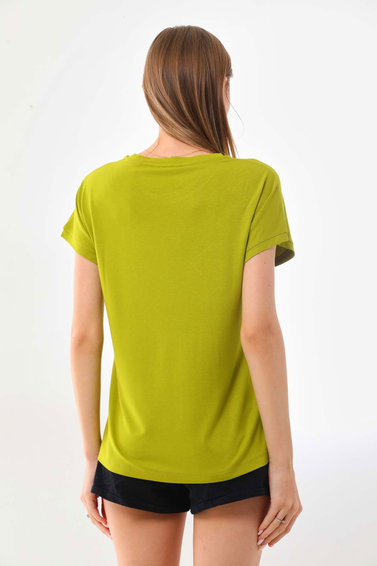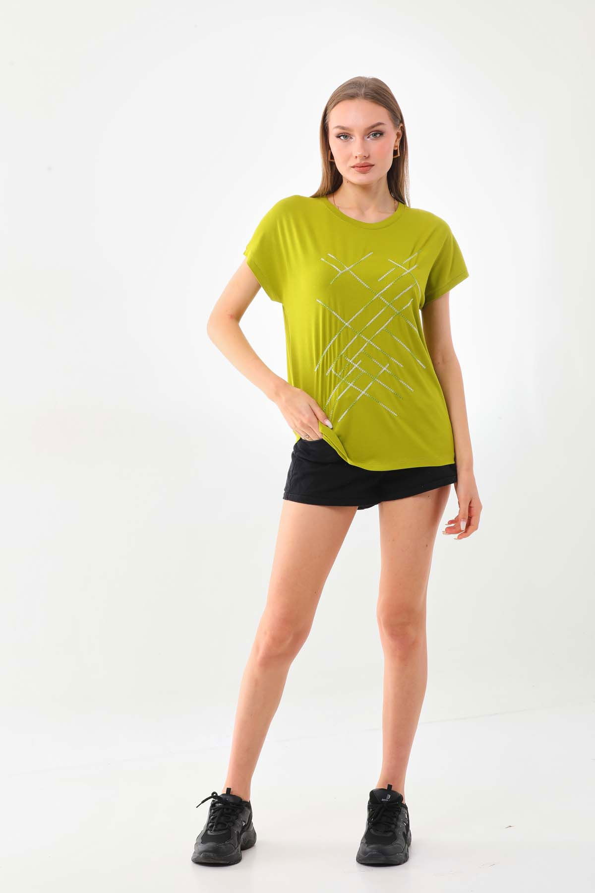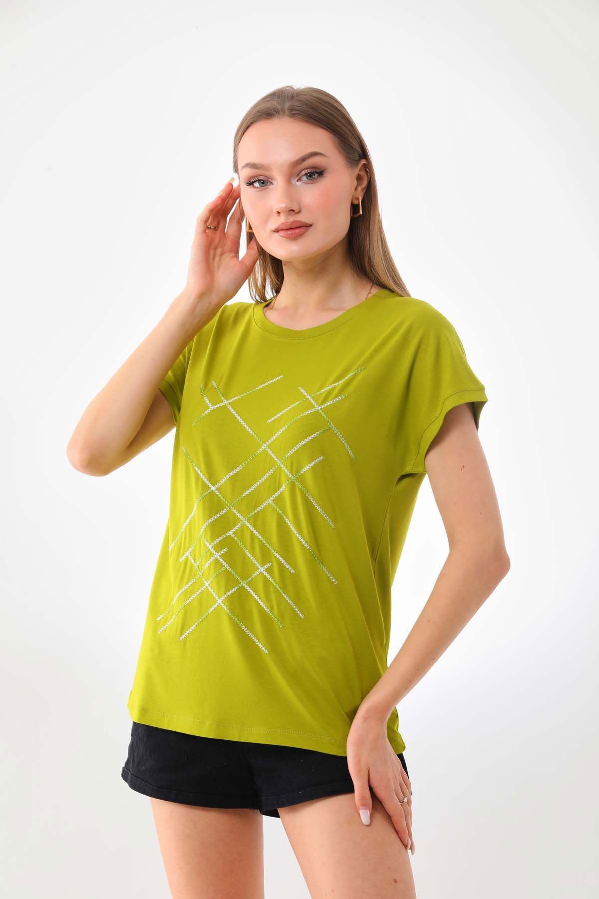 Sistas Kadın Çizgi Desenli Kısa Kol Bluz 23166 Yağ Yeşili