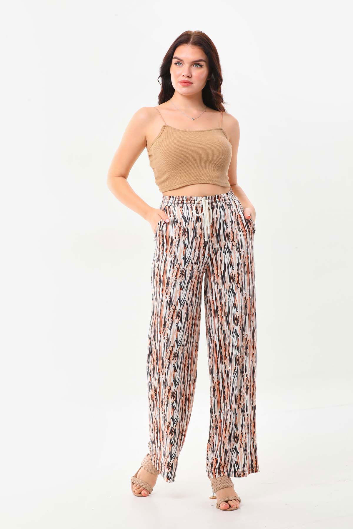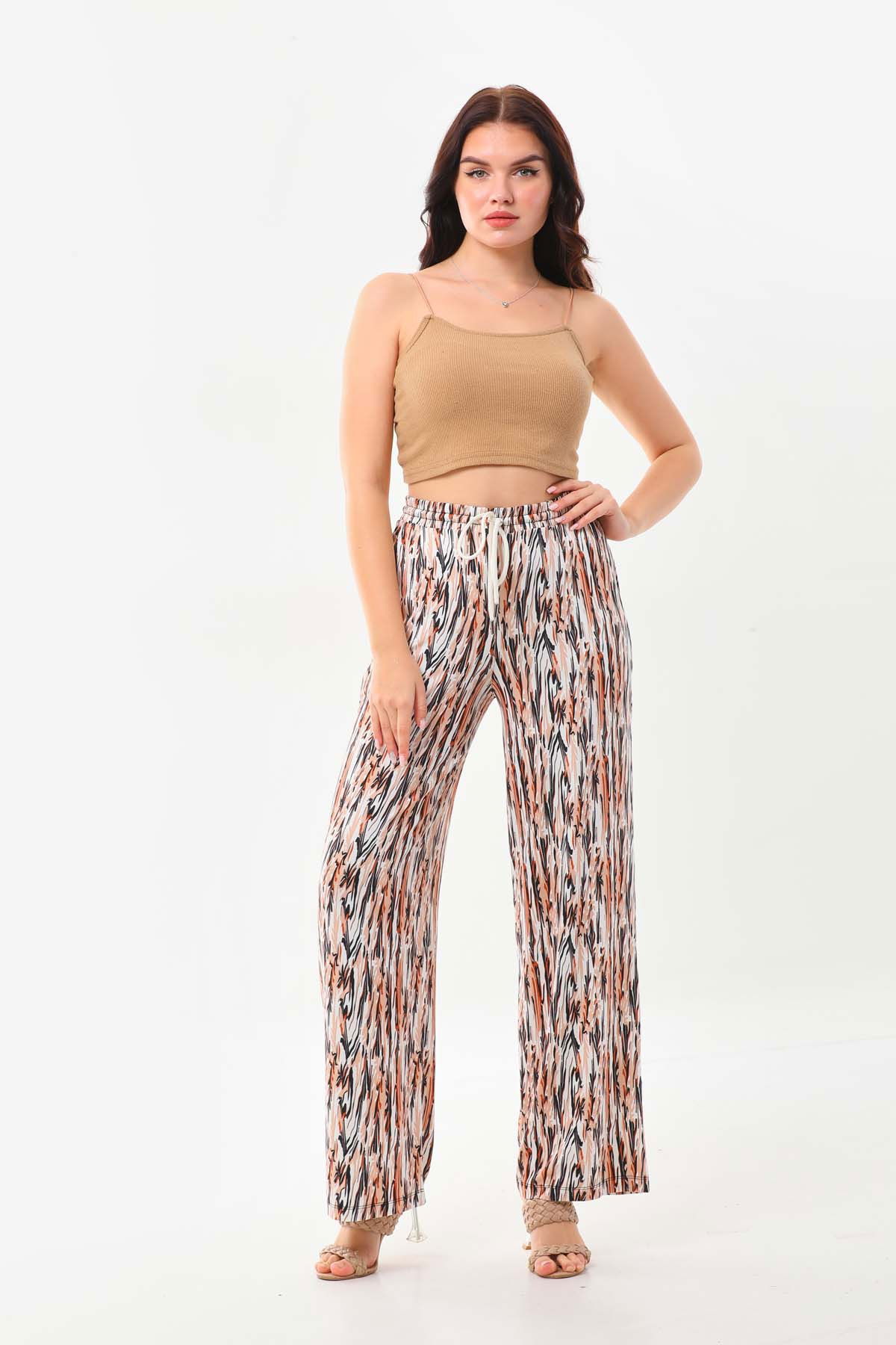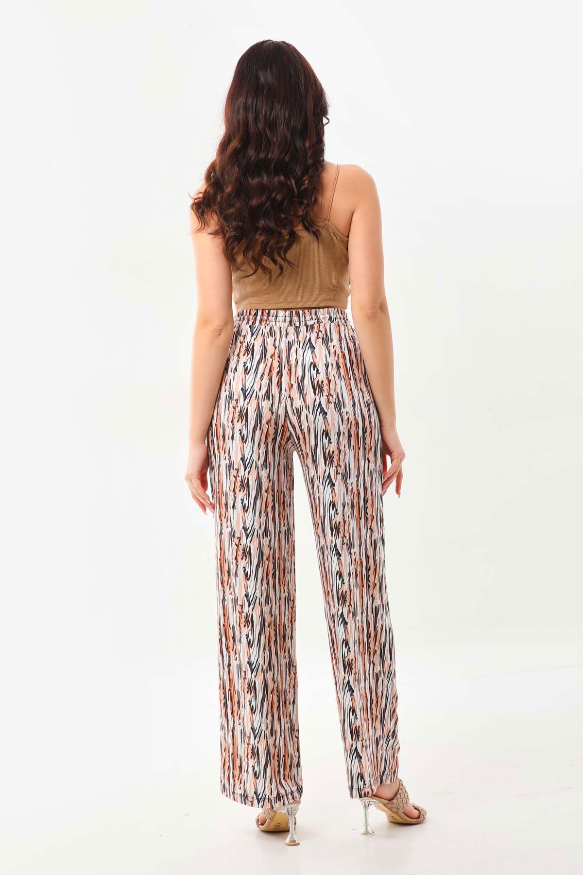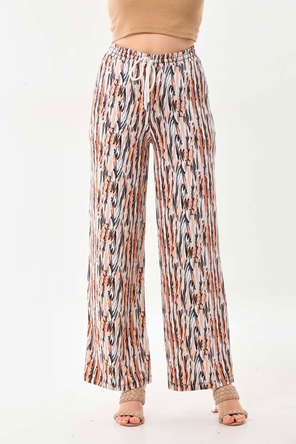 Detay: Desenli, belden bağlamalı, lastikli pantolon;