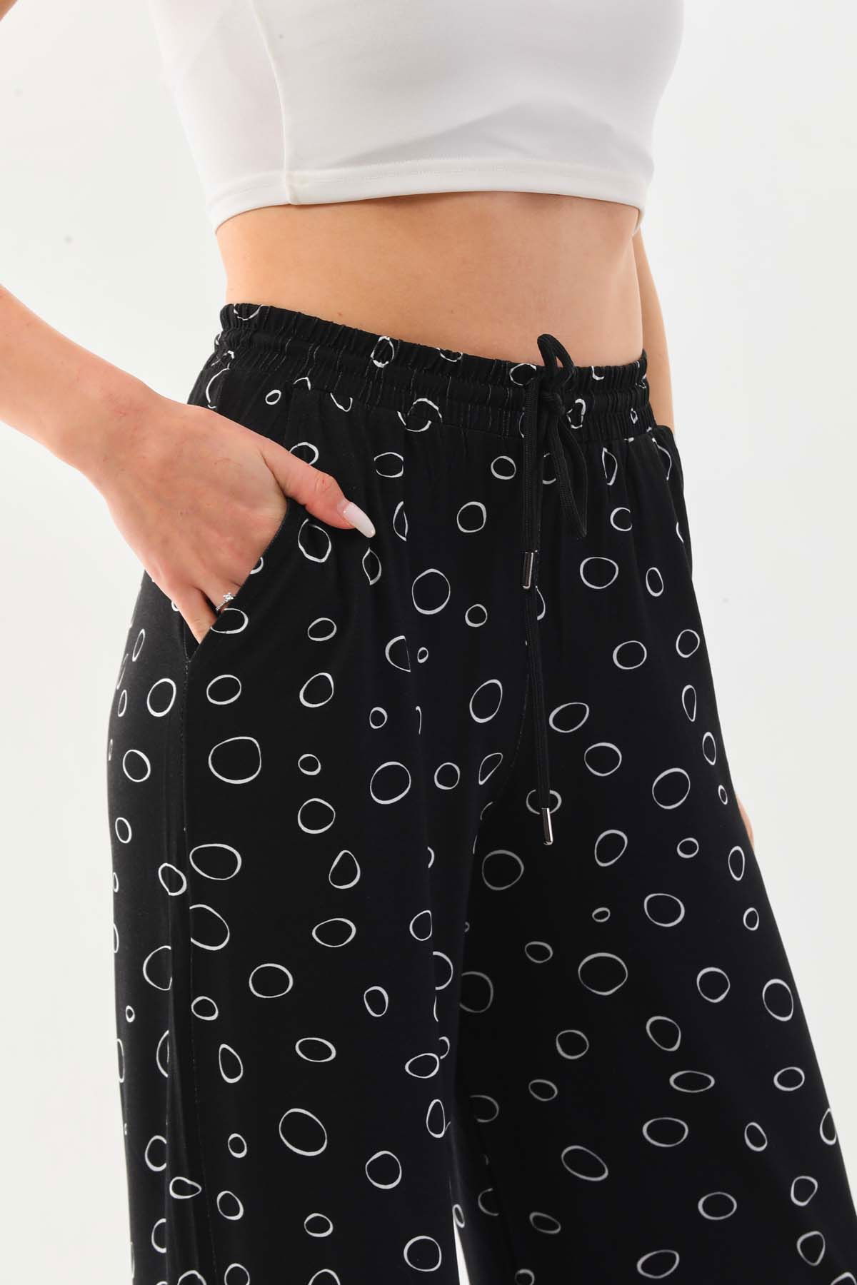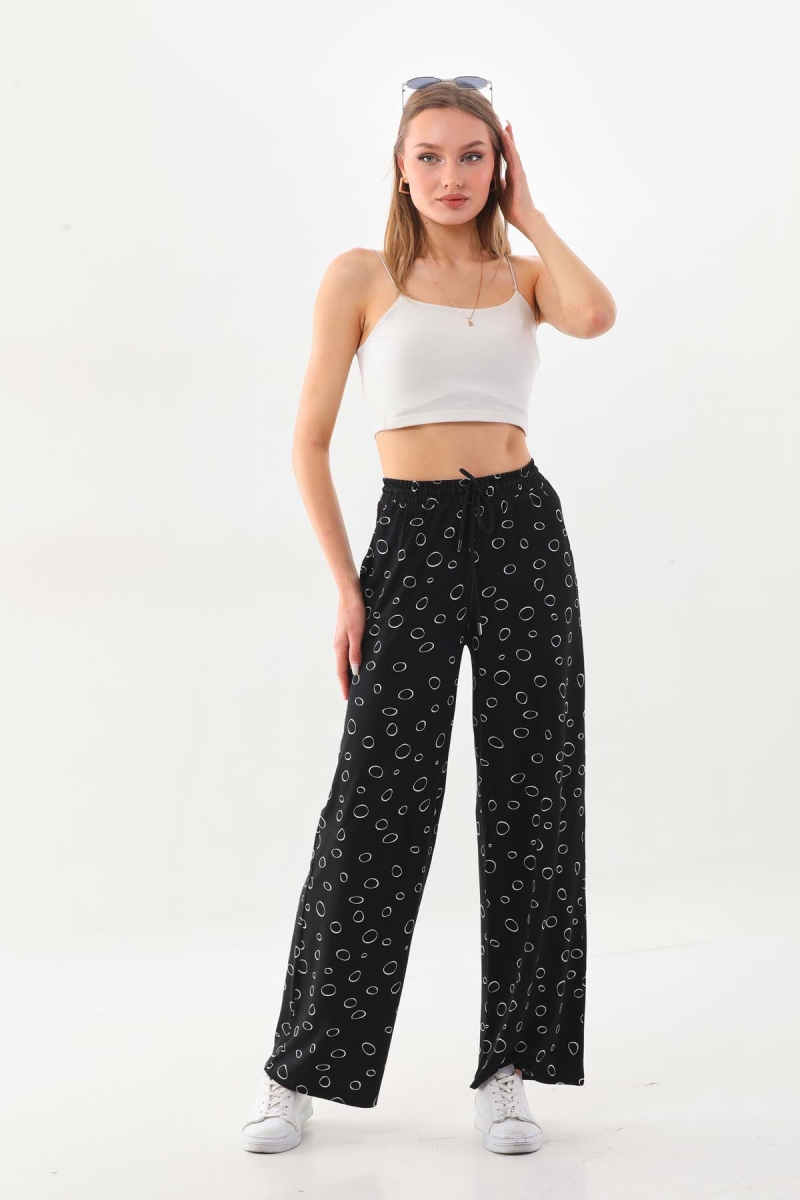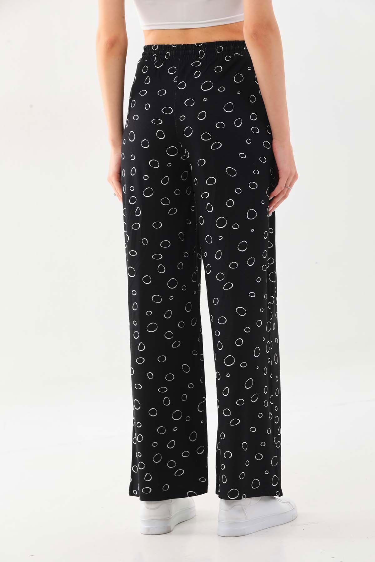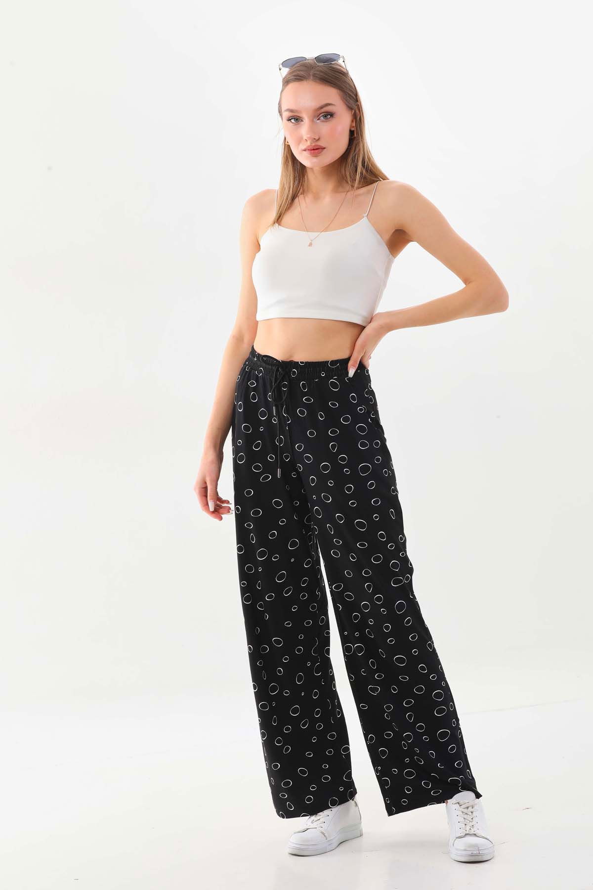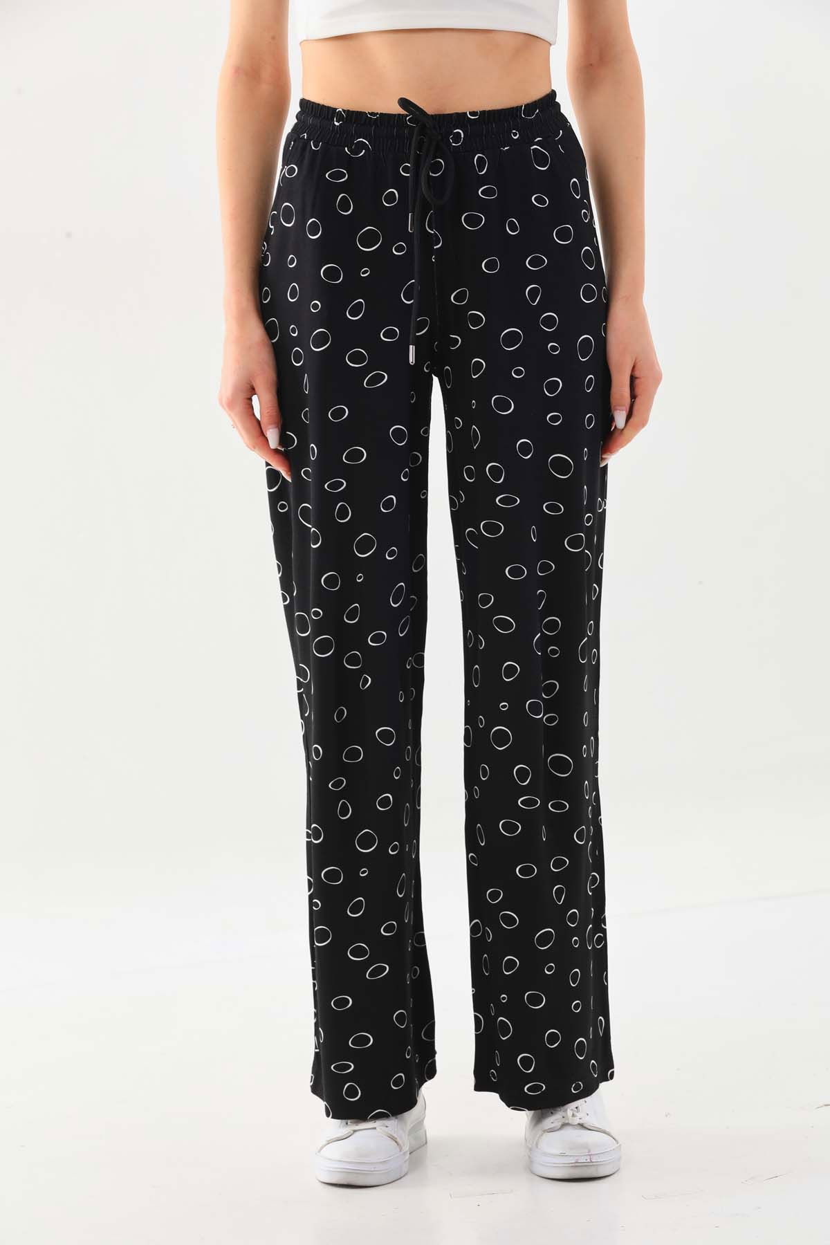 Sistas Kadın Desenli Belden Bağlamalı Rahat Form Pantolon 23498 Siyah