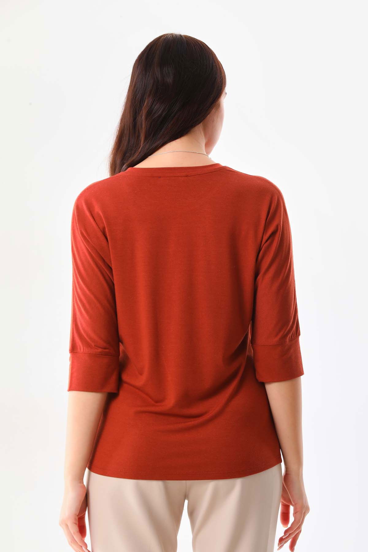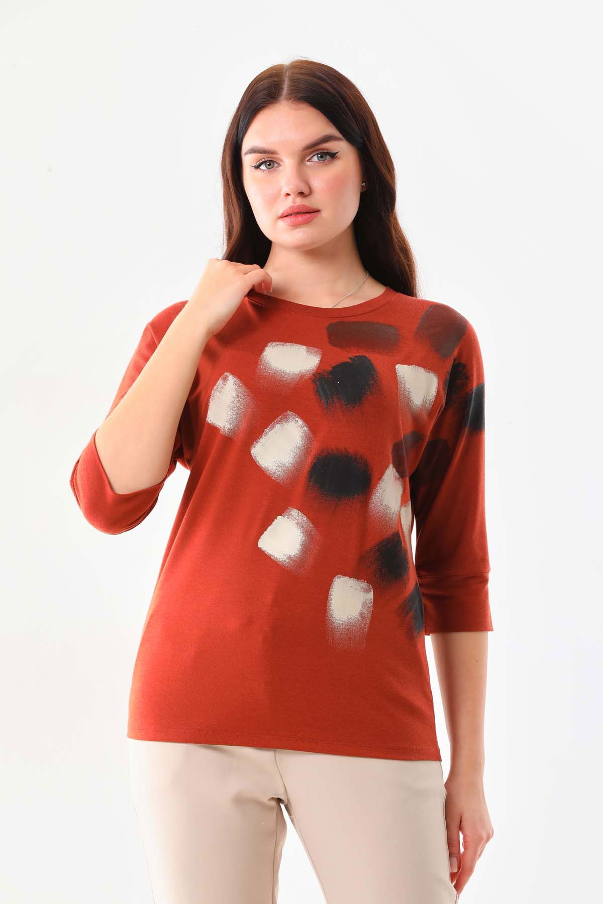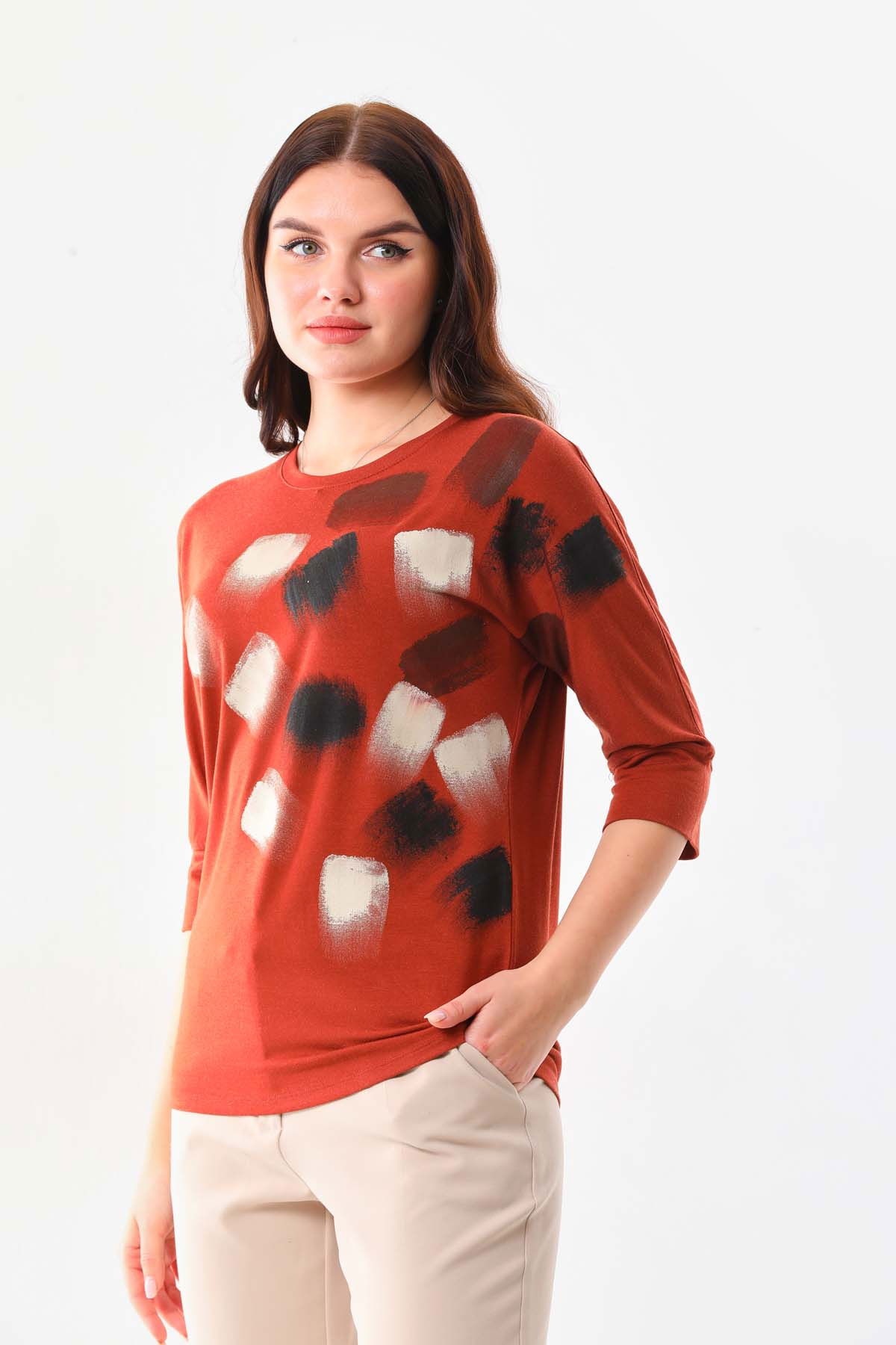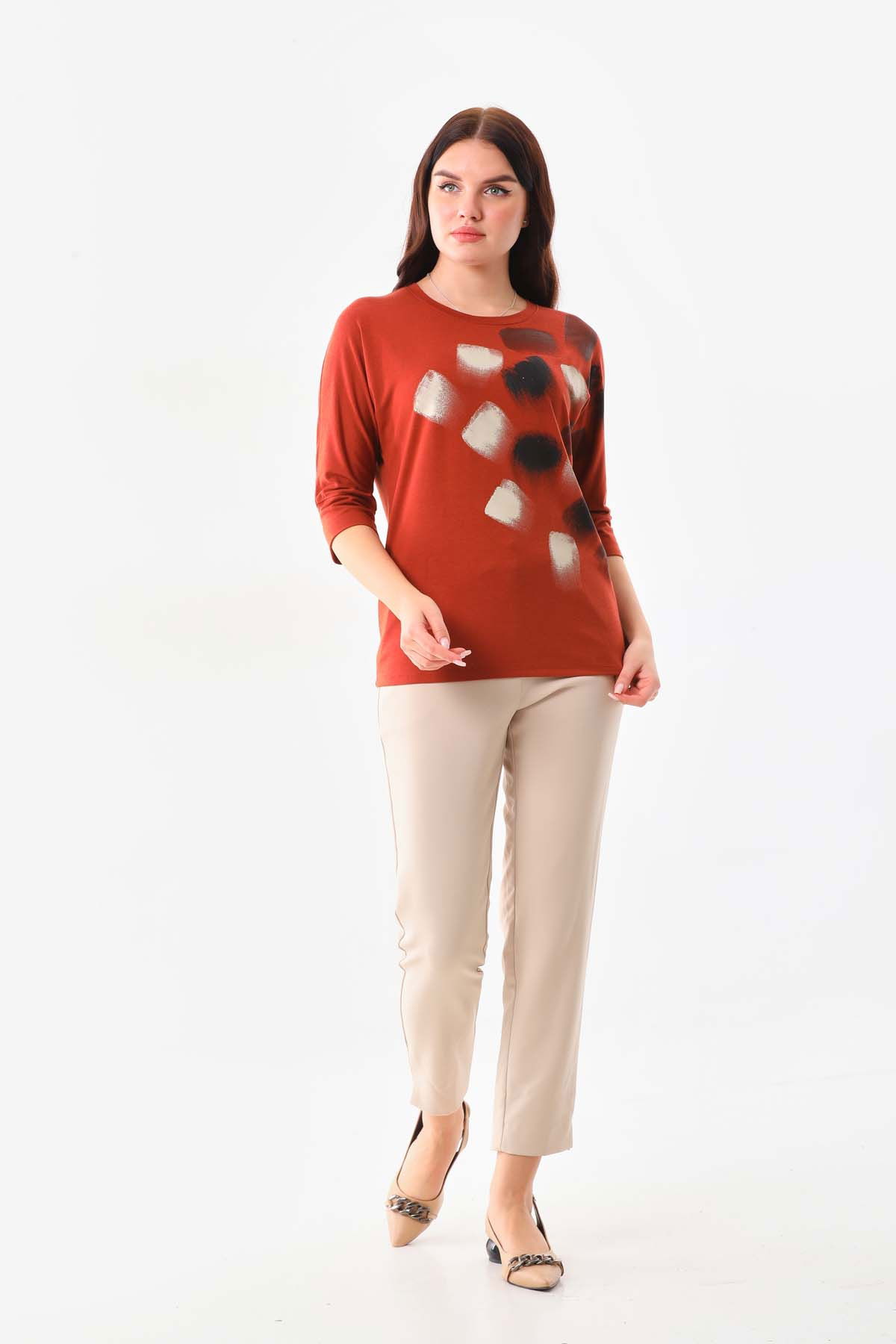Sistas Kadın Desenli Bisiklet Yaka Bluz 23582 Kiremit