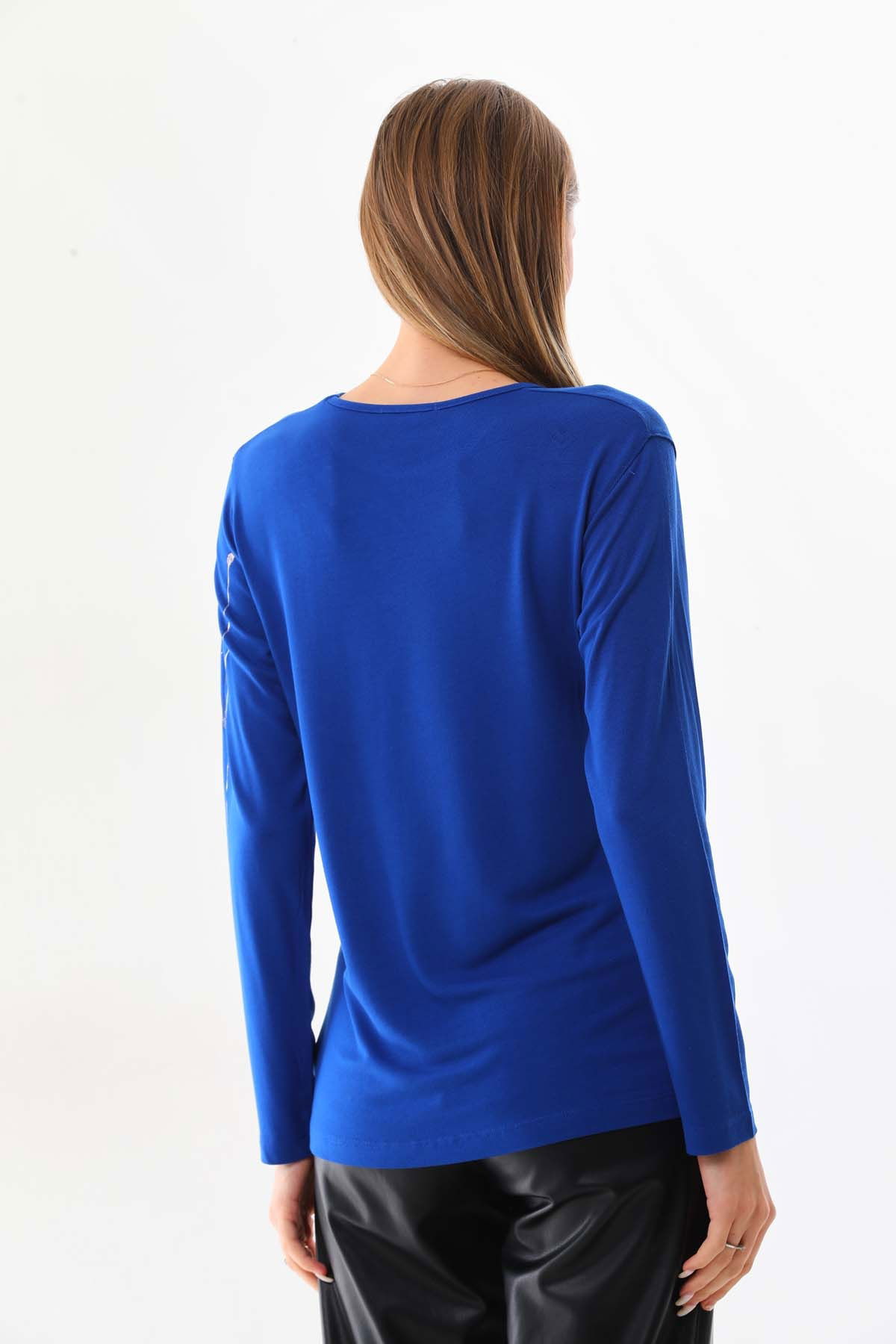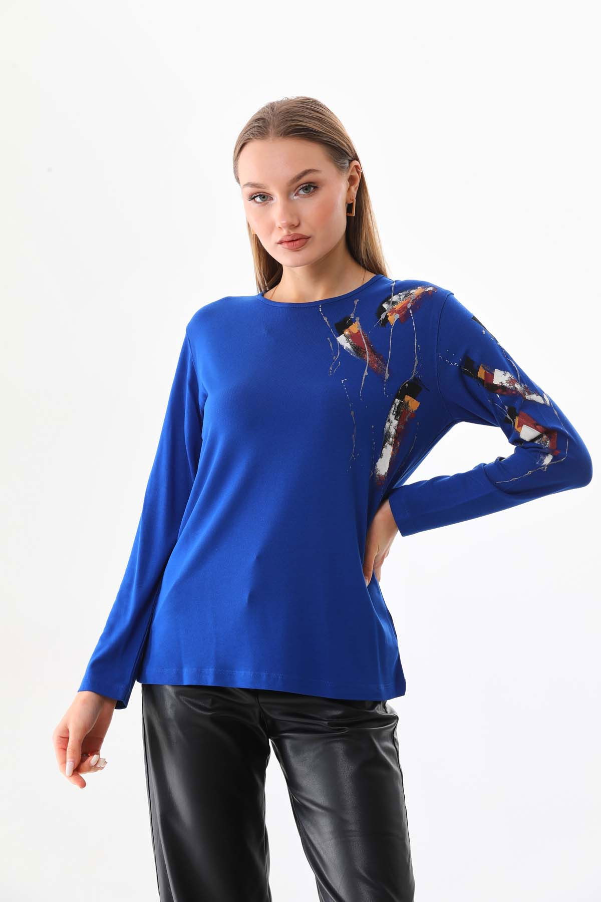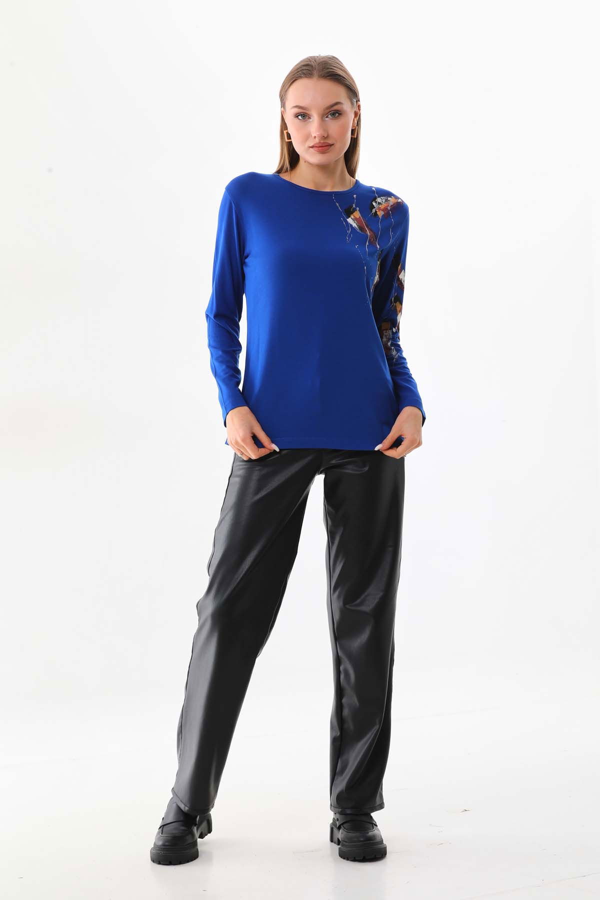 Sistas Kadın Desenli Bisiklet Yaka Uzun Kol Bluz 23598 Saks