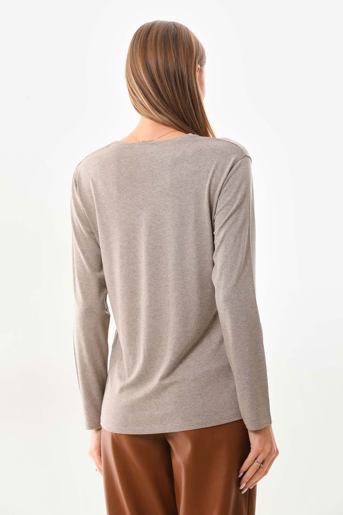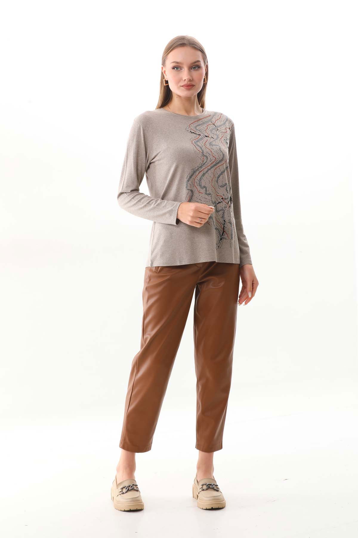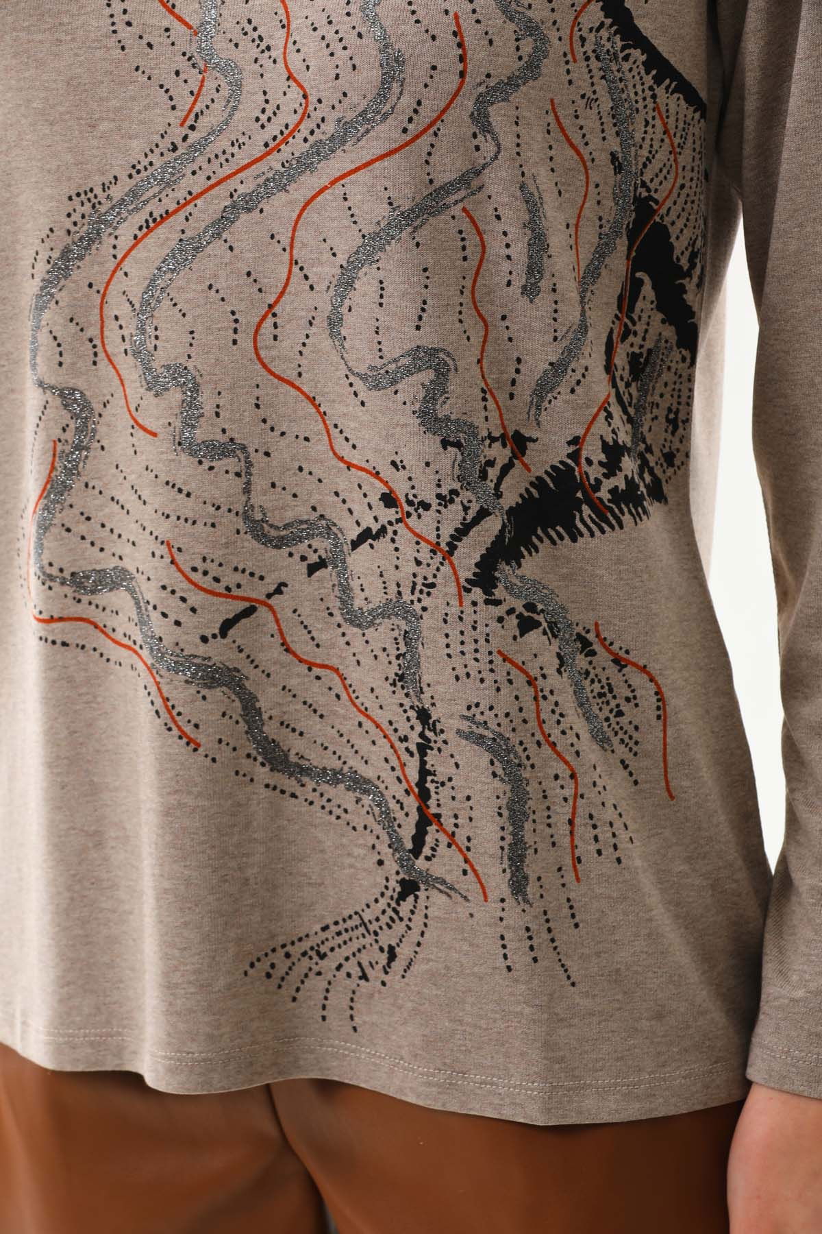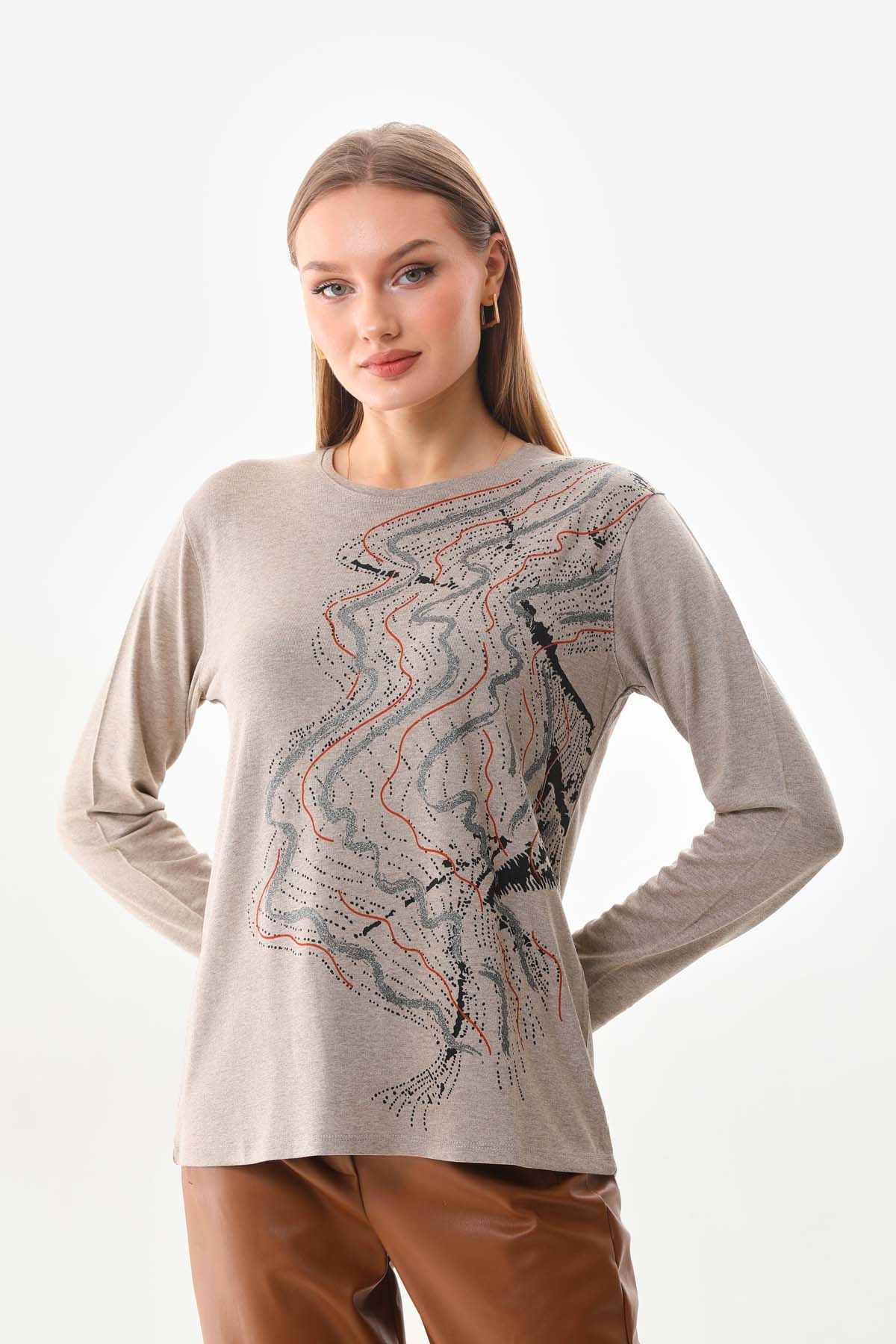 Sistas Kadın Desenli Bisiklet Yaka Uzun Kollu Bluz 23636 Keten