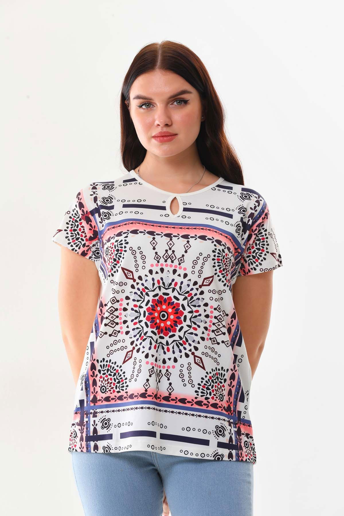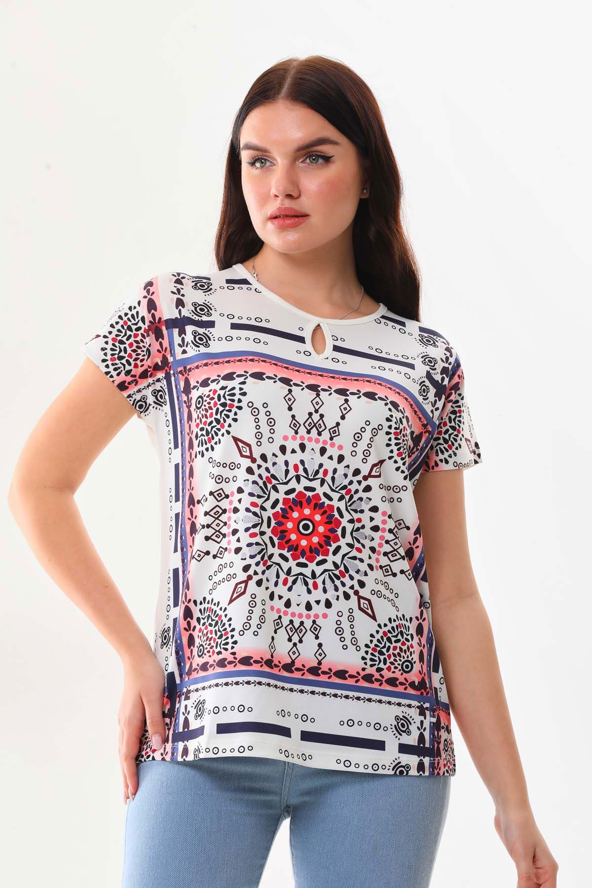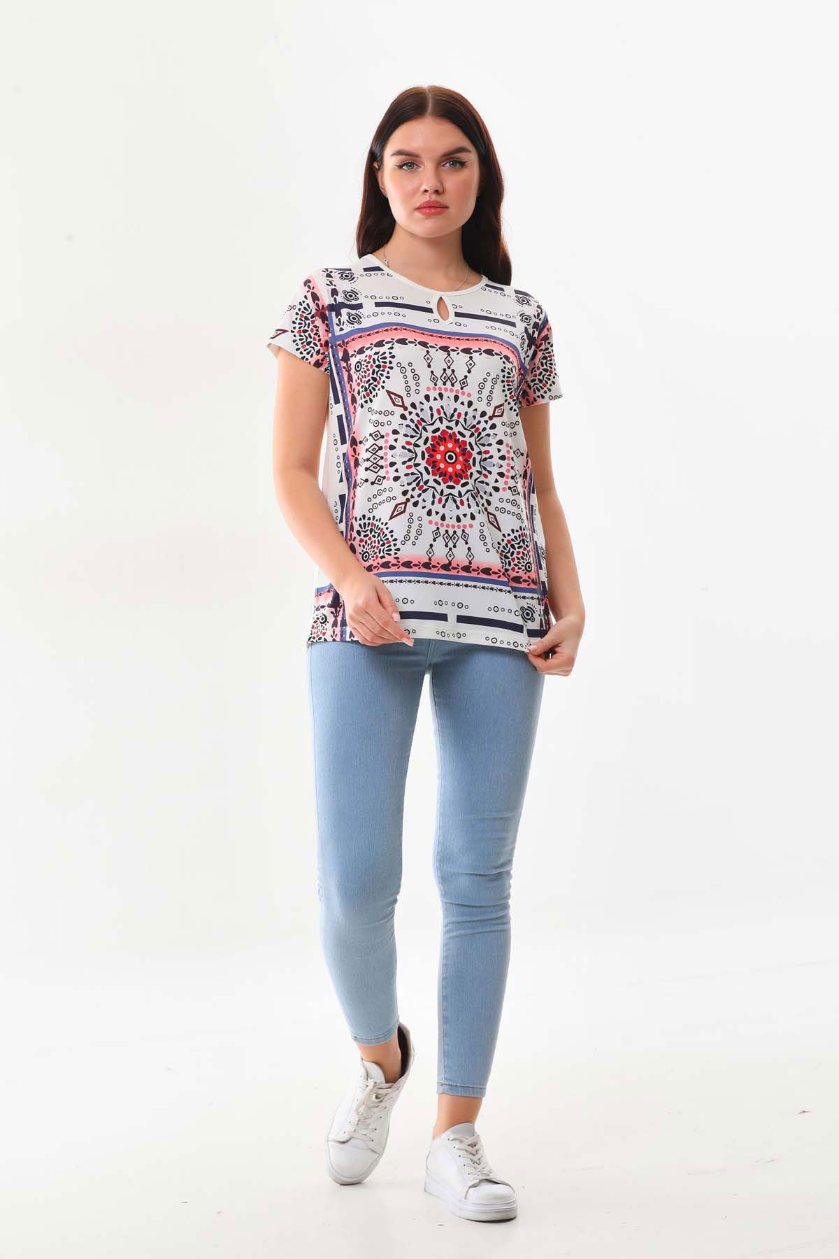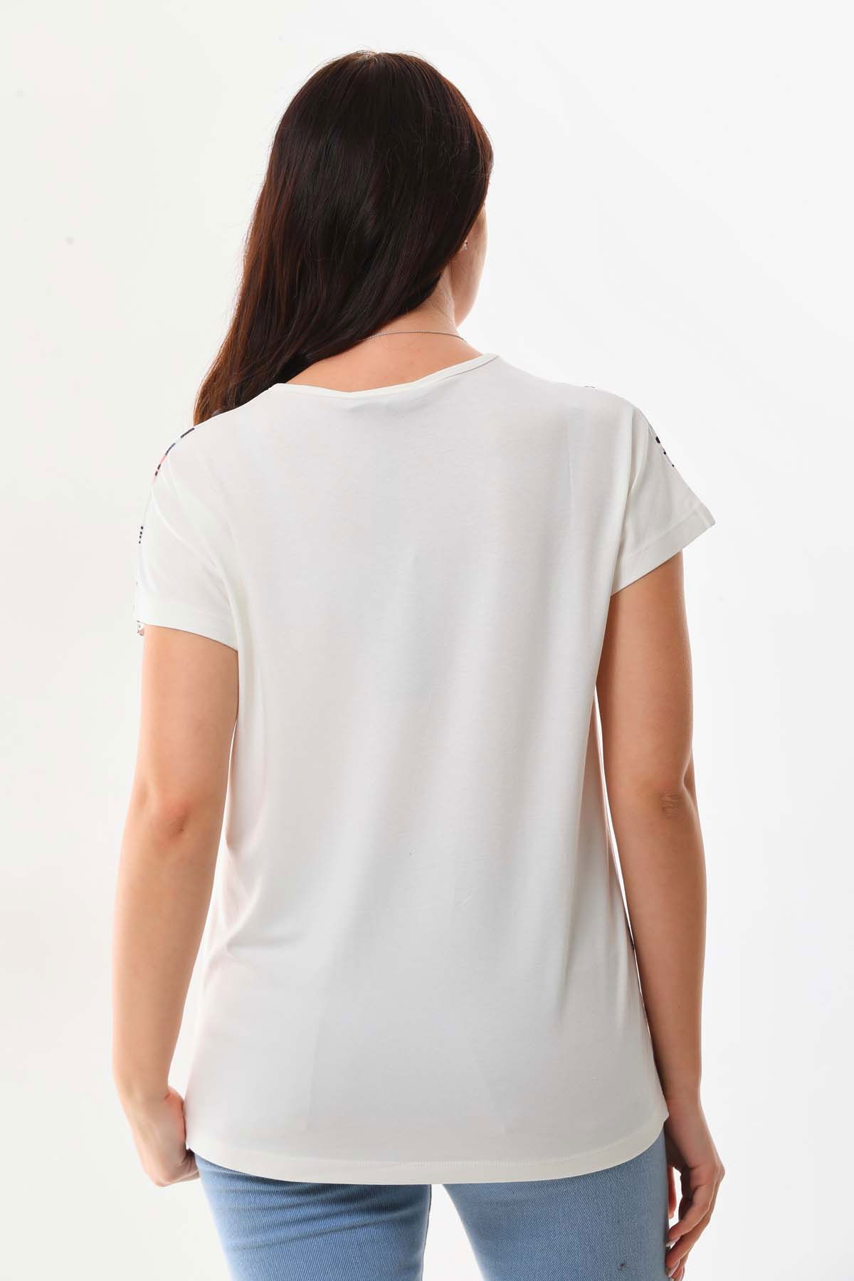 Sistas Kadın Desenli Pencere Detaylı Kısa Kol Bluz 23145 Ekru