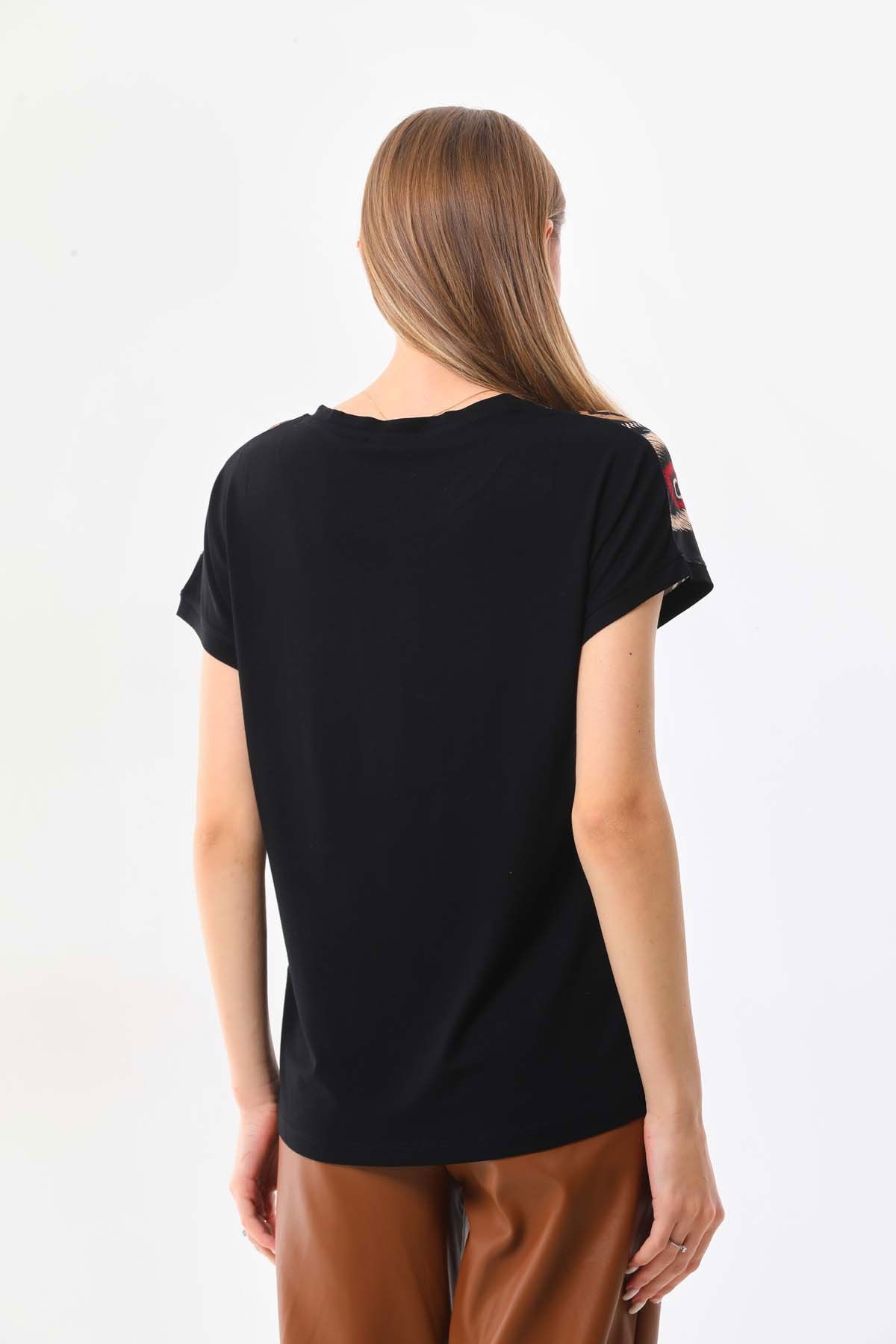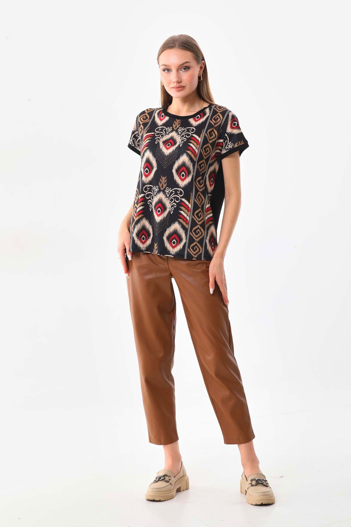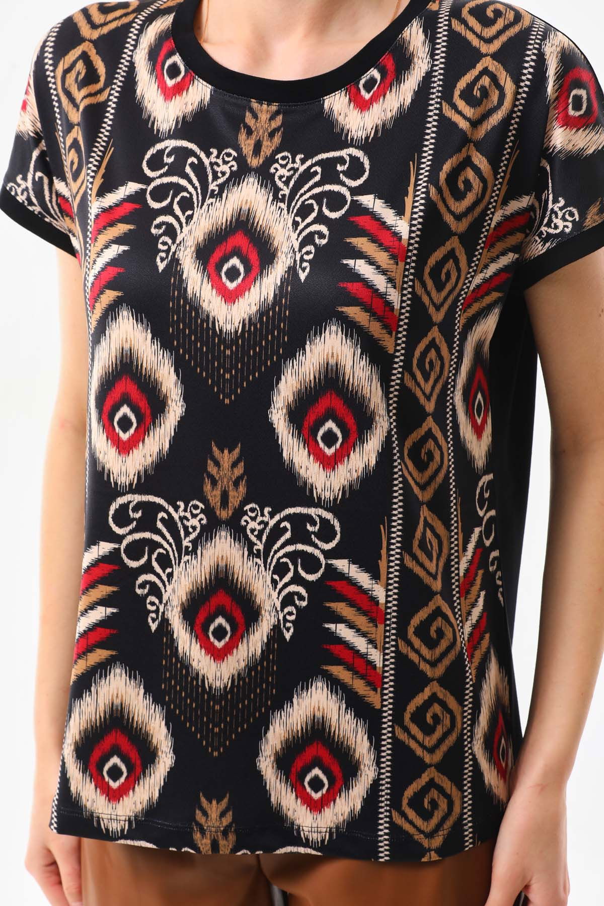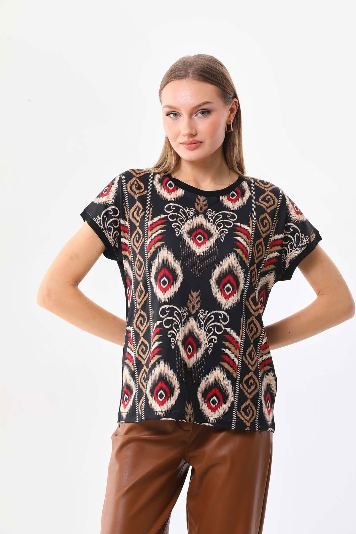 Sistas Kadın Etnik Desenli Kısa Kol Bluz 23170 Siyah