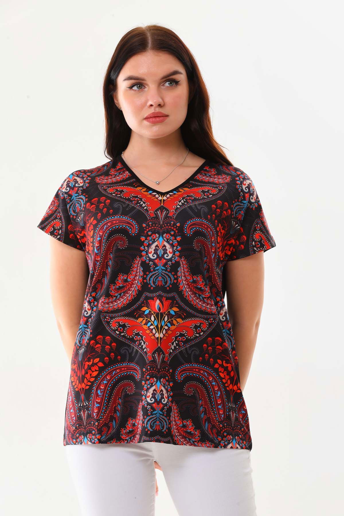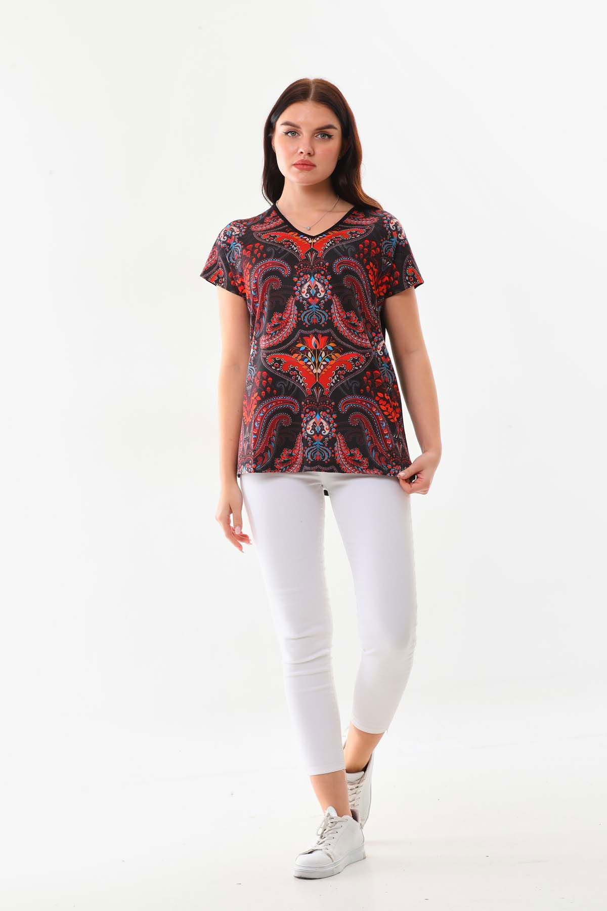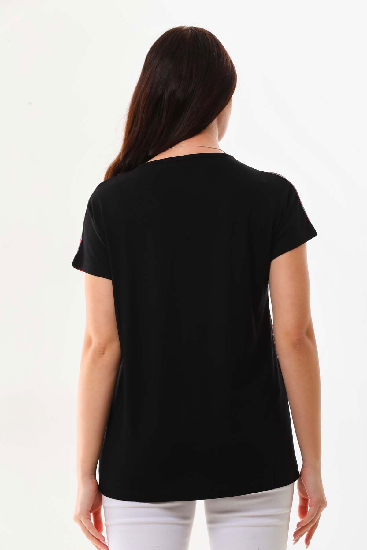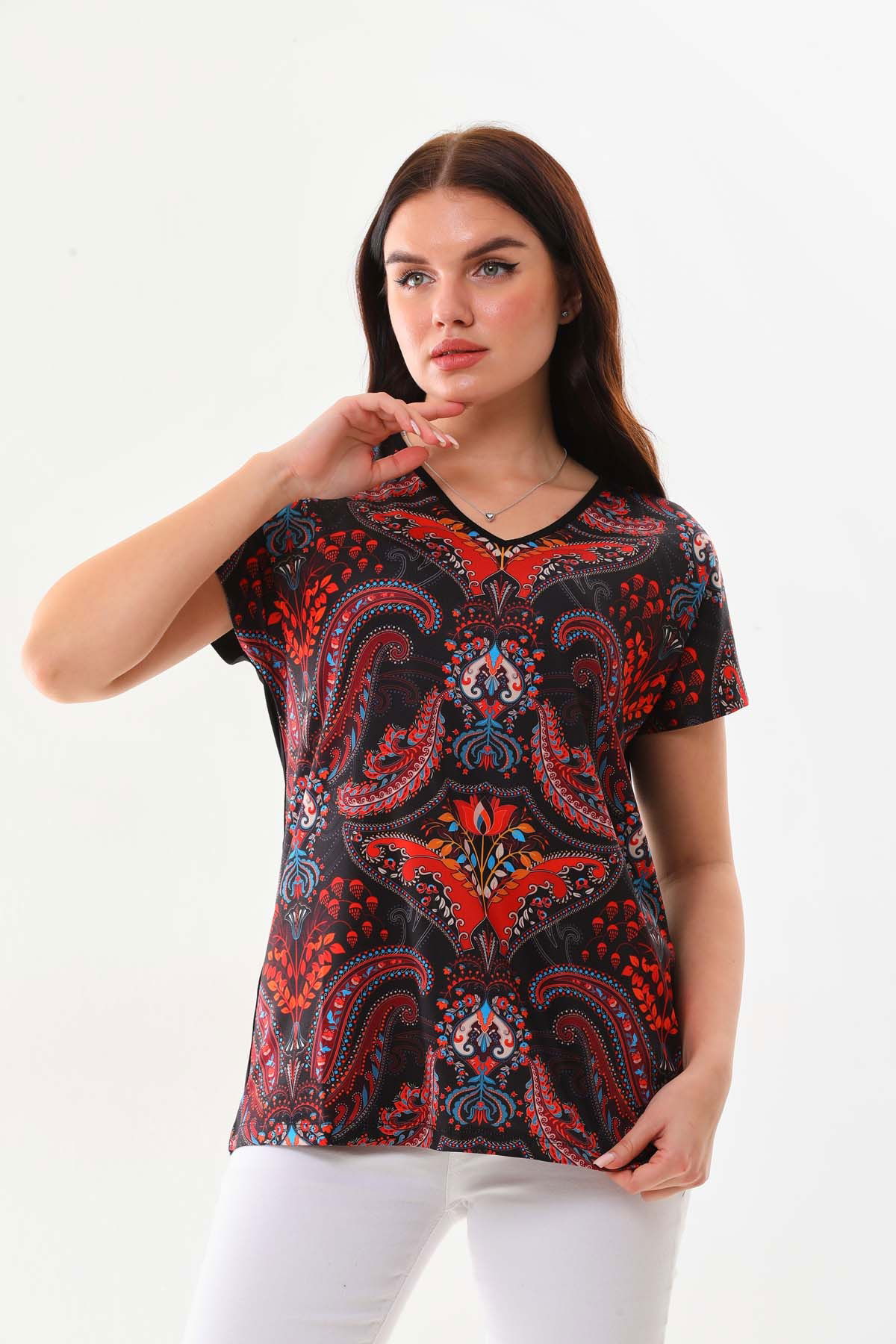 Detay: Desenli, kısa kol bluz;