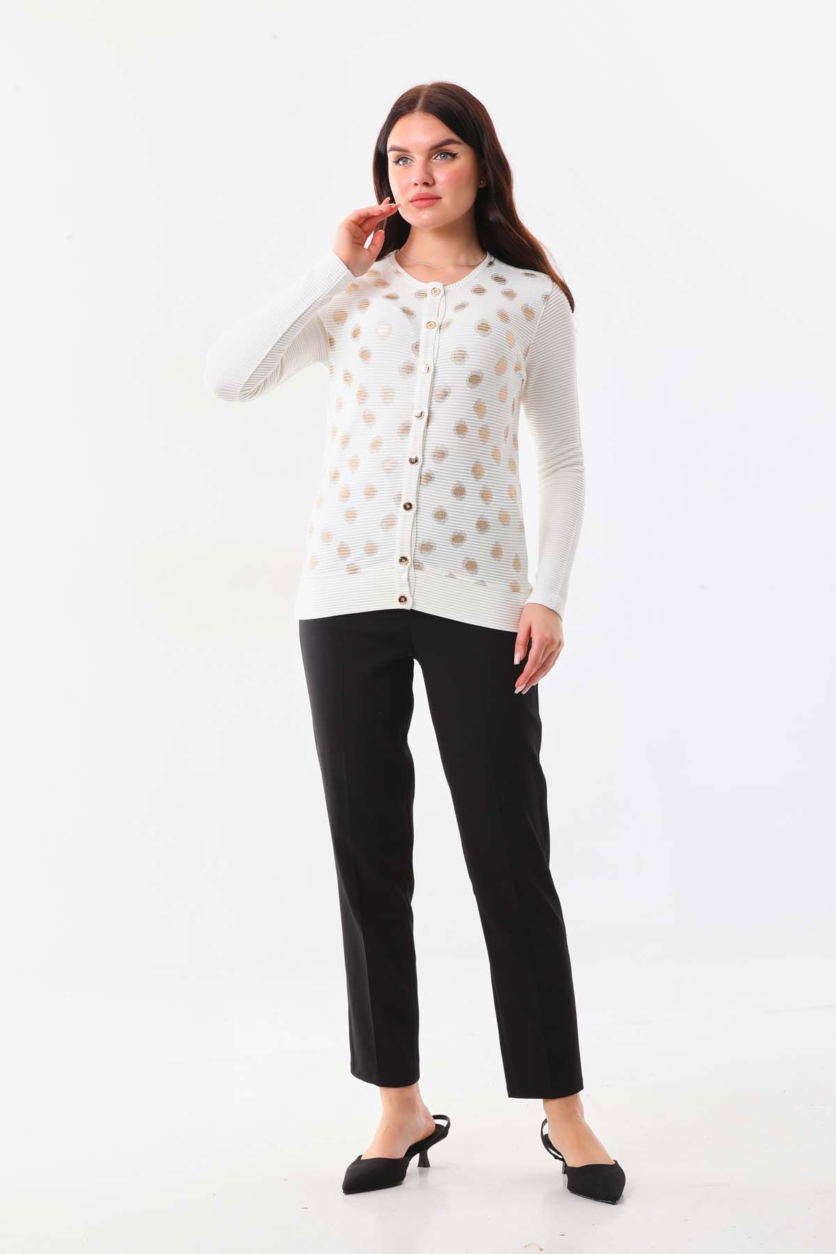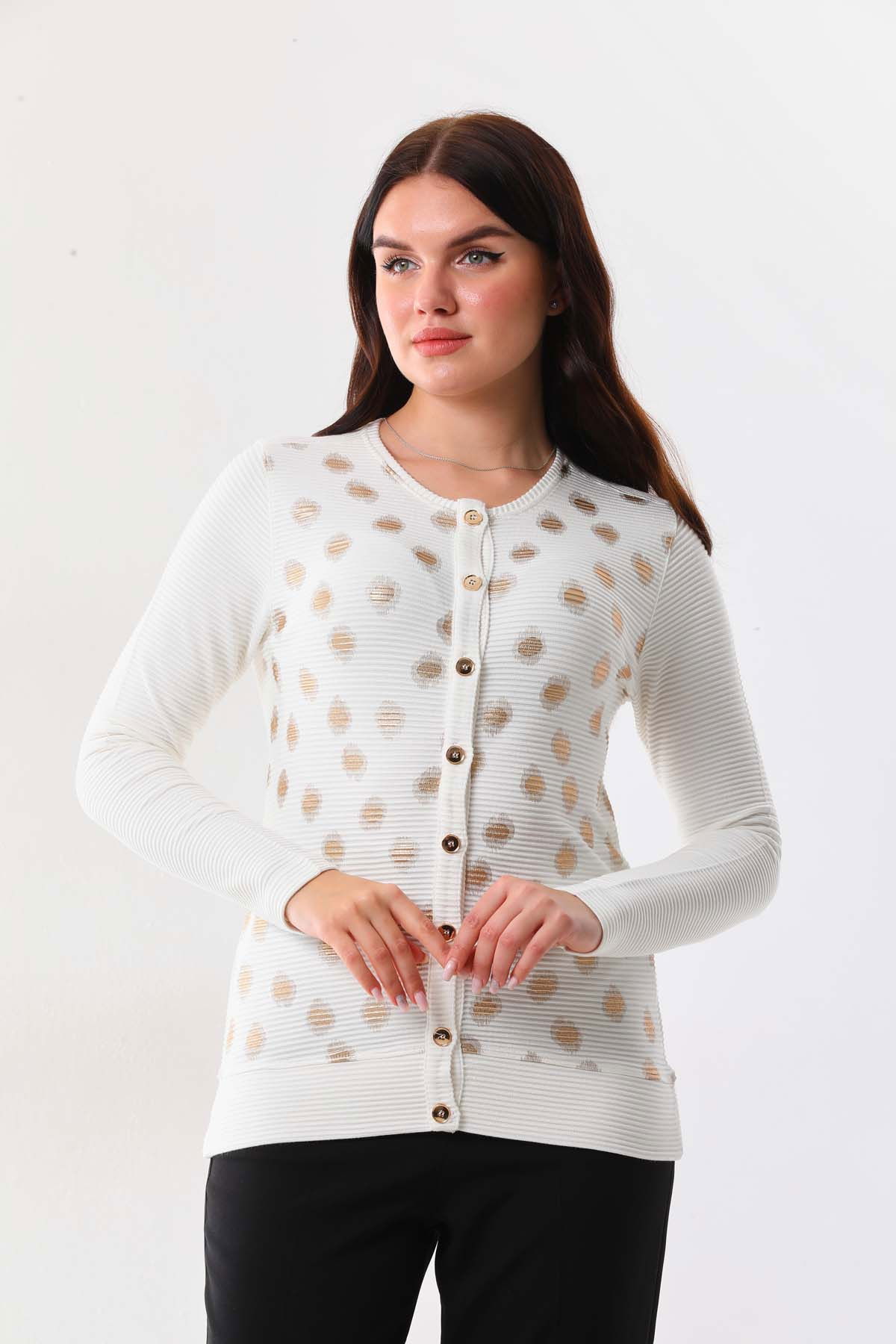 Sistas Kadın Gold Puantiyeli Uzun Kol Hırka 23977 Ekru