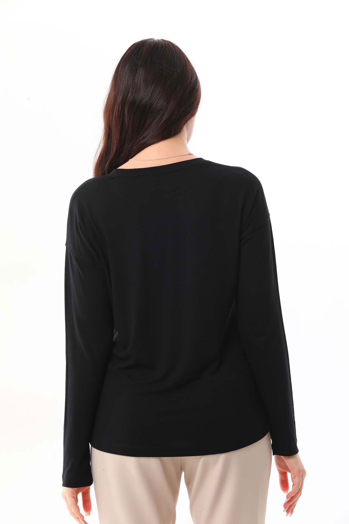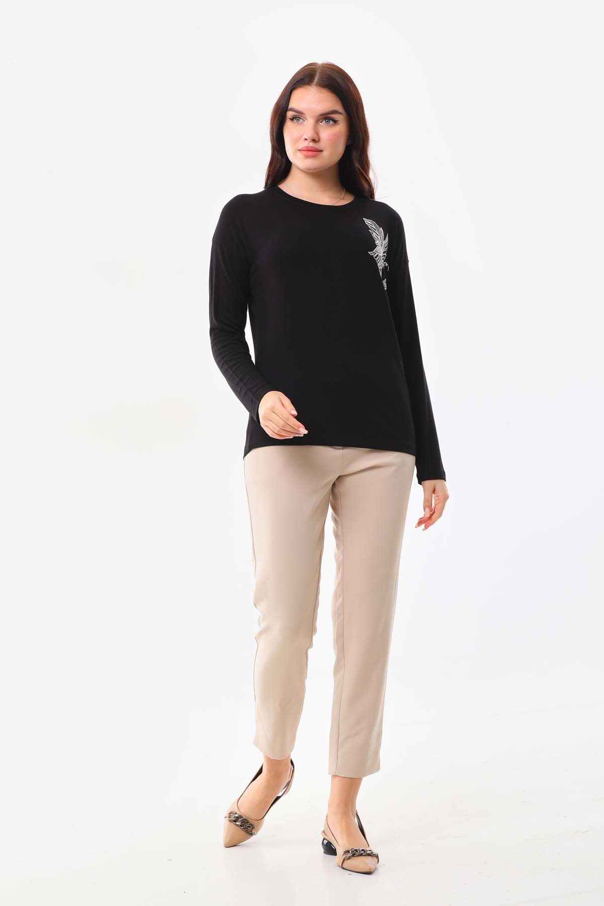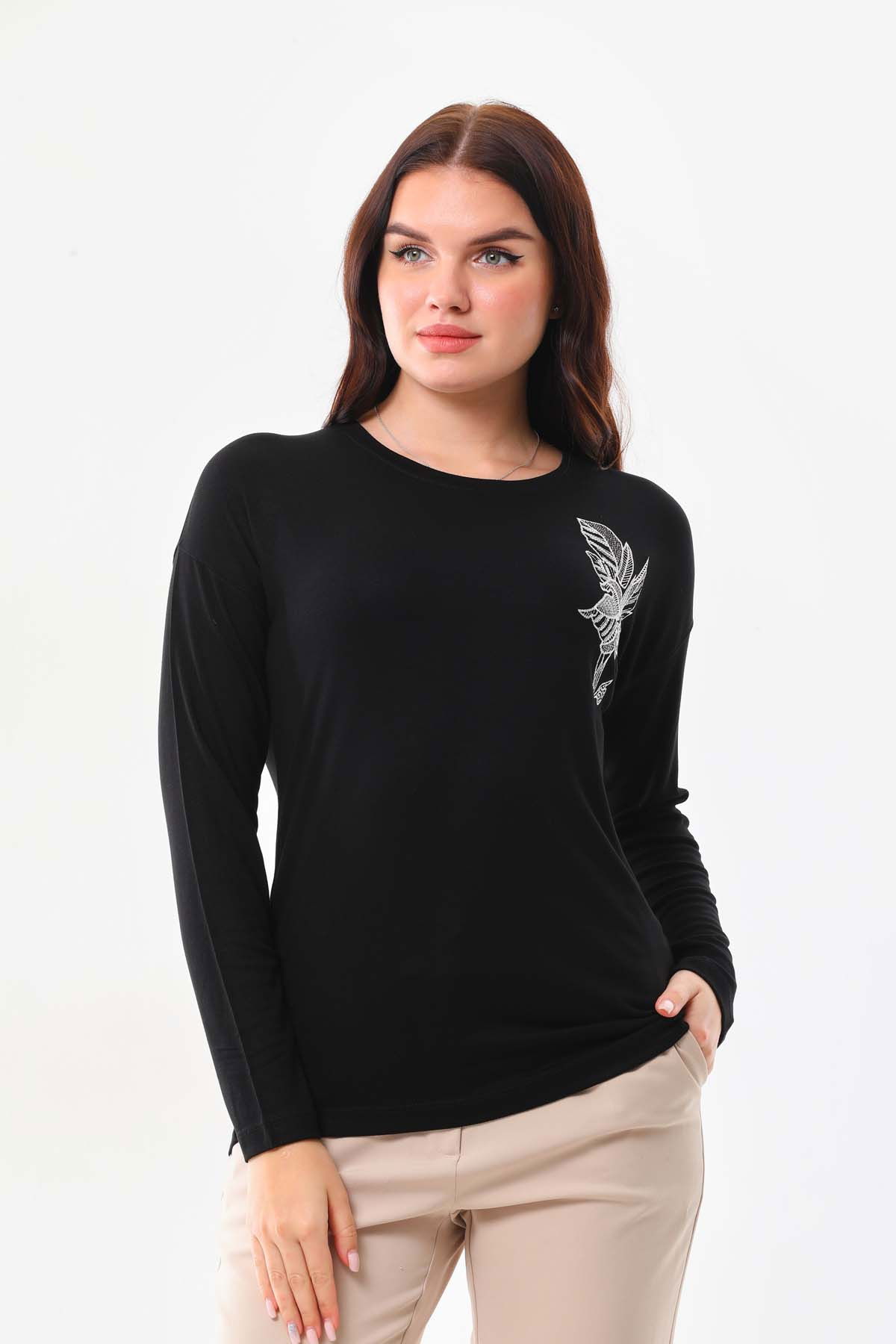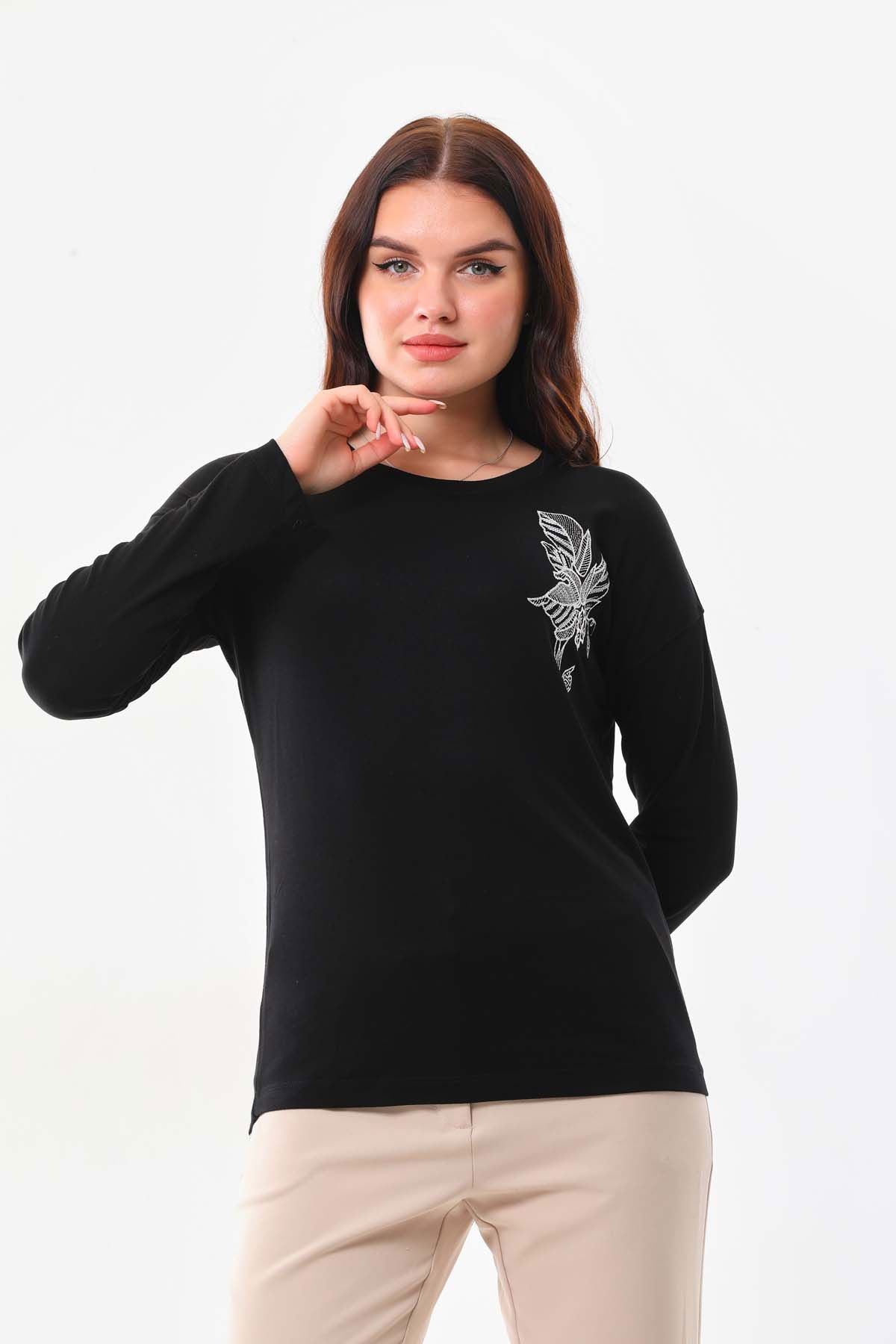 Sistas Kadın İşleme Detaylı Uzun Kol Bluz 23640 Siyah
