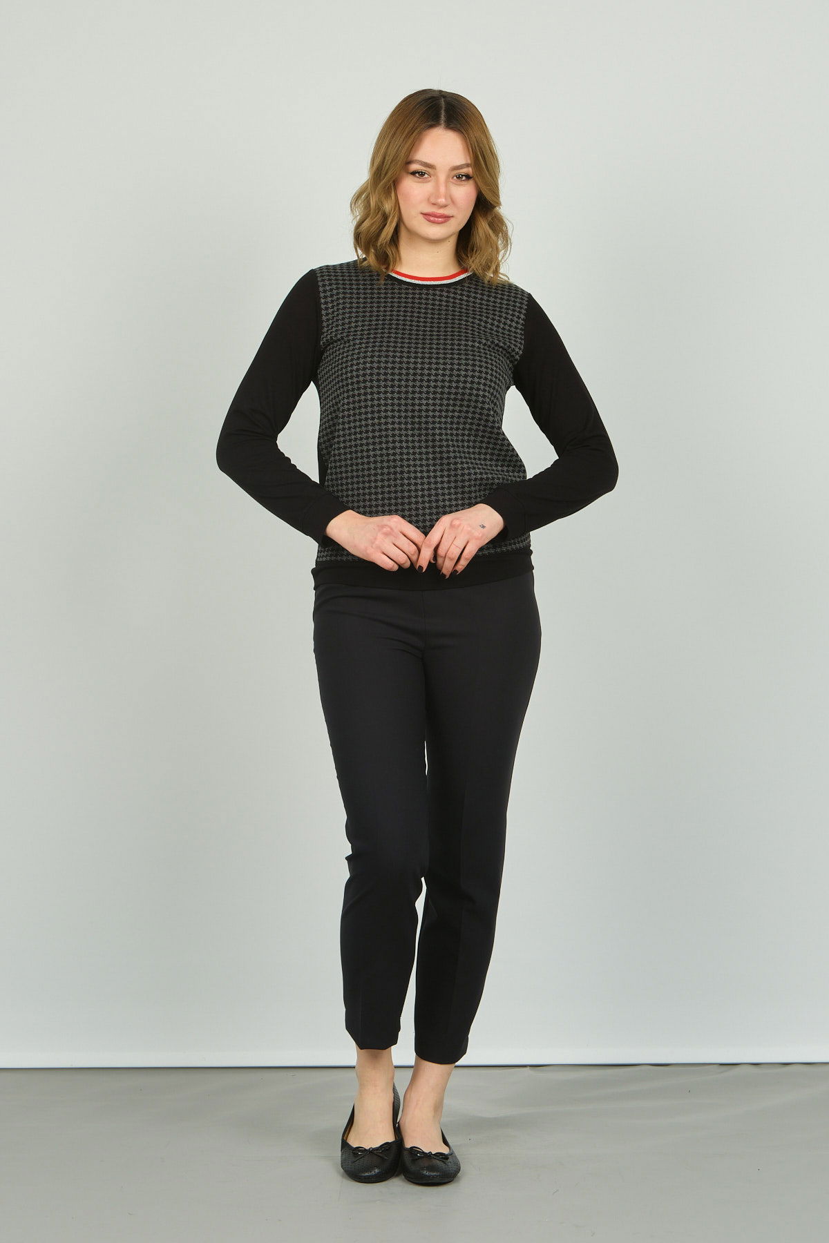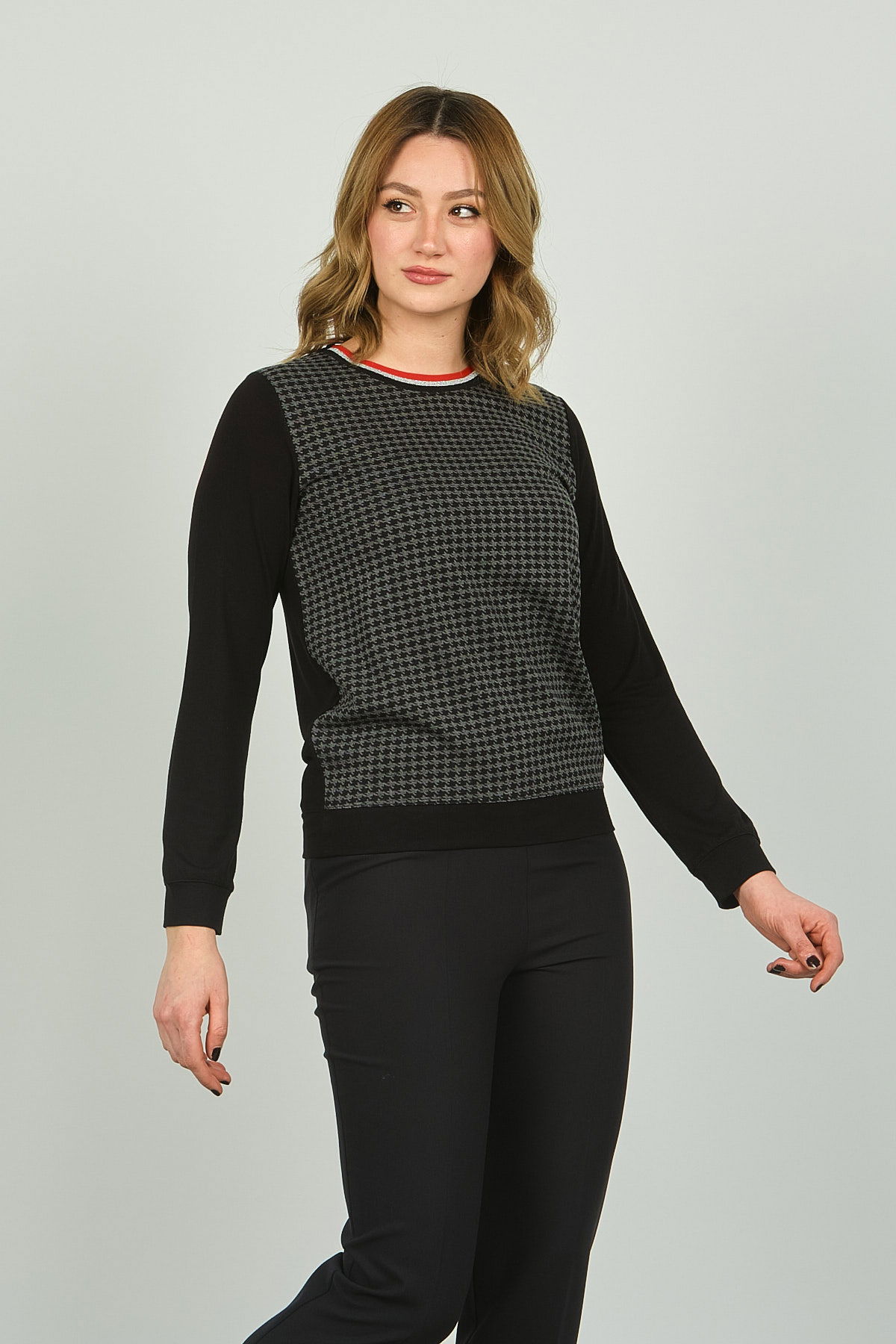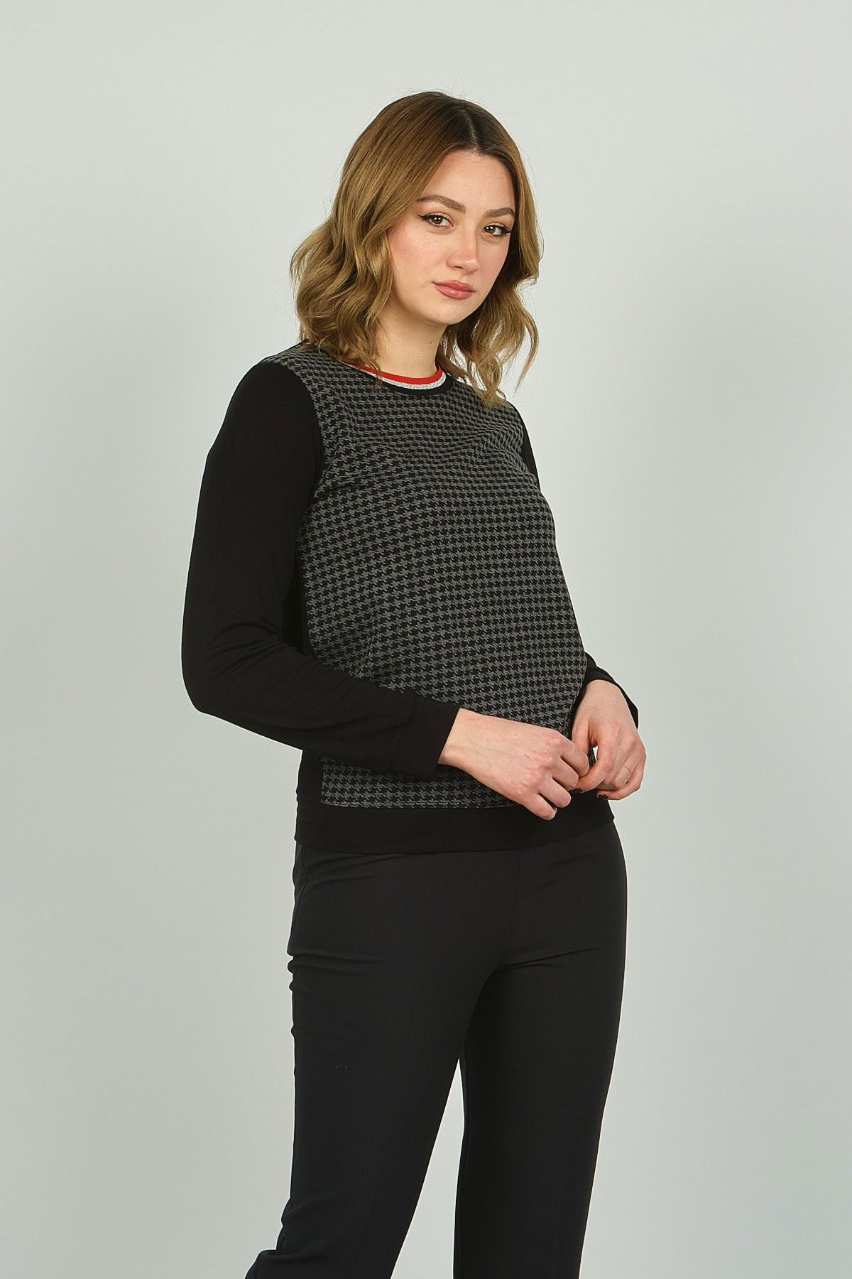 Detay: Uzun kol, desenli, bisiklet yaka bluz;