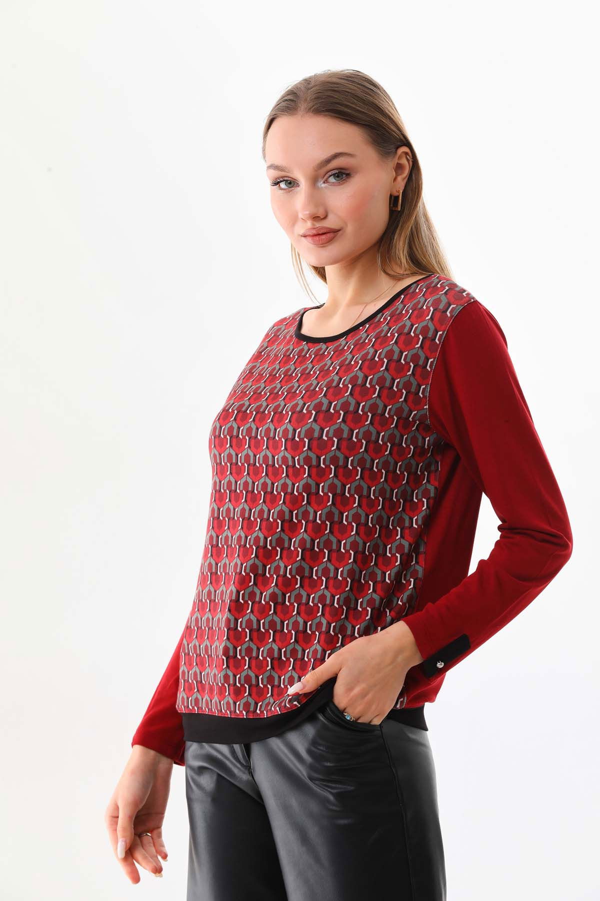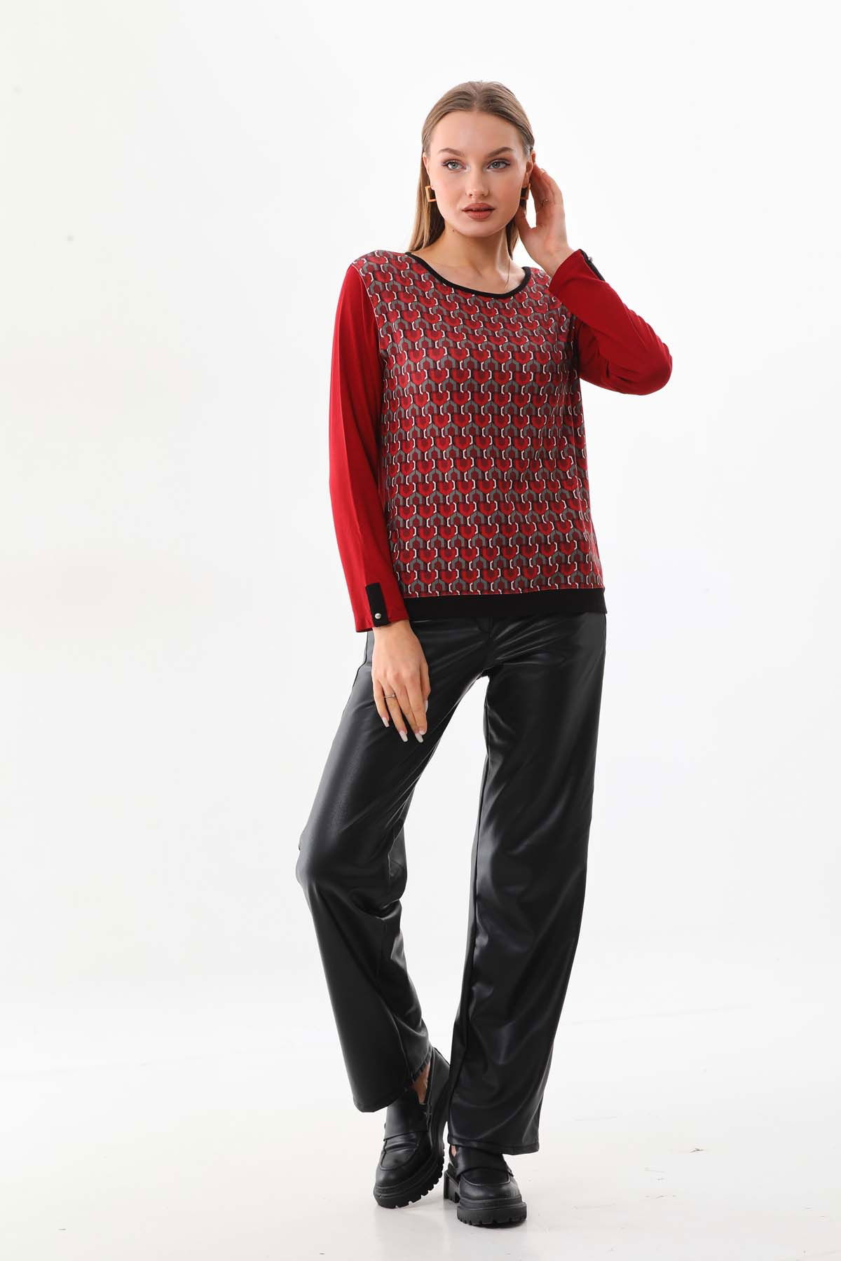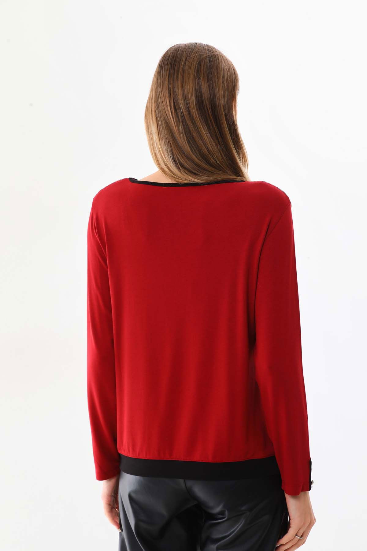 Sistas Kadın Kol Düğme Detaylı Uzun Kol Bluz 23542 Bordo