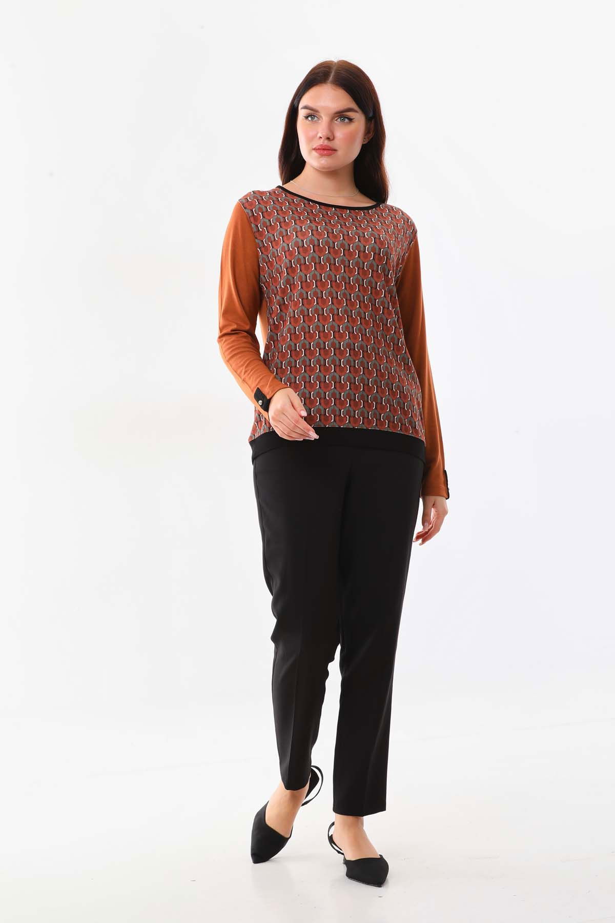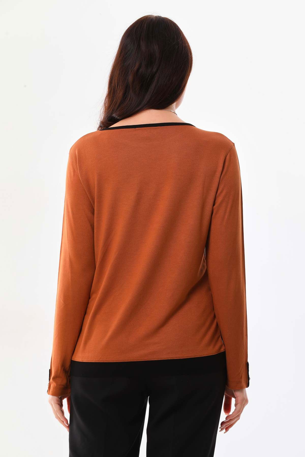 Sistas Kadın Kol Düğme Detaylı Uzun Kol Bluz 23542 Camel