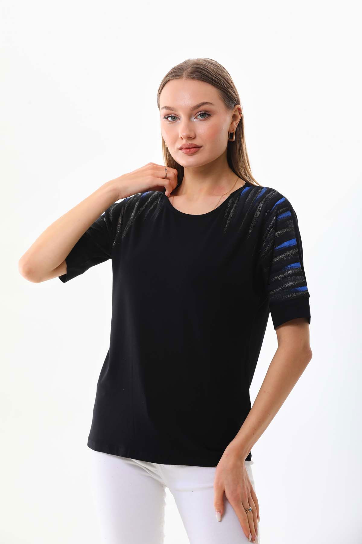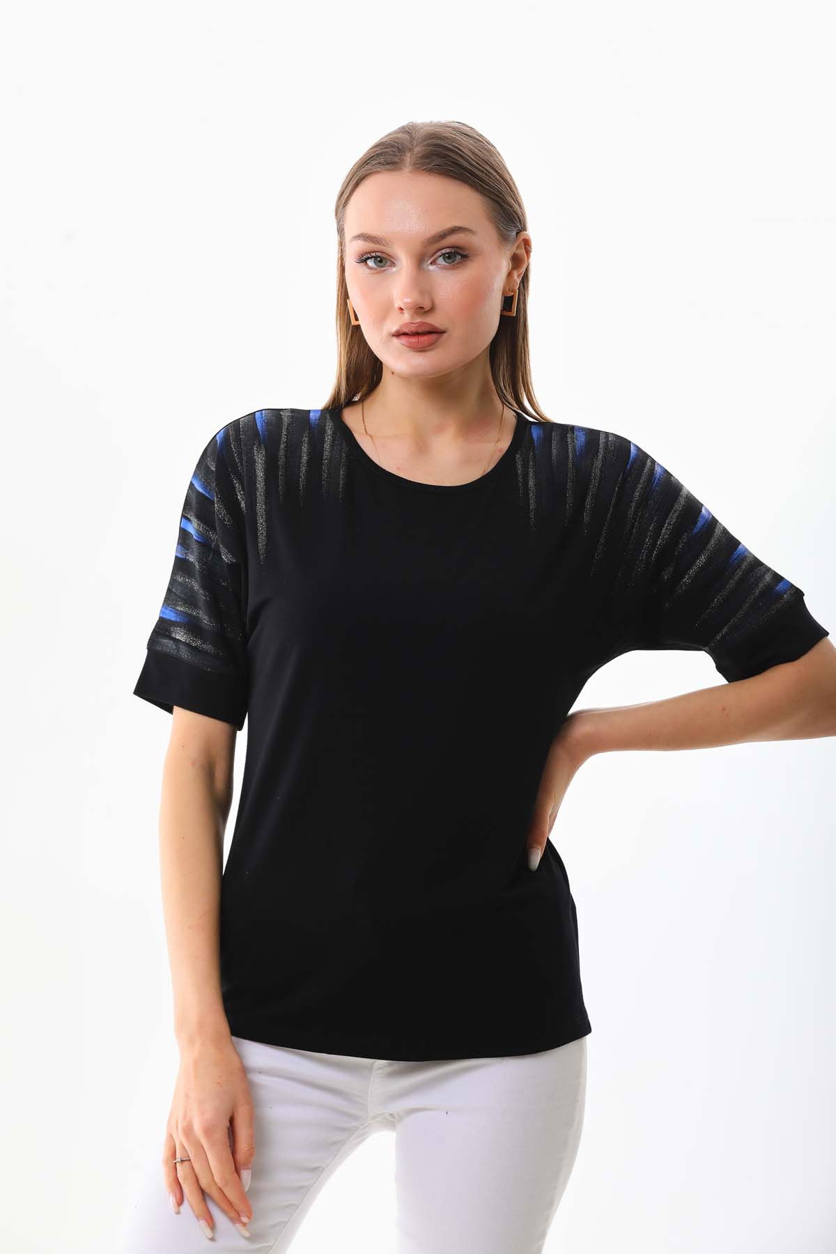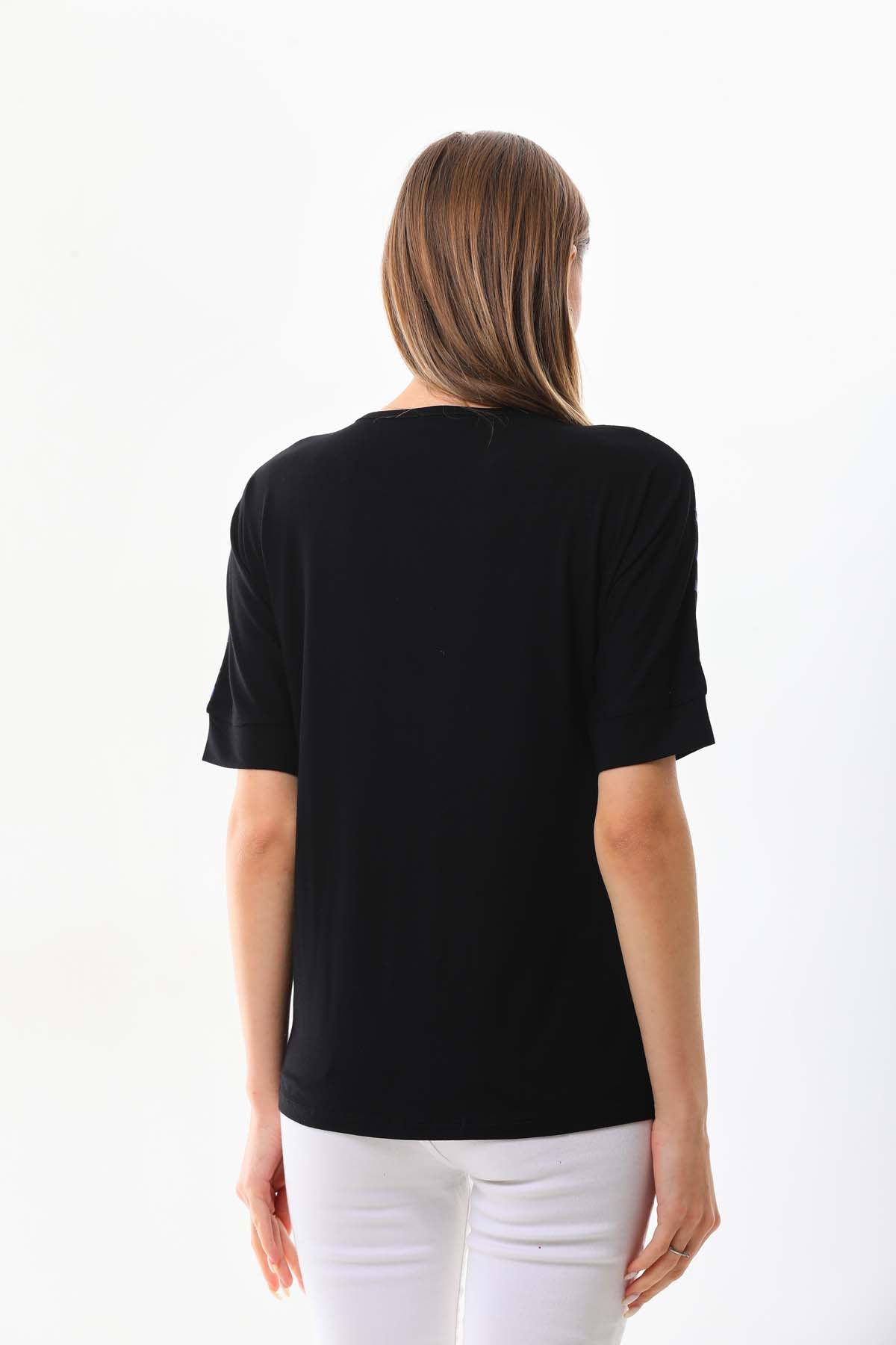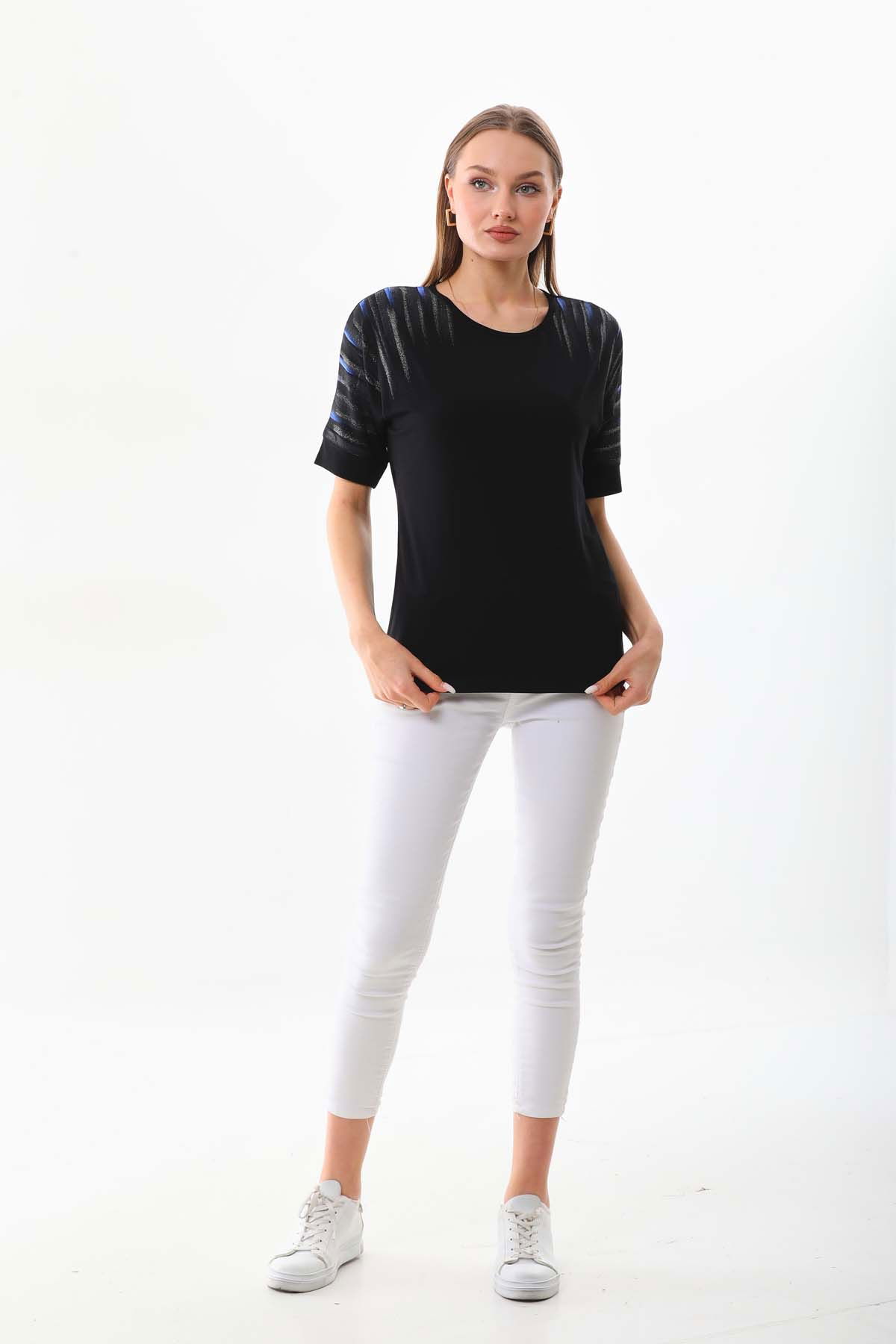 Detay: Kısa kol, bisiklet yaka bluz;