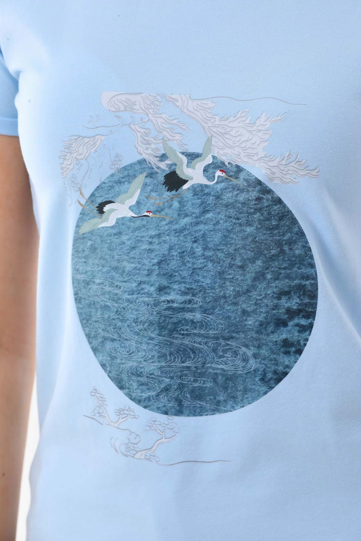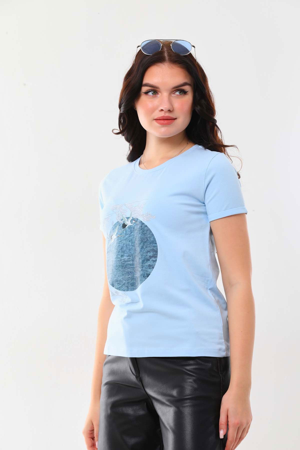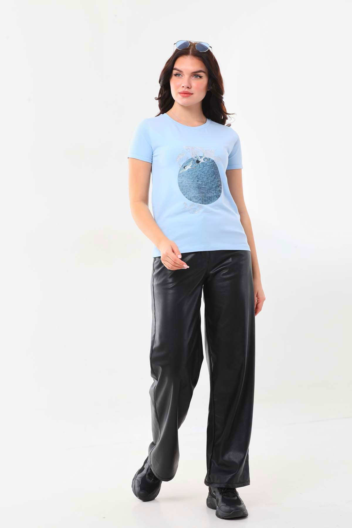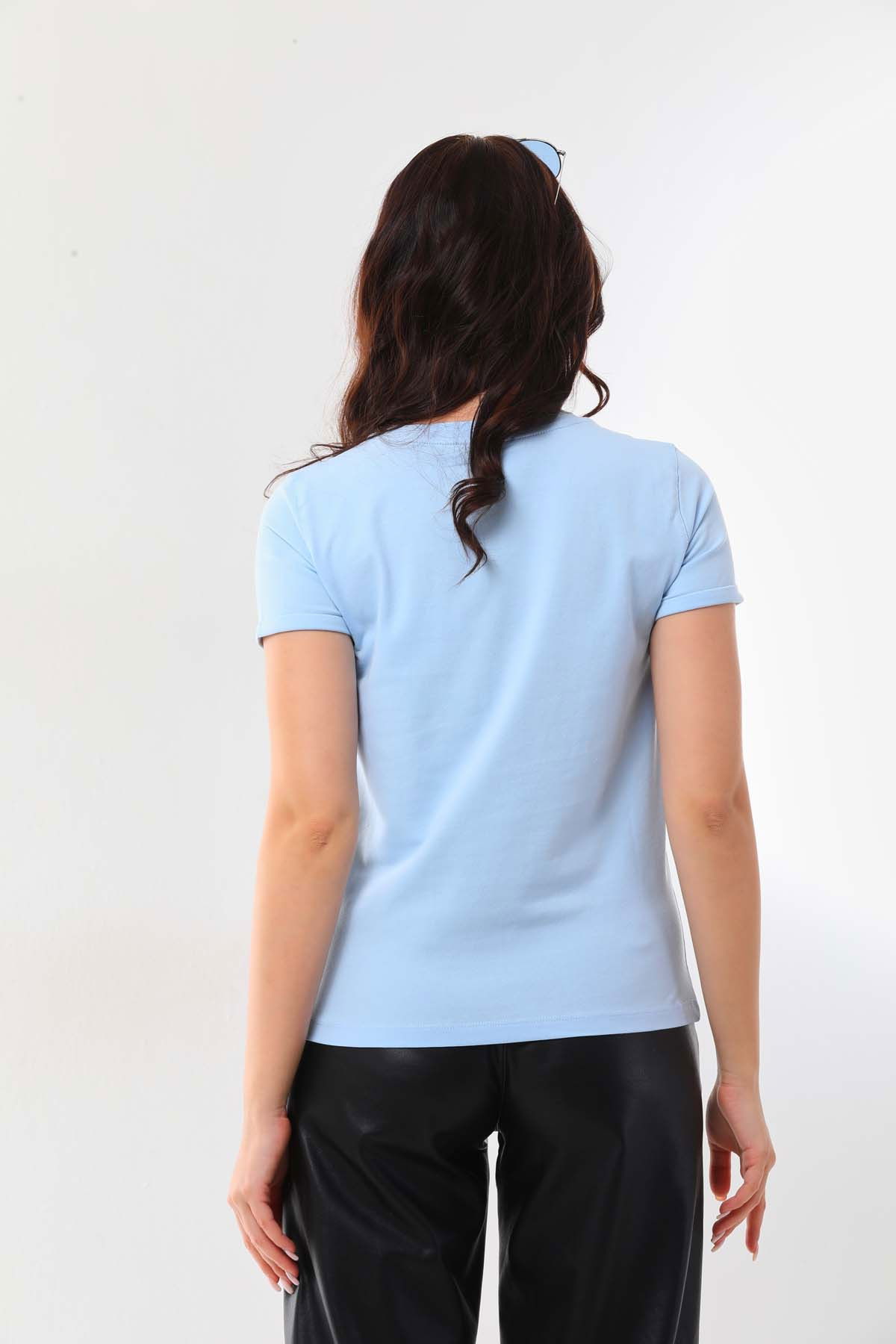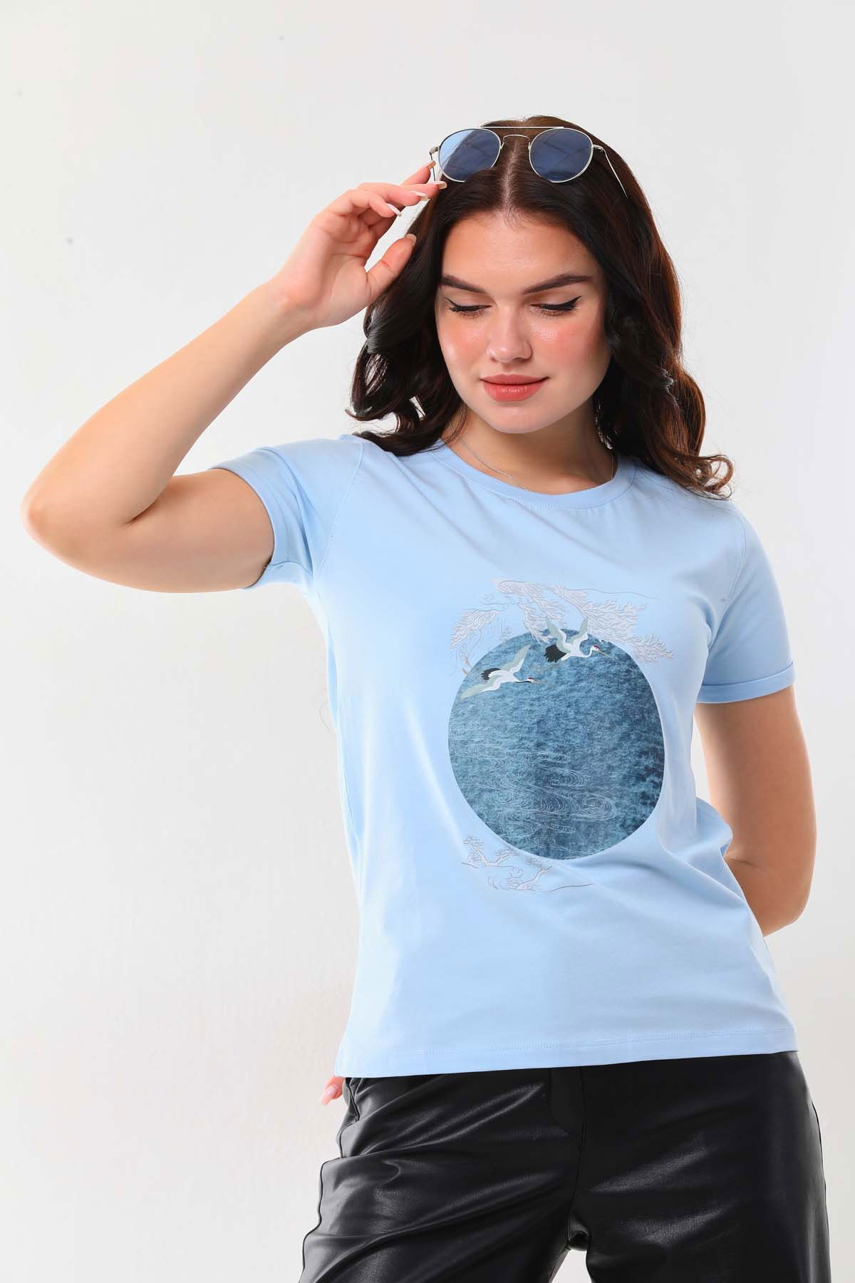 Sistas Kadın Pamuklu Baskı Detaylı Kısa Kol Bluz 23014 Mavi