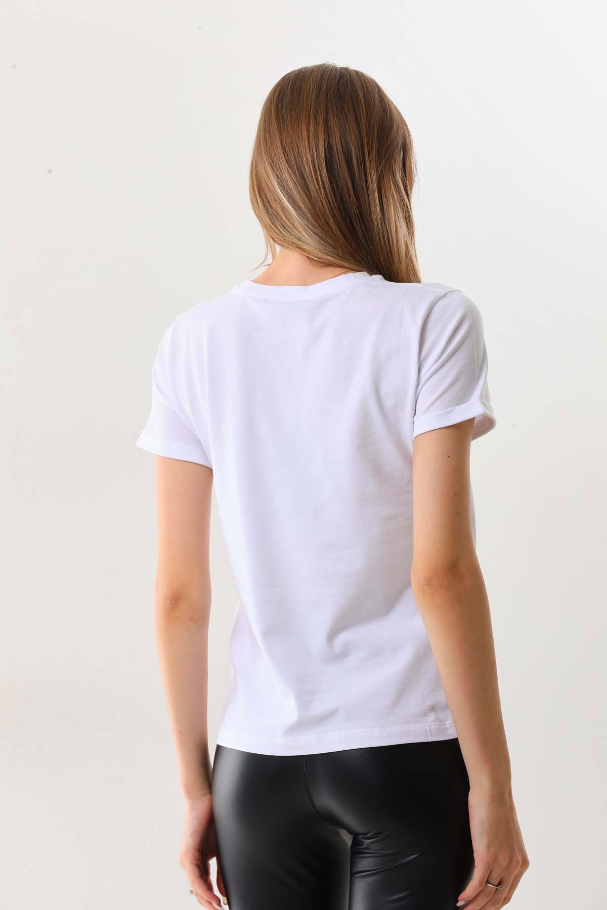 Detay: Kısa kol, bisiklet yaka bluz;
