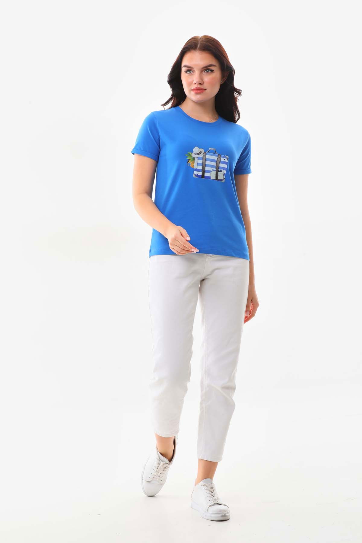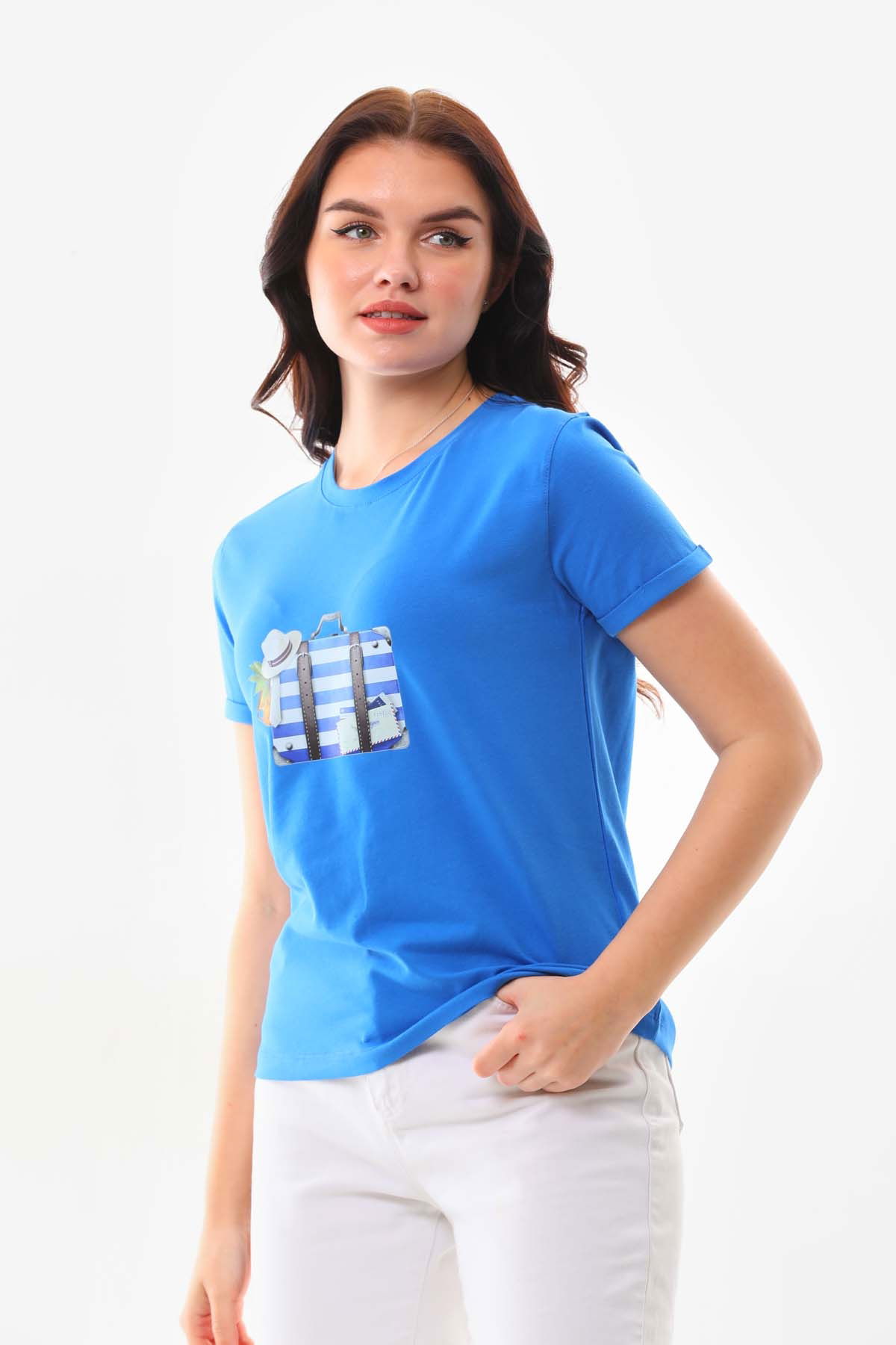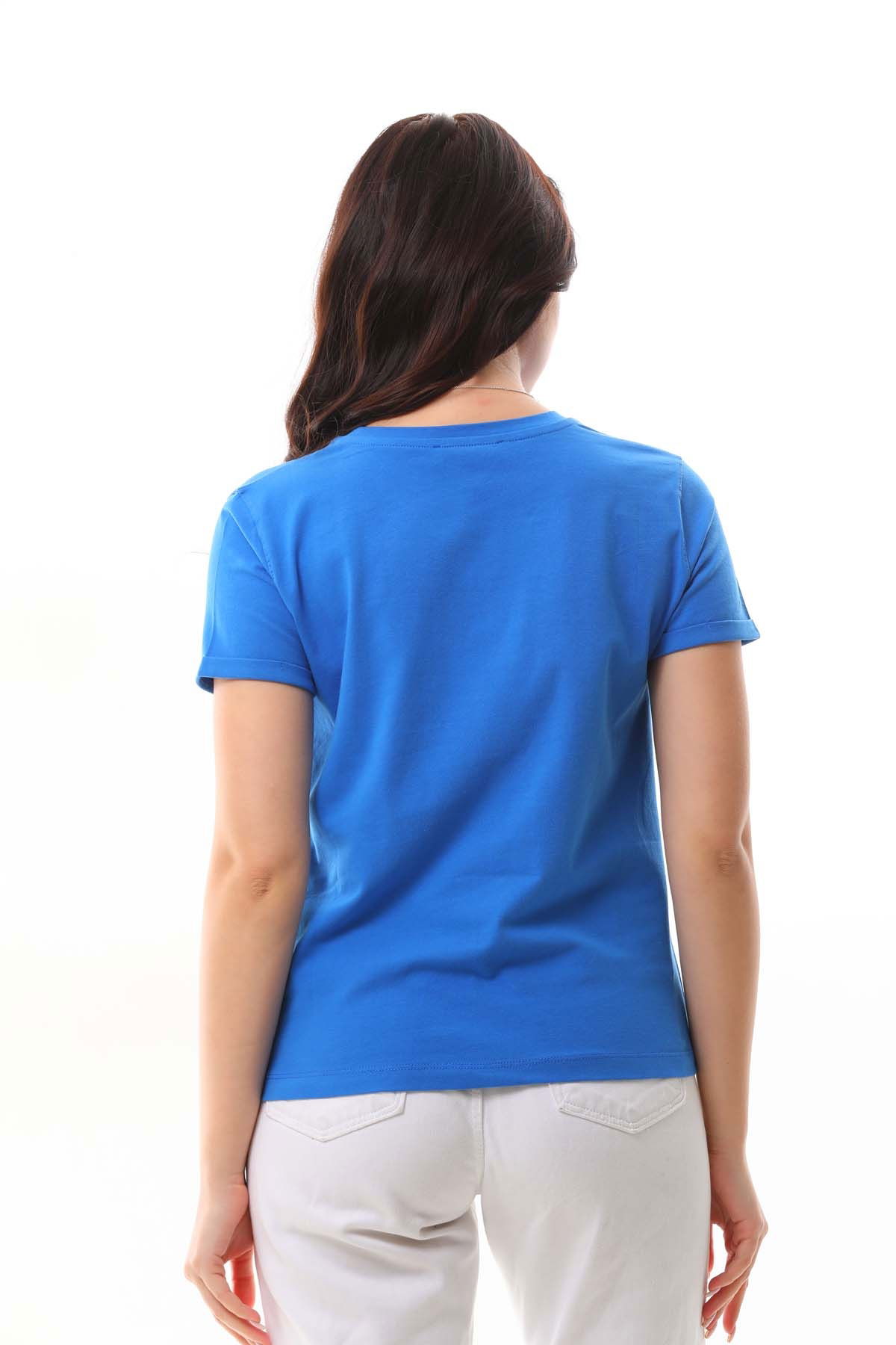 Sistas Kadın Pamuklu Resim Detaylı Kısa Kol Bluz 23097 Saks