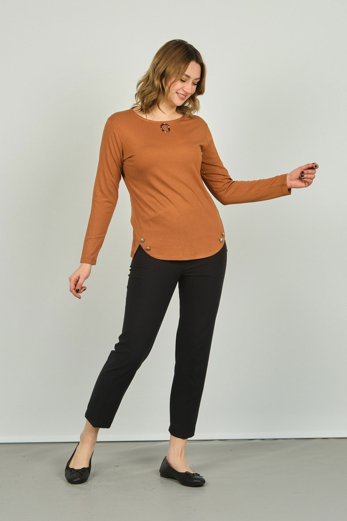 Sistas Kadın Süs Düğmeli Uzun Kol Bluz 23538 Camel