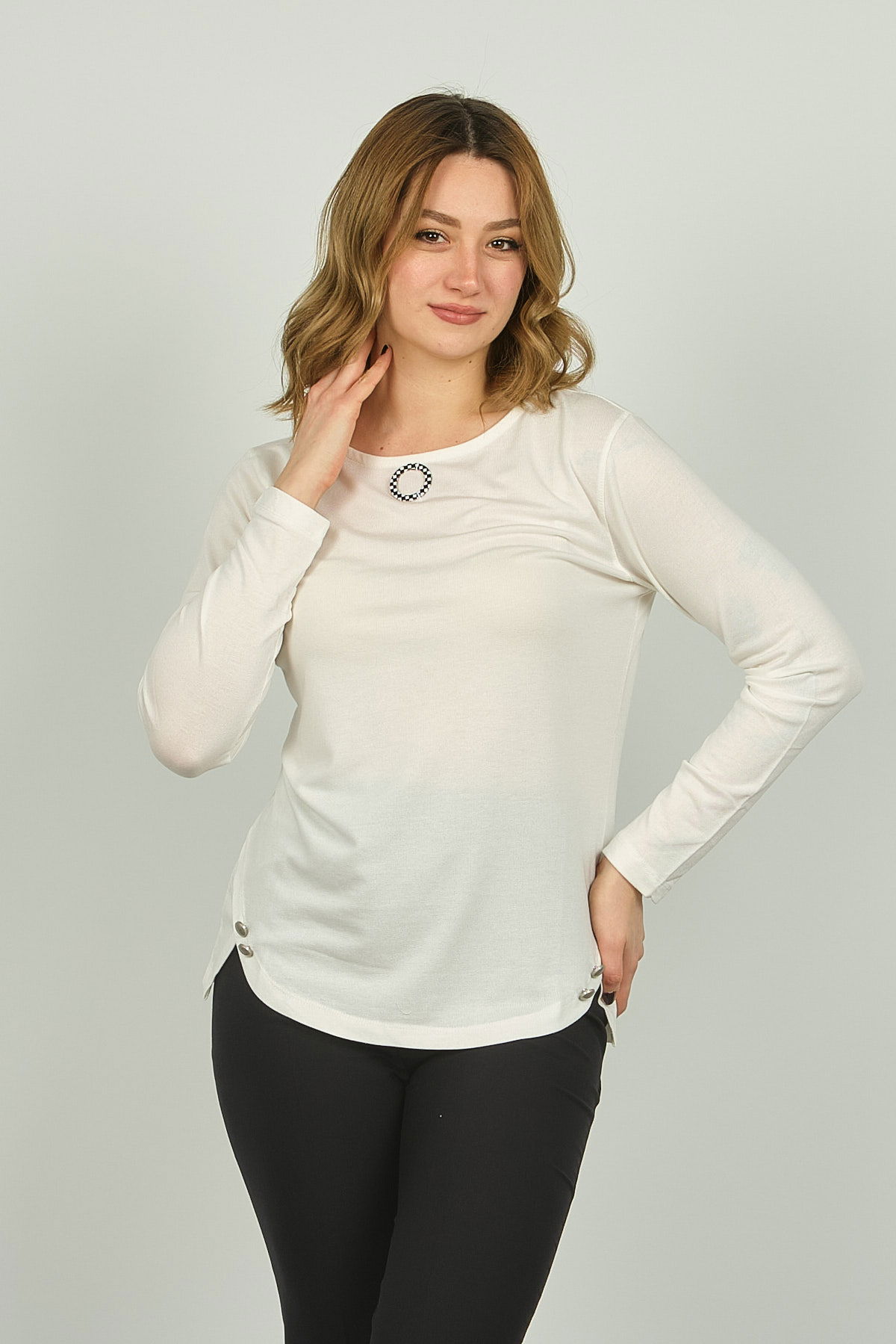 Sistas Kadın Süs Düğmeli Uzun Kol Bluz 23538 Ekru
