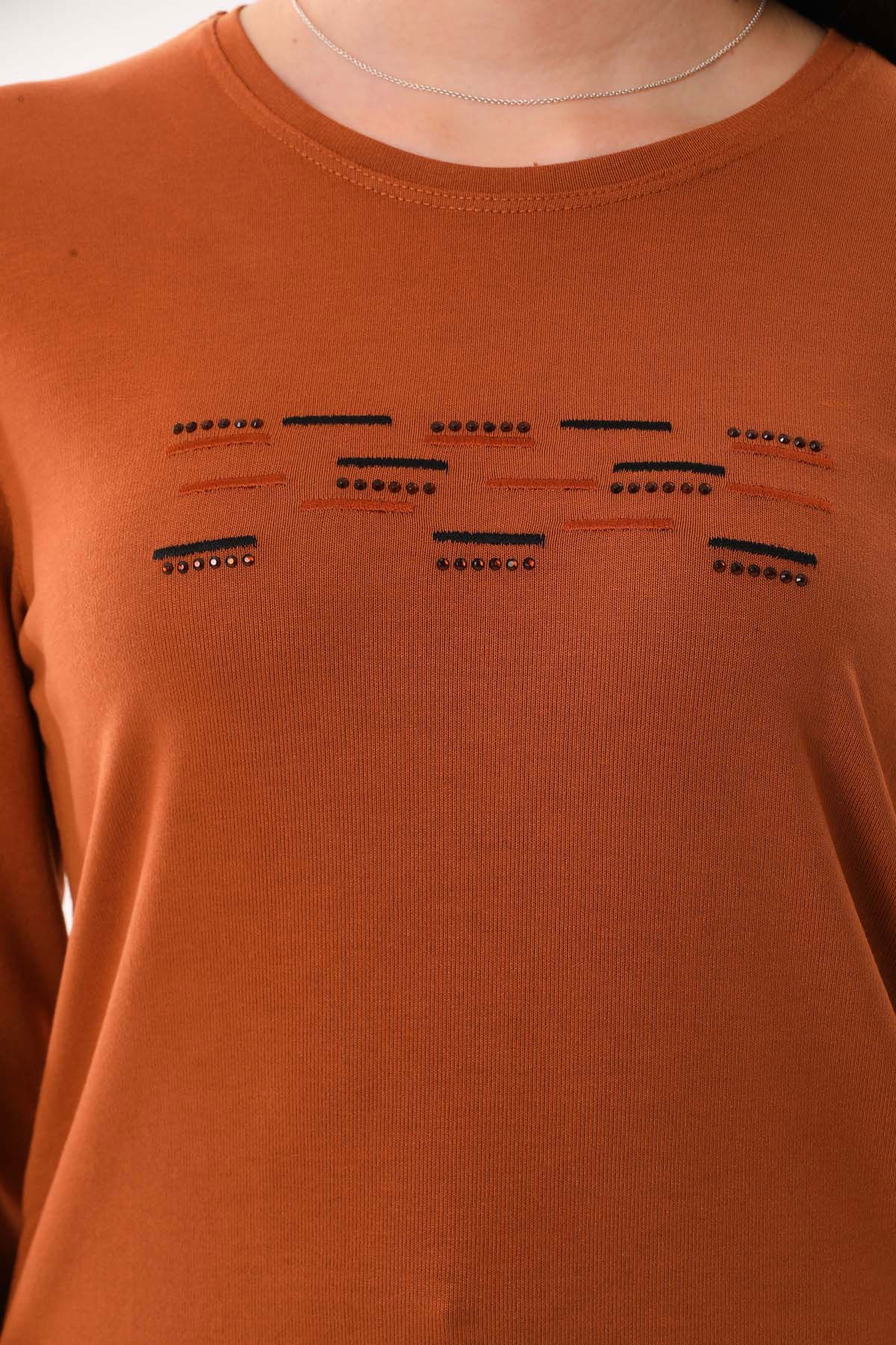 Sistas Kadın Taş Süsleme Detaylı Uzun Kol Bluz 23567 Camel