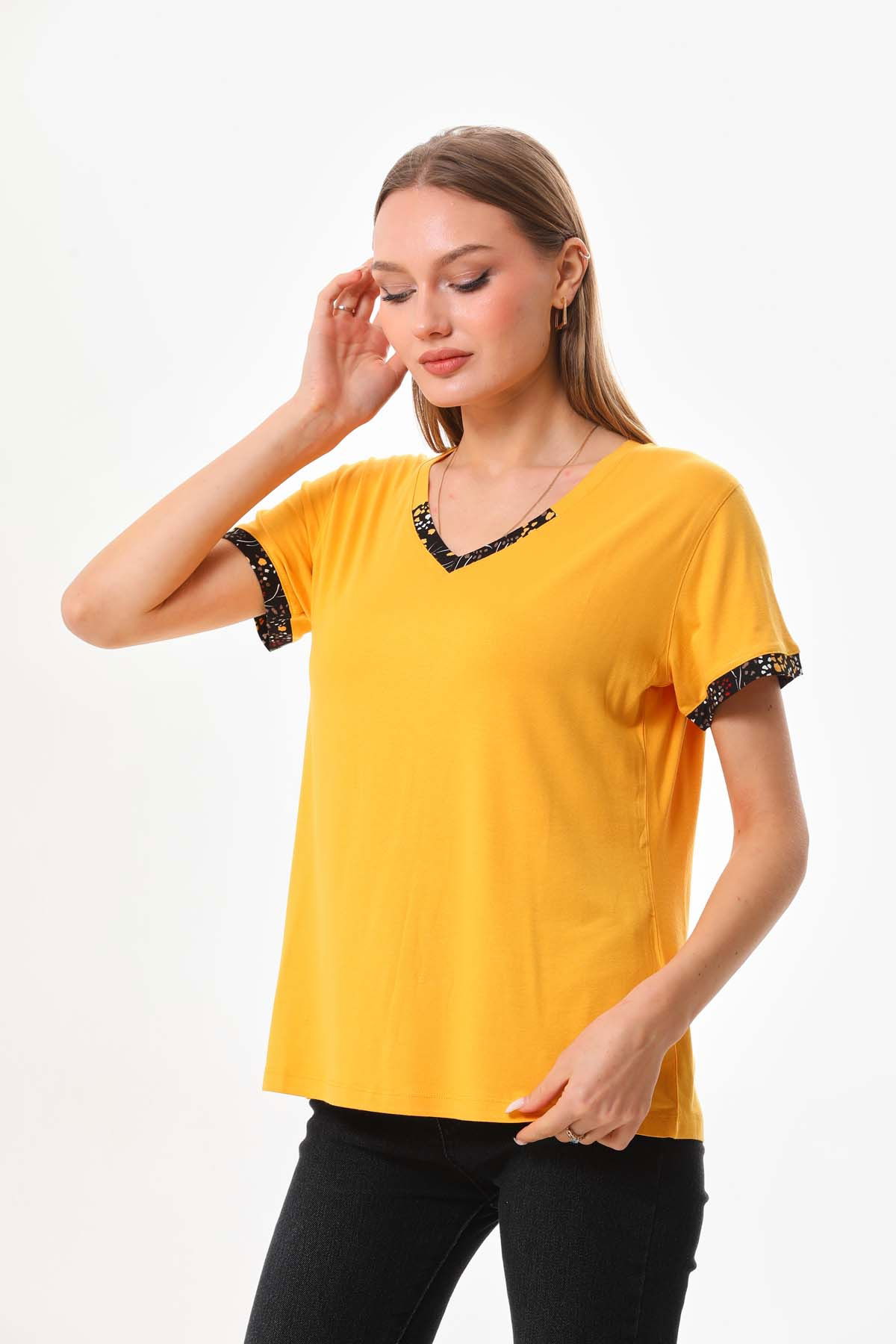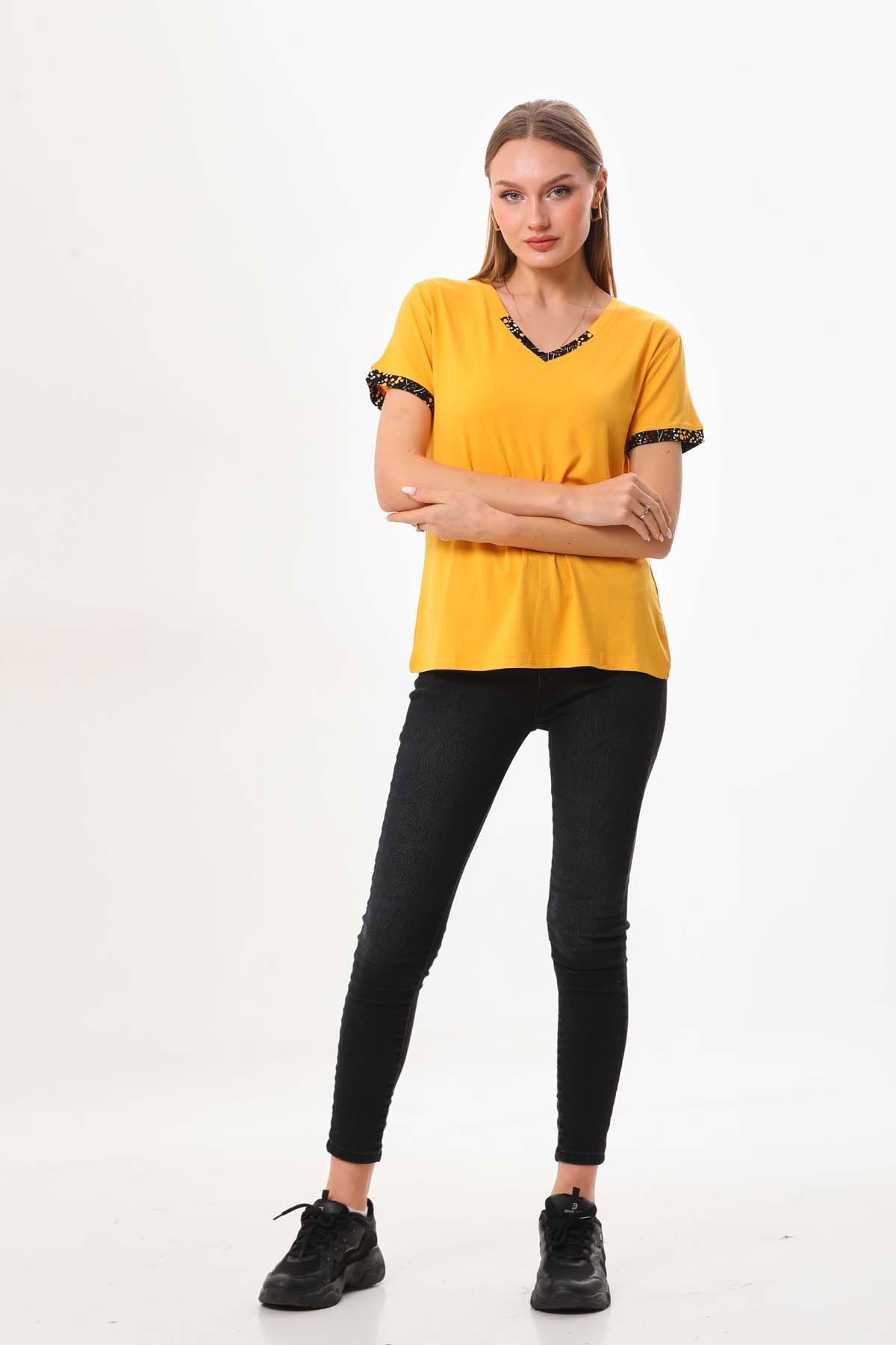 Sistas Kadın V Yaka Kısa Kol Bluz 23152 Sarı