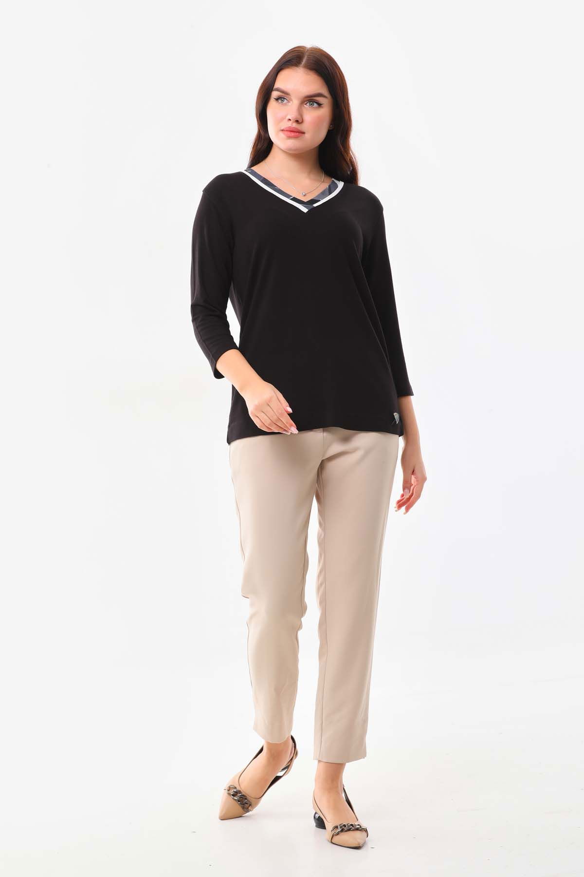 Sistas Kadın V Yaka Truvakar Kol Bluz 23588 Siyah