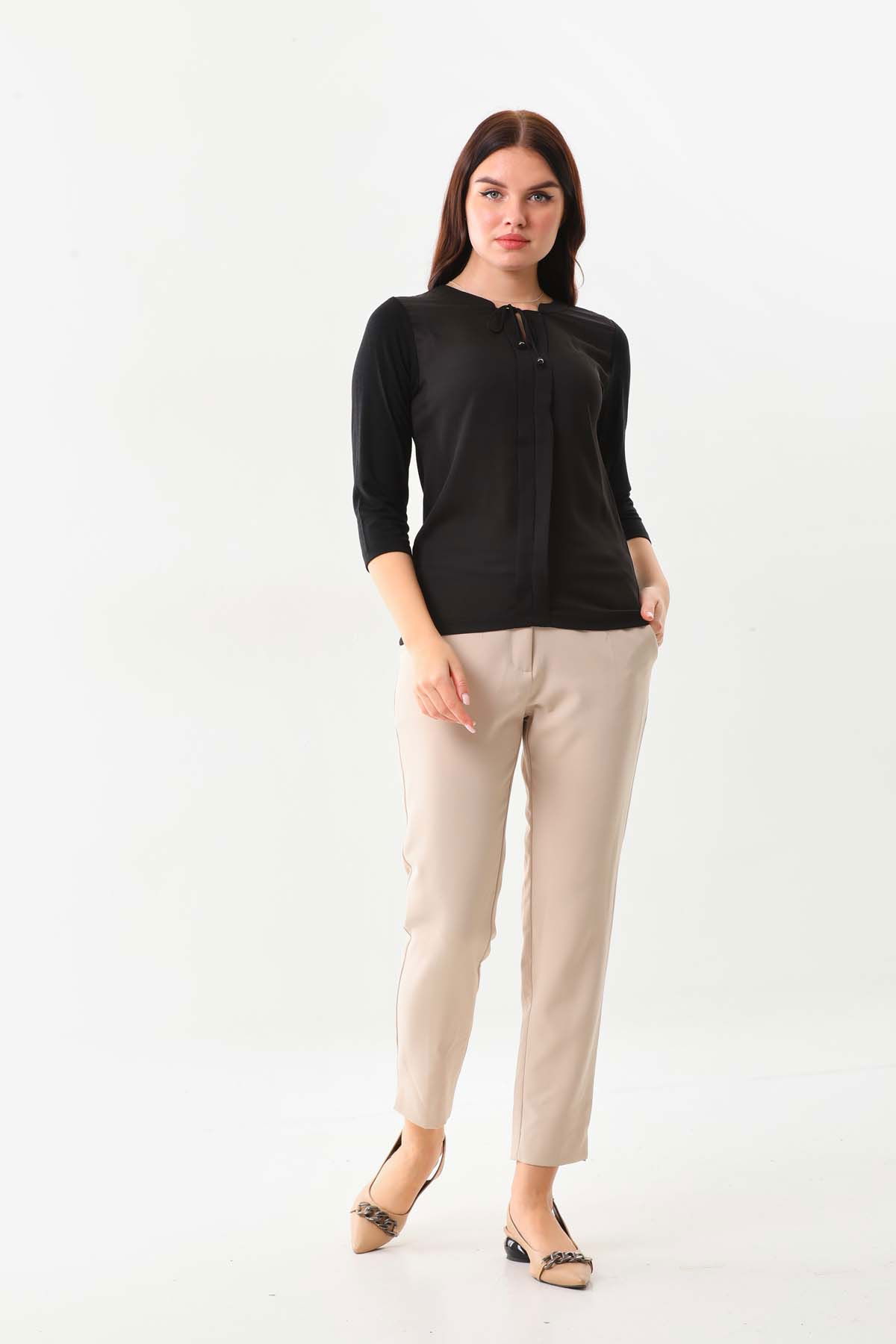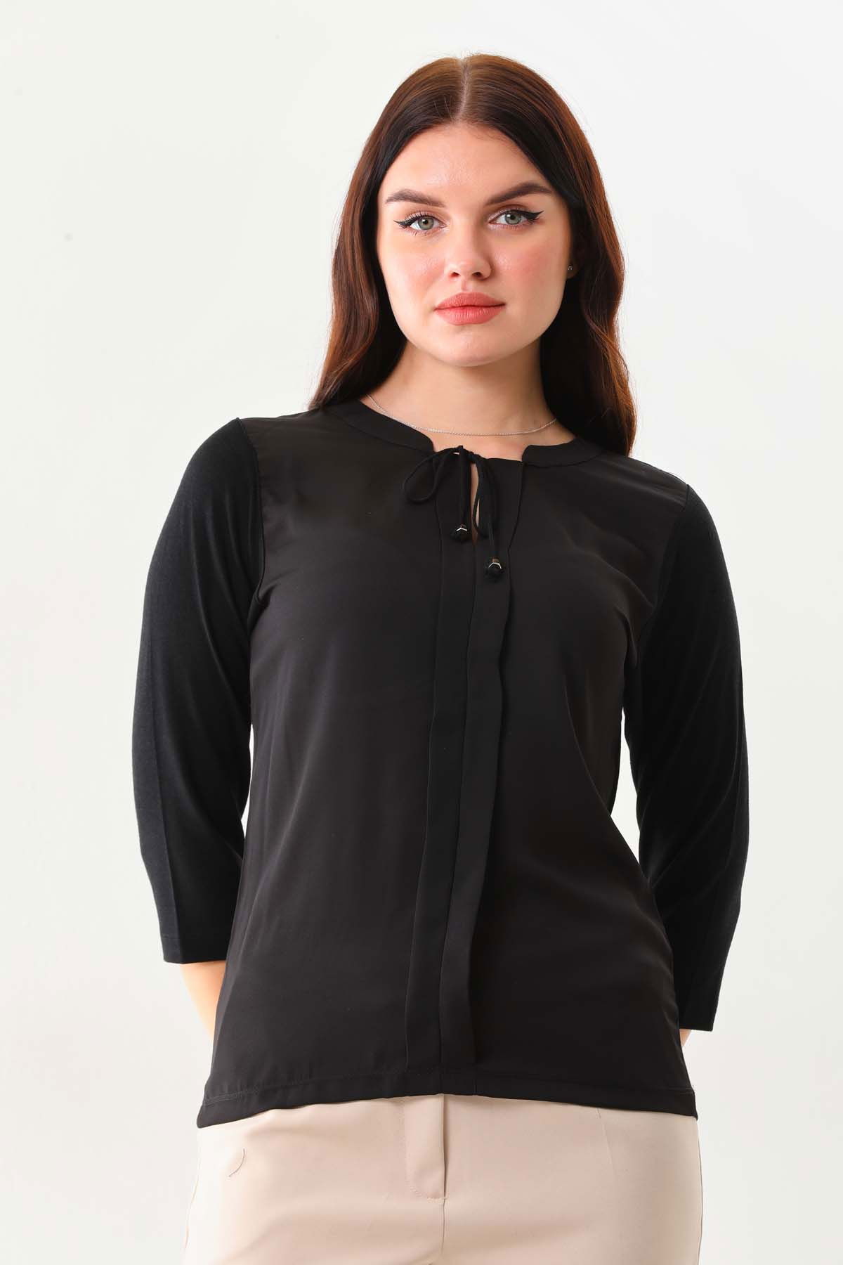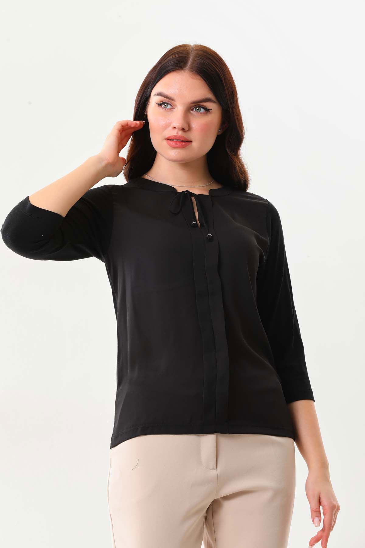 Detay: Truvakar kol, yaka bağlama detaylı bluz;