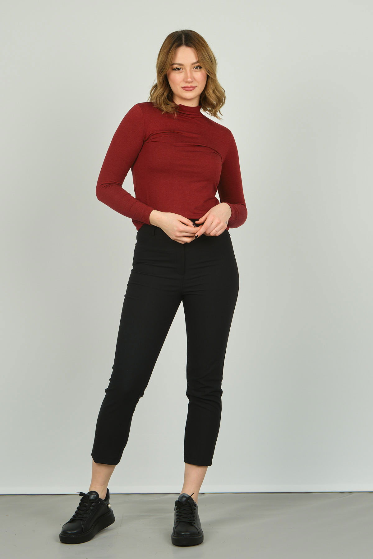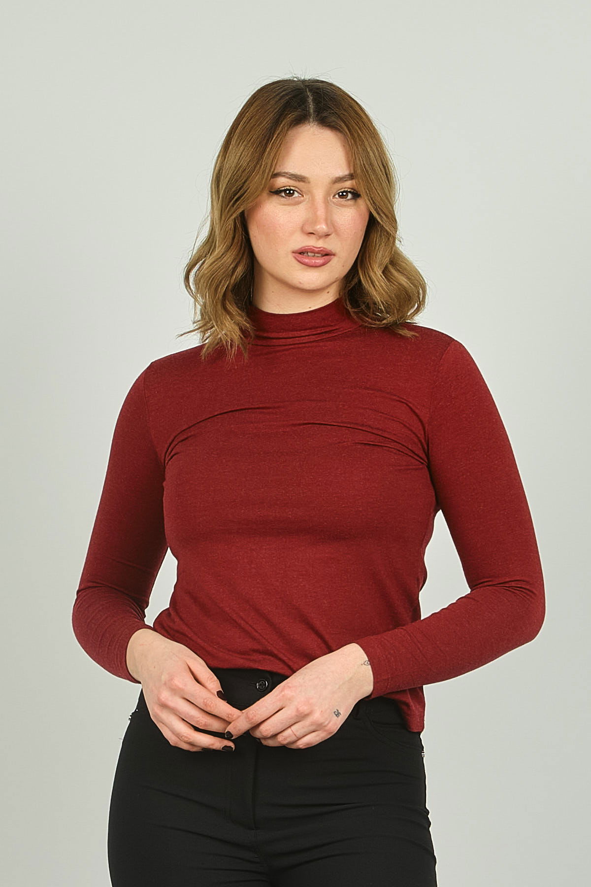 Sistas Kadın Yarım Balıkçı Yaka Uzun Kol Bluz 20636 Bordo