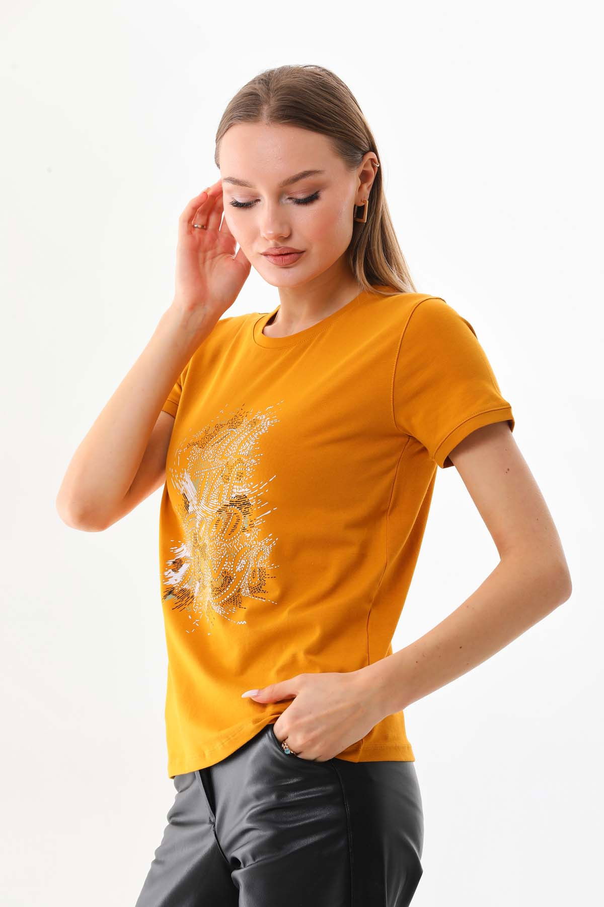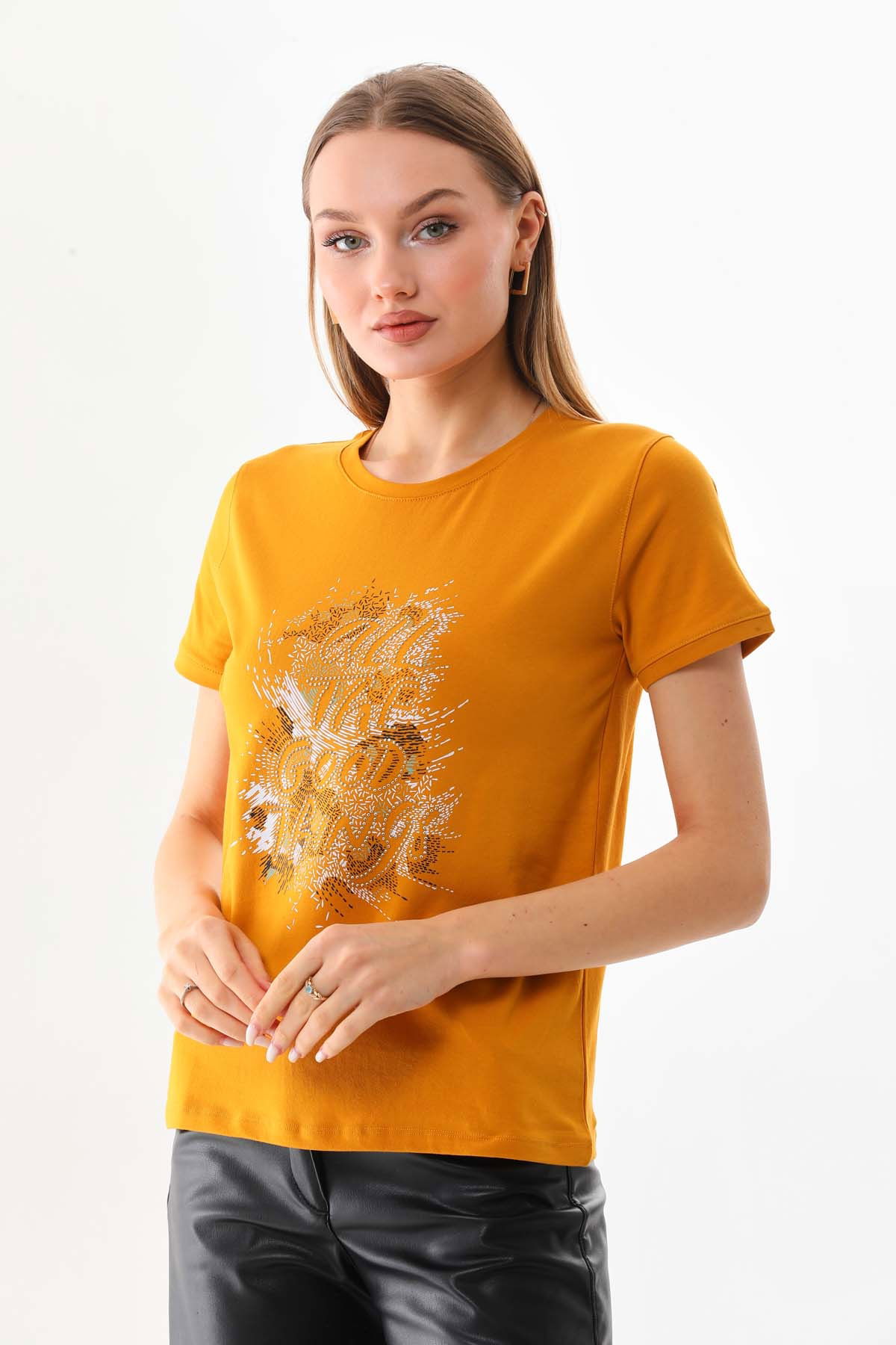 Detay: Kısa kol, işlemeli, bisiklet yaka bluz;